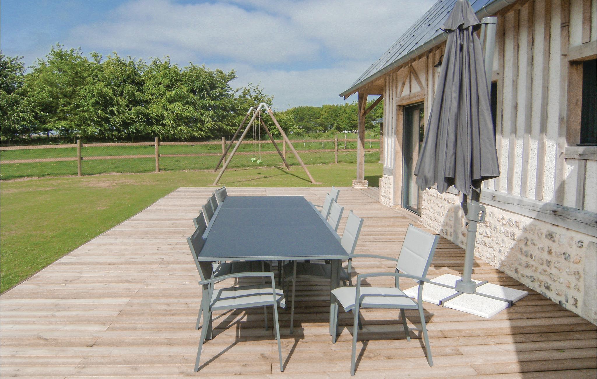 Dette charmerende feriehus ligger 20 km fra Yvetot, hvor I kan holde en afslappet ferie i Normandiet. Oprindeligt er huset ombygget landbrugsbygning fra det 18. århundrede hvor kornet blev tærsket. Derfor er der store rum og fritlagte bjælker, hvilket forstærker husets beghagelige atmosfære, hvor I hurtigt vil føle jer hjemme. Slap af på terrassen, mens børnene og hunden leger i den afskærmede have. Udlejeren er dyrelæge, og bor 100 meter fra huset. I Yvetot er der gode indkøbsmuligheder og som en unik detalje er der også et elfenbenmuseum. Besøg også Etretat på en af jeres udflugter.