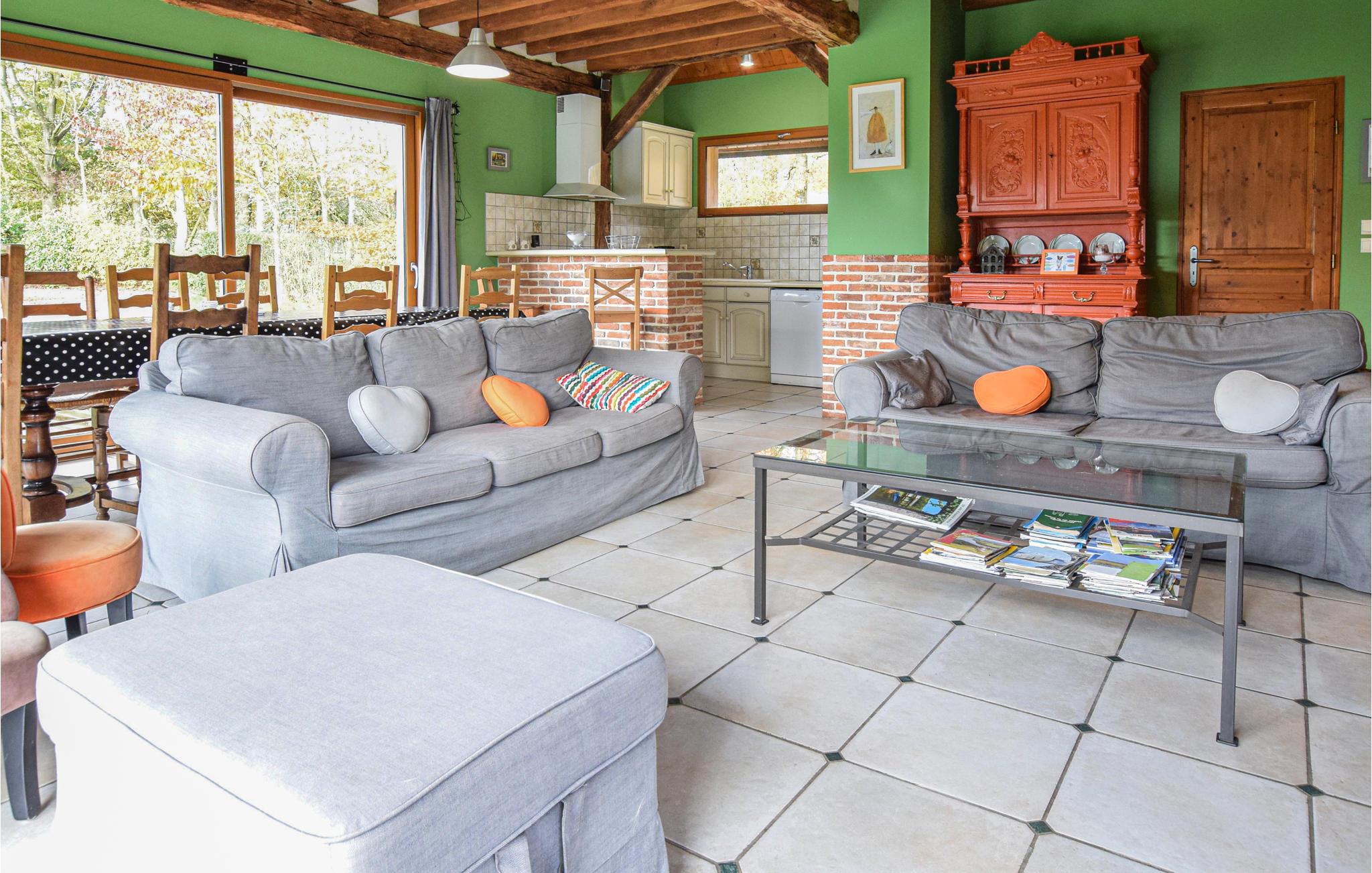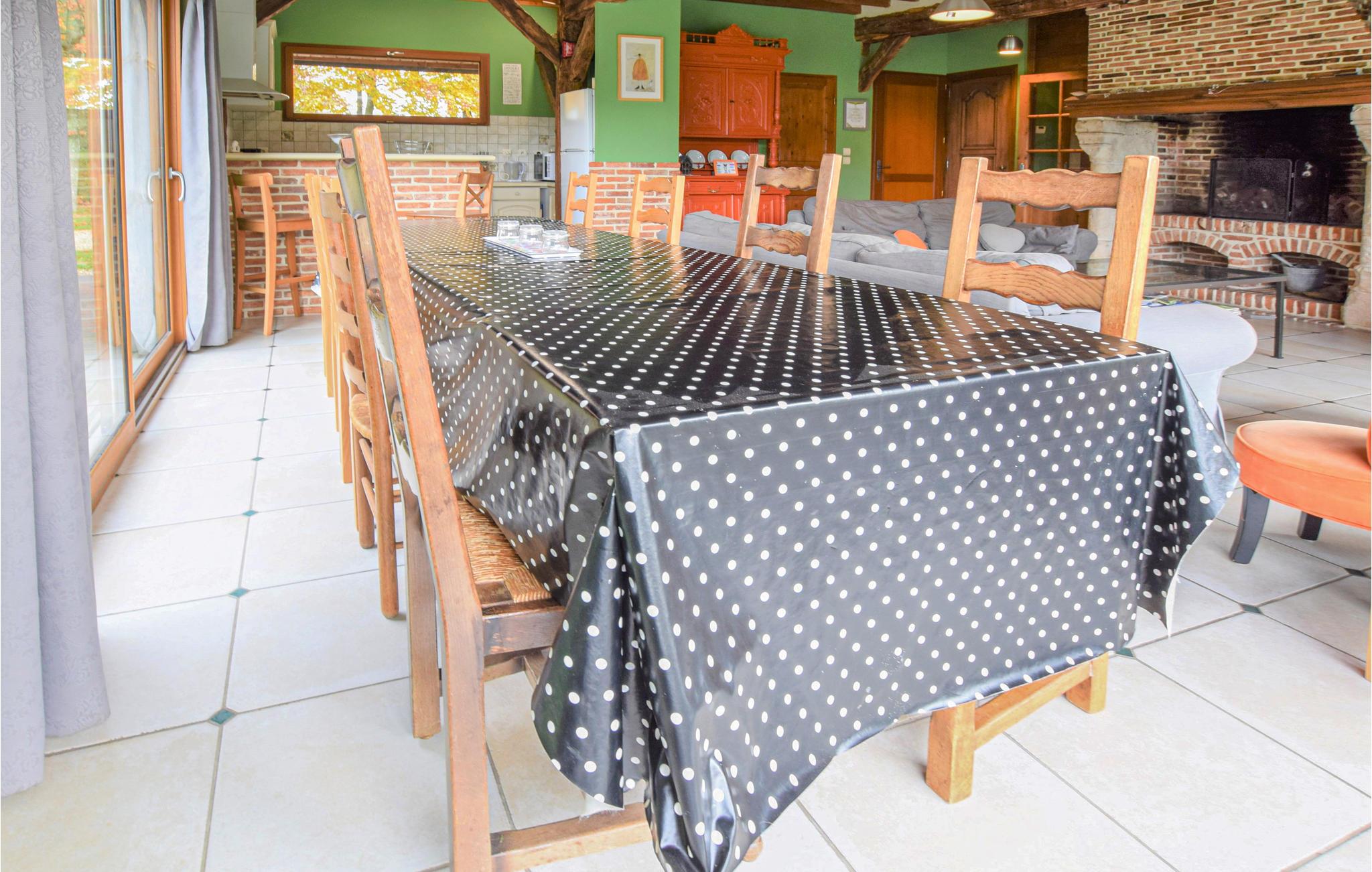 Meget rummeligt og godt udstyret feriehus, perfekt til en behagelig familieferie. Tag også hunden med, der vil nyde de nye dufte i den lukkede have. Ejer, der er dyrlæge, bor 100 m væk. Til Yvetot er der 20 km. Fra huset er der udgang til en sydvendt terrasse med udsigt til græssende får. Besøg Bolbeck (12 km) med tekstilmuseum, og kør en tur til Yvetot med Saint-Pierrekirken og det gamle herrehus Manoir du Fay. Der er 20 km til Fécamp med den skønne klippekyst, lange kiesstrande og et charmerende centrum. Byen er kendt for kunst og historie, bl.a. pga. Palais Bénédictine, og kirkene Sainte-Trinité og der Saint-Etienne. Der er utallige fritidsmuligheder : vandre, cykle og en klatrepark. Efter en dag fuld af oplevelser, er det dejligt at slappe af på terrassen med noget lækkert fra grillen.