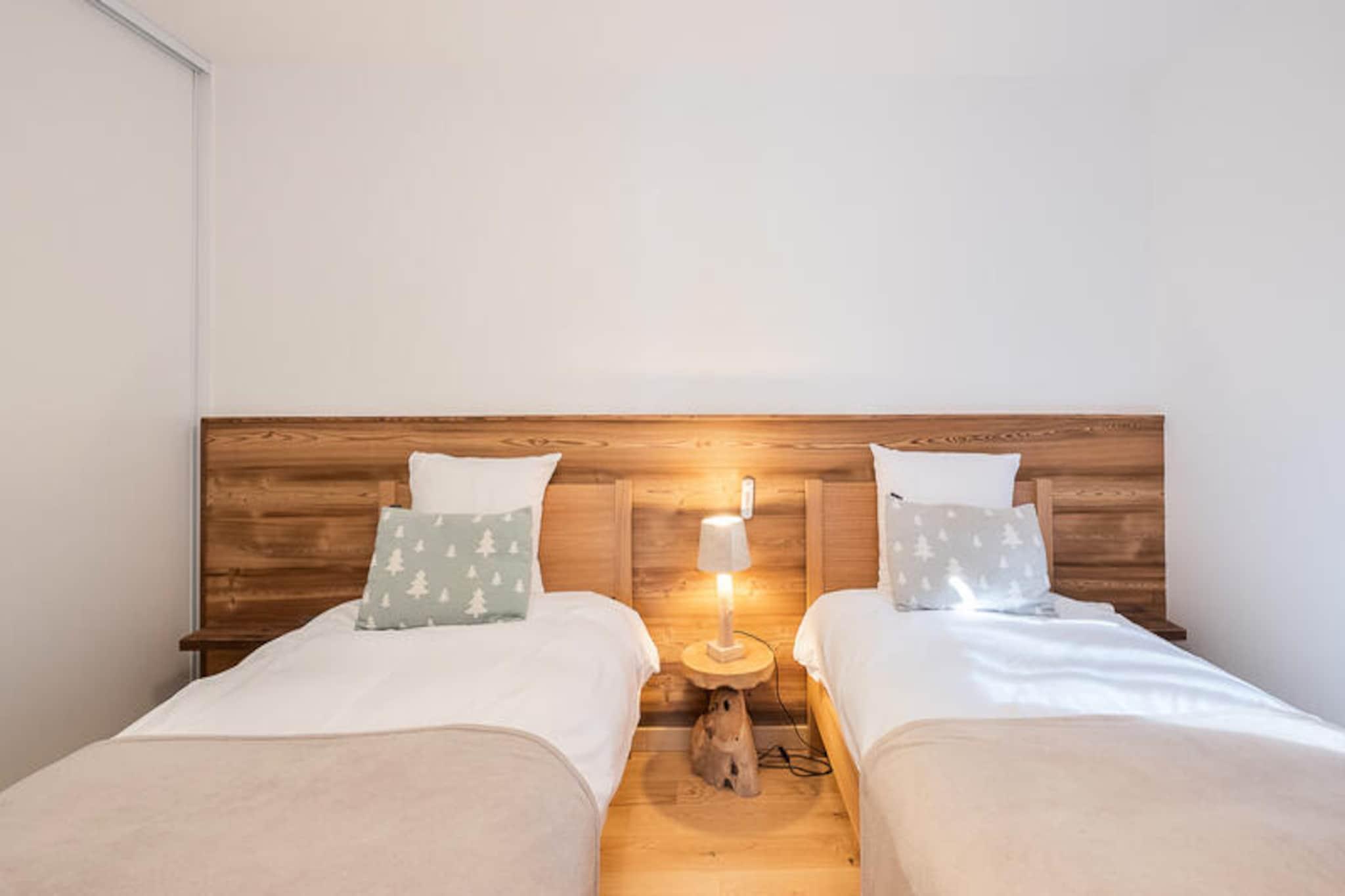 Højt over det fredfyldte Nantailly-distrikt tilbyder Altarena-residensen et roligt tilflugtssted med betagende udsigt over Mont Blanc og de omkringliggende alpine tinder. Denne eksklusive 4-værelses duplexlejlighed er den perfekte blanding af moderne komfort og bjergcharme og er designet til at give en foryngende flugt for familier eller vennegrupper, der søger en uforglemmelig alpinferie. Forestil dig at vågne op til den friske bjergluft, træde ud på din private balkon og nyde den panoramaudsigt, der strækker sig så langt øjet rækker. Indenfor har lejligheden komfortabel plads til op til otte gæster fordelt på sine gennemtænkt designede to etager. Stueetagen har et hyggeligt soveværelse med en dobbeltseng og eget badeværelse, der åbner ud til en terrasse, et soveværelse med to enkeltsenge og et charmerende værelse med køjesenge. Et separat badeværelse og toilet tilføjer bekvemmelighed. Ovenpå inviterer den rummelige opholds- og spisestue med et åbent køkken dig til at samles og skabe varige minder, mens et andet dobbeltværelse med eget badeværelse sikrer privatliv og komfort. Moderne faciliteter, herunder et skirum og to underjordiske parkeringspladser (en i en lukket garage), gør dit ophold problemfrit og stressfrit. Ud over boligens komfort er beliggenheden en indgangsport til eventyr. Uanset om du begiver dig ud på pisterne om vinteren eller udforsker naturskønne vandrestier om sommeren, placerer Altarena-residensen dig i hjertet af de franske alpers naturlige skønhed. I nærheden finder du charmerende alpelandsbyer, lokale markeder og autentisk savoyardsk køkken, der fuldender din oplevelse. Med inkluderede tjenester som linned, toiletartikler og slutrengøring er hver eneste detalje tænkt over for at sikre et afslappende og mindeværdigt ophold. Forkæl dig selv med den ultimative bjergflugt på Altarena-residensen, hvor hvert øjeblik er indrammet af Mont Blancs majestæt.