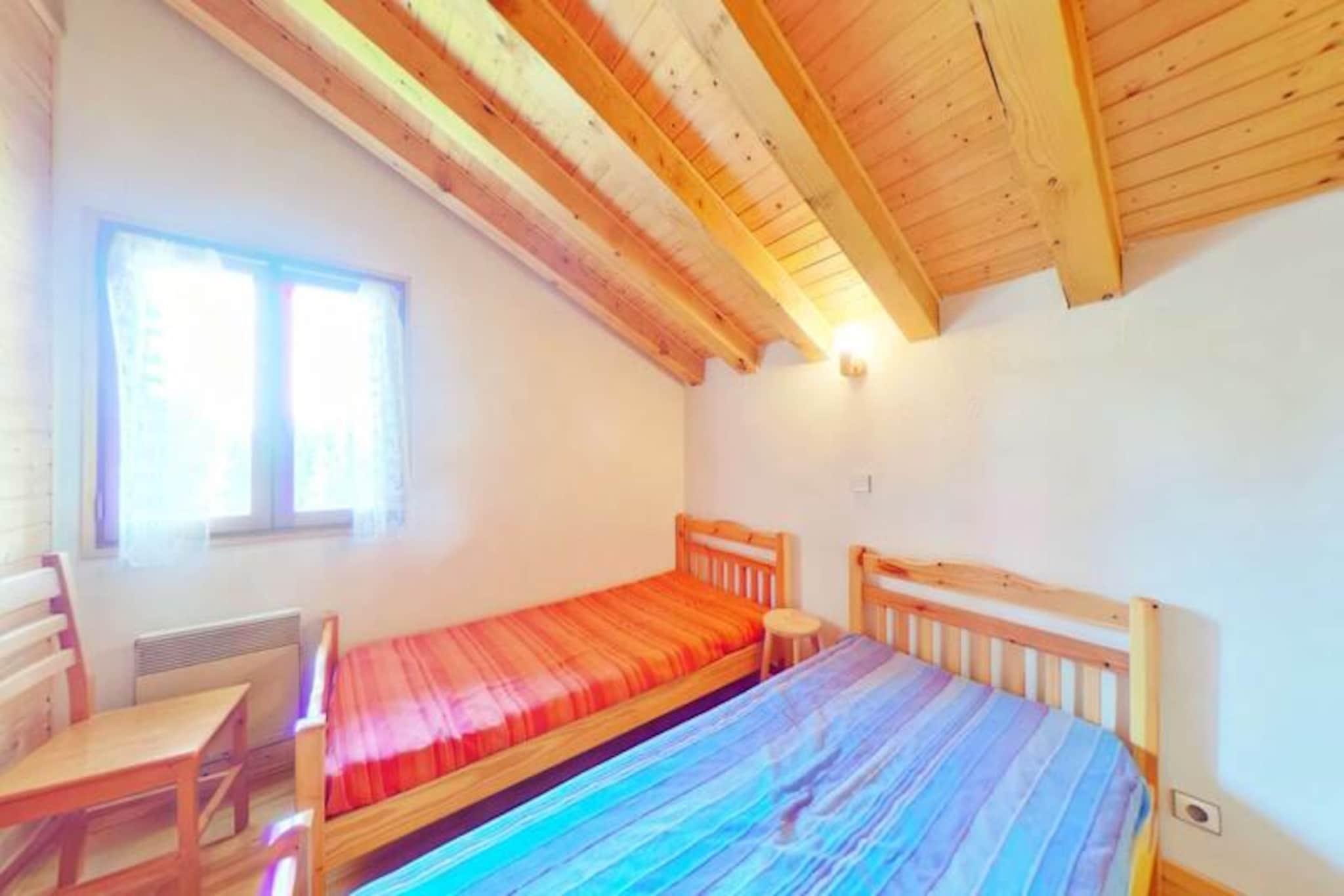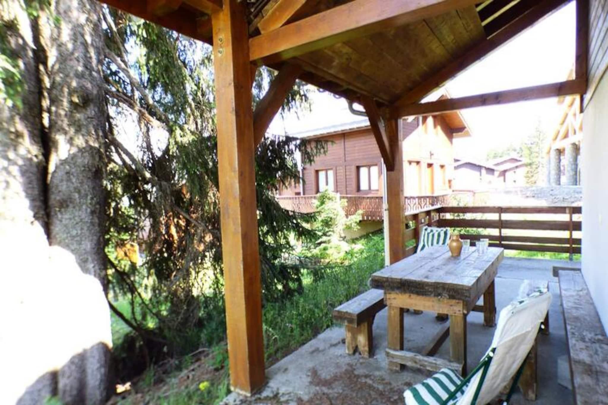 Midt i den rolige omfavnelse af boligområdet Forêt tilbyder denne charmerende fritliggende hytte et roligt alpint tilflugtssted omgivet af skovens naturlige skønhed. Forestil dig at vågne op til den blide raslen af ??blade og den friske bjergluft, med pisterne og ESF-skiskolens mødested kun en kort gåtur væk. Disse idylliske omgivelser lover en perfekt balance mellem eventyr og afslapning, hvilket gør det til et paradis for både naturelskere og skientusiaster. \n\nChaleten kan prale af en hyggelig, men rummelig planløsning med en stue med en sovesofa, to soveværelser med dobbeltsenge og et tredje soveværelse med to enkeltsenge, der komfortabelt rummer op til otte gæster. Det åbne køkken, der skal gennemgå en komplet renovering i efteråret 2025, sikrer et dejligt sted at tilberede måltider og dele historier efter en dag på pisterne. Pejsen tilføjer en rustik charme, men er i øjeblikket ikke-funktionel. Den sydvestvendte terrasse inviterer dig til at nyde solen og panoramaudsigten over den omkringliggende skov. Adgang til hytten sker via en 80 meter lang sti op ad bakke, hvilket bidrager til dens afsondrede charme. \n\nChaleten har en perfekt beliggenhed tæt på vigtige faciliteter og starten af ??skiløjperne, hvilket giver nem adgang til spændende alpine eventyr. Uanset om du udforsker de nærliggende stier eller forkæler dig selv med afterskiing, sikrer beliggenheden, at hvert øjeblik er gennemsyret af bjergenes magi. \n\nFor dem, der søger en fredelig flugt med Alpernes charme lige uden for døren, er denne chalet et uimodståeligt valg. Lad skovens hvisken og bjergets kald føre dig til uforglemmelige minder i dette fortryllende tilflugtssted.