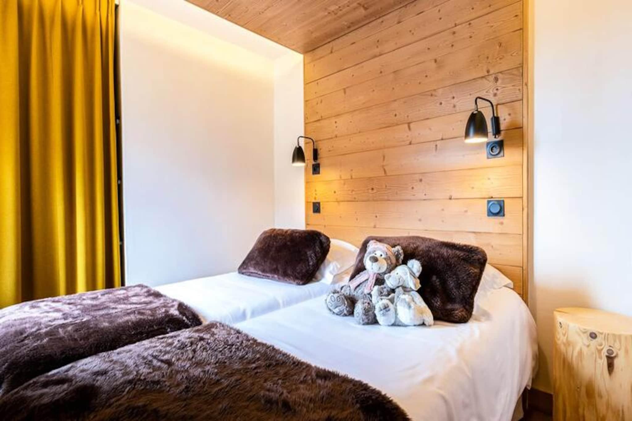 Vågn op til den fredfyldte skønhed i Beaufortain-massivet og Mont Bisanne fra denne elegante 4-stjernede residens i Les Hauts Lieux. Kun 500 meter fra feriestedets centrum tilbyder dette rolige tilflugtssted en perfekt blanding af luksus og bekvemmelighed, med panoramaudsigt og direkte adgang til Chenavelles blå skipiste kun 50 meter væk. Uanset om du er her for pisterne eller landskabet, lover denne lejlighed en uforglemmelig alpin flugt. \n\nTræd indenfor og oplev et smagfuldt indrettet rum designet til komfort og stil. Lejligheden har et fuldt udstyret køkken, der åbner ud til en hyggelig stue med en enkelt sovesofa og en udtræksseng, perfekt til afslapning efter en dag med eventyr. To soveområder, hver med to enkeltsenge og rigelig opbevaring, sikrer afslappende nætter for op til seks gæster. Det moderne brusebadeværelse har en opvarmet brusevæg og et vaskerum for ekstra bekvemmelighed. Udenfor inviterer den østvendte balkon dig til at nyde morgensolen på komfortable liggestole, mens et privat opvarmet skiskab og en sikker parkeringsplads bidrager til dit opholds bekvemmelighed. \n\nGør din ferie bedre med gratis adgang til boligens wellness-område, der byder på pool med massagedyser, hammam, sauna og nordisk bad. Efter en dag på pisterne eller efter at have udforsket det charmerende feriested kan du slappe af i dette fredelige fristed. I nærheden finder du et gratis busstoppested, dagligvare- og sportsbutikker samt den anerkendte restaurant \