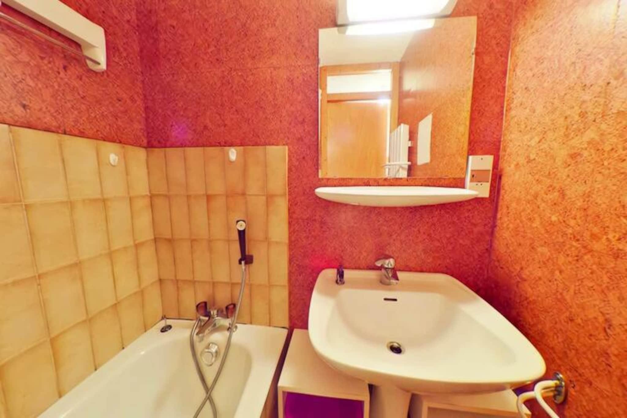 I hjertet af det pulserende feriestedscentrum tilbyder denne charmerende studiolejlighed med alkove et hyggeligt tilflugtssted for din alpine ferie. Beliggende på anden sal i en lille bolig, kan denne syd/østvendte ejendom prale af en privat balkon, hvor du kan nyde den friske bjergluft og morgensolen. Med sin centrale beliggenhed har du butikker, restauranter og shuttlebusser kun få skridt væk, hvilket gør den til den perfekte base for at udforske det omkringliggende område. \n\nIndvendigt er lejligheden omhyggeligt designet til at maksimere komfort og funktionalitet. Stuen har en udtrækssovesofa (2 x 90 cm), ideel til afslapning efter en dag med eventyr. Det åbne tekøkken er fuldt udstyret, så du nemt kan tilberede lækre måltider. Soveområdet med alkove har køjesenge (2 x 90 cm), hvor den øverste køje ikke anbefales til børn under seks år. Et badeværelse og separat toilet fuldender planløsningen og sikrer bekvemmelighed for alle gæster. \n\nUd over lejligheden tilbyder feriestedet et væld af aktiviteter og attraktioner. Uanset om du tager på pisterne om vinteren eller udforsker vandrestier om sommeren, finder du uendelige muligheder for eventyr. De nærliggende shuttlebusser giver nem adgang til skilifter og andre vigtige steder, mens det livlige feriestedscentrum sikrer, at du aldrig er langt fra spisesteder og underholdningsmuligheder. \n\nDenne møblerede 1-stjernede turistindkvartering kombinerer enkelhed, komfort og en uovertruffen beliggenhed, hvilket gør den til et ideelt valg for par eller små familier, der søger en autentisk alpin oplevelse. Lad dette hyggelige tilflugtssted være dit hjem væk fra hjemmet, mens du skaber uforglemmelige minder i de franske alper.