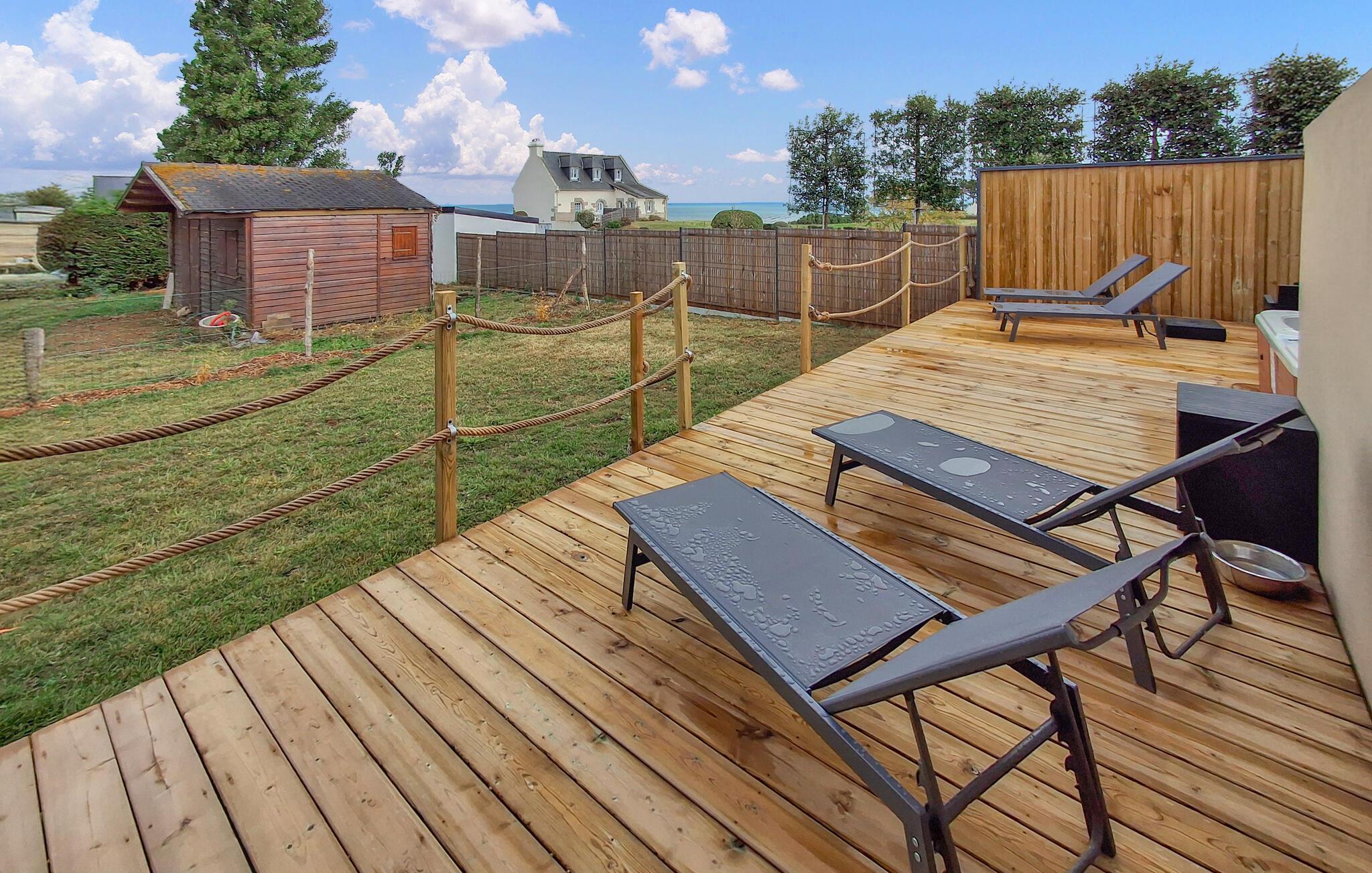 En storslået udsigt over havet venter jer på den øverste terrasse, mens I i stueetagen kan slappe af i det opvarmede spabad året rundt, samt nyde stemningsfulde måltider og grillmad. I vil sætte pris på den rolige atmosfære.