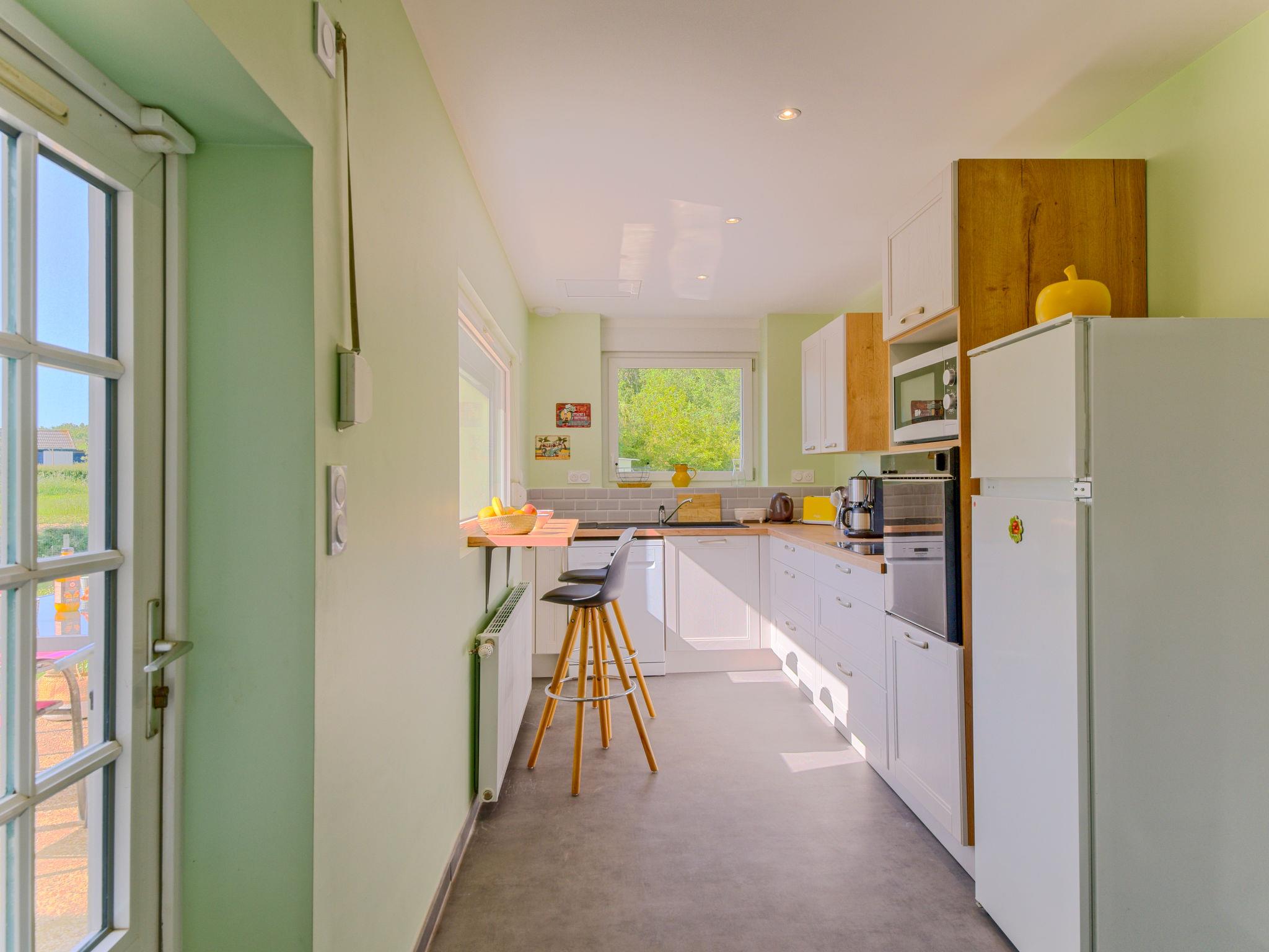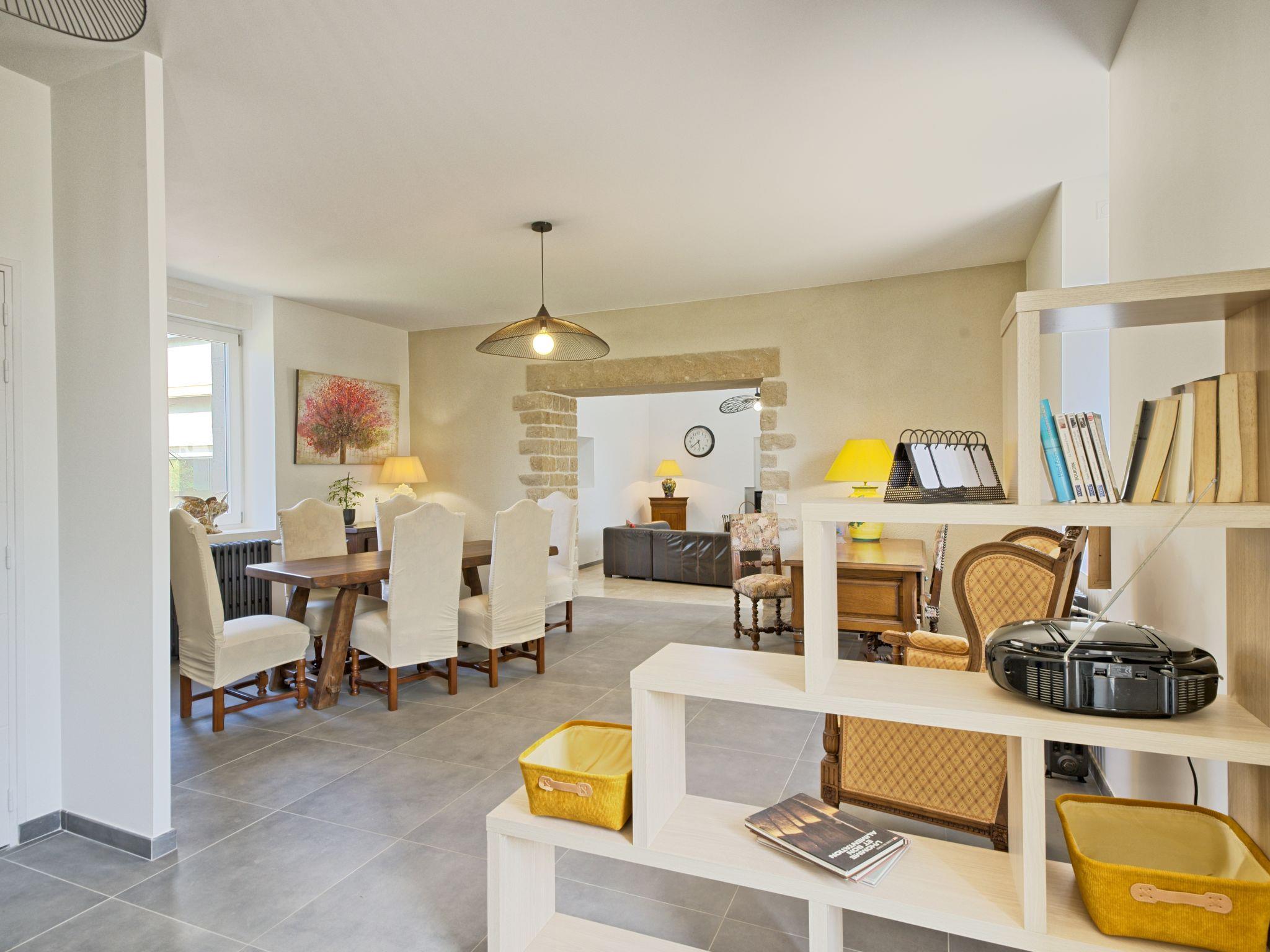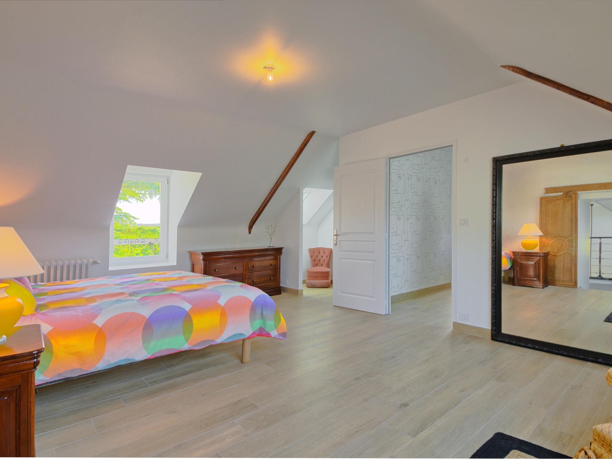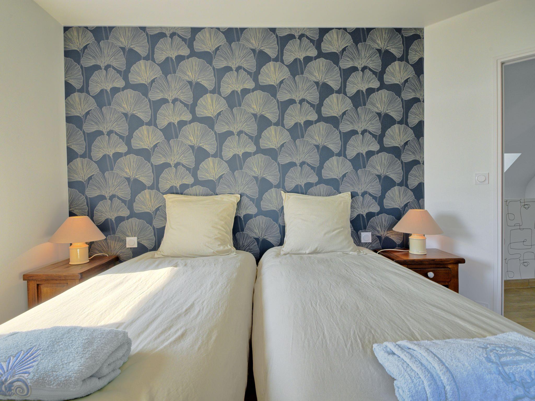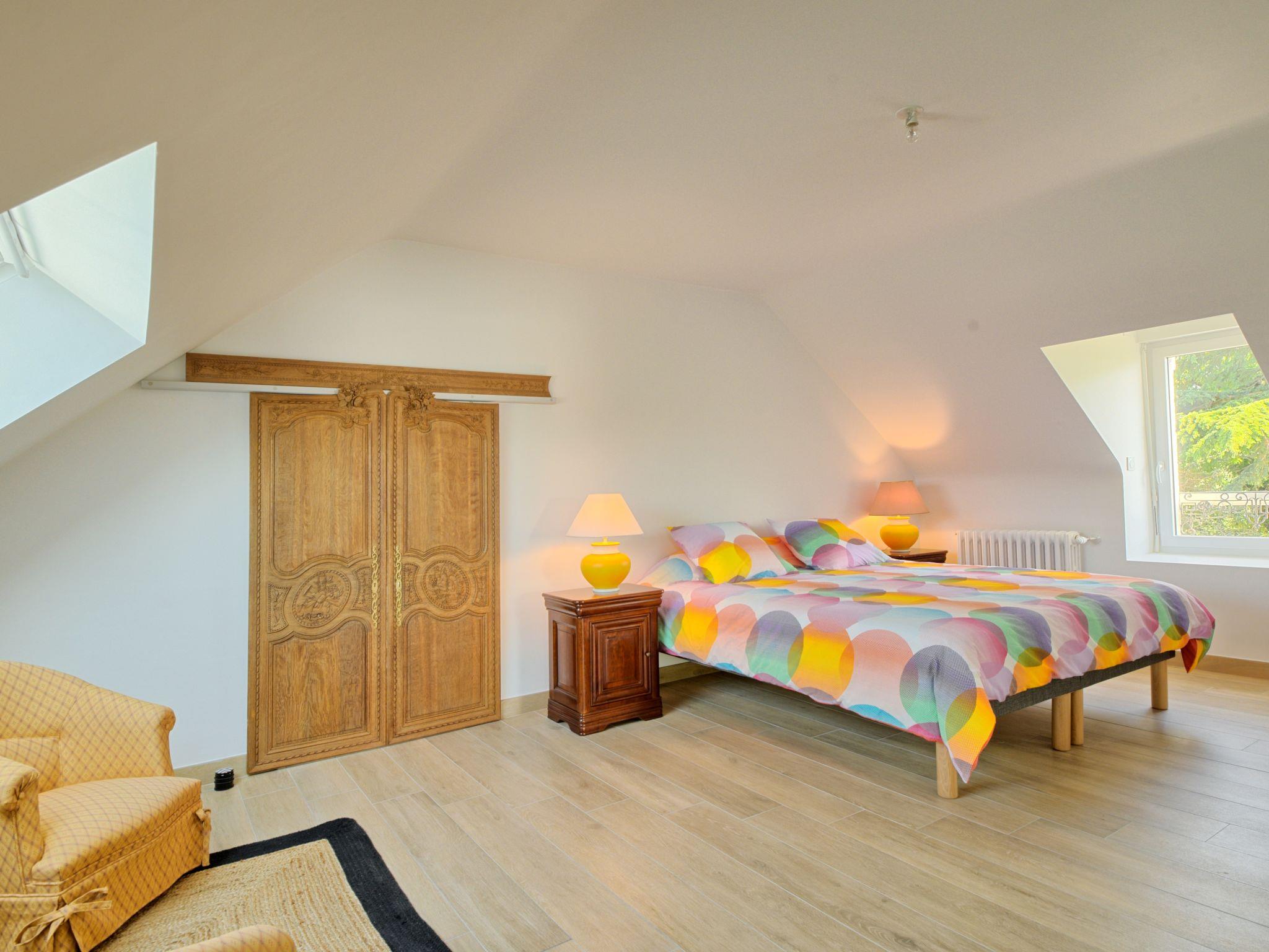 "Ker Yannick", 4-room house 160 m2 on 2 levels. Comfortable and beautiful furnishings: entrance hall. Large living/dining room with Scandinavian wood stove and flat screen. 1 room with 1 french bed (160 cm, length 200 cm), shower. Kitchen (oven, dishwasher, 3 induction hot plates, toaster, kettle, microwave, electric coffee machine). Exit to the terrace. 2 sep. WC's. Upper floor: 1 room with 2 beds (80 cm, length 200 cm). 1 large room with 1 french bed (180 cm, length 200 cm). Shower, sep. WC. Oil heating. Terrace furniture, barbecue, deck chairs (4). View of the bay. Facilities: washing machine, hair dryer. Internet (WiFi, free). Please note: non-smoking house. Smoke alarm. Offer by a private individual according to Art. 155, IV of CGI. 0220502208123 0546