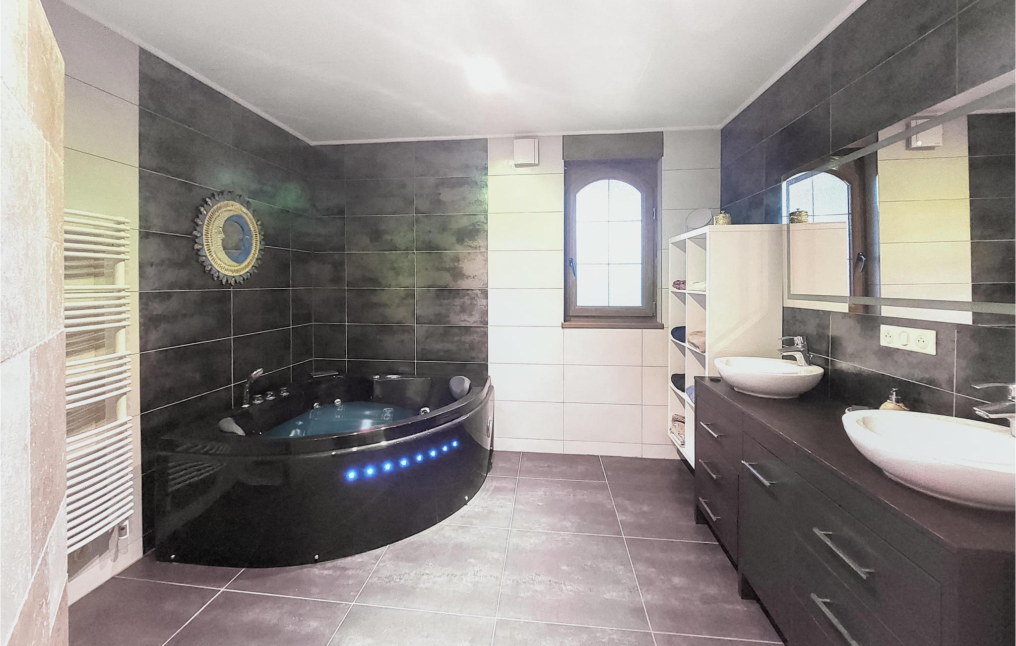 Glæd jer til en afslappende ferie på landet, hvor I kan nyde roen og den høje komfort i denne bolig med opvarmet indendørs pool året rundt. Den flotte villa byder jer velkommen i en stor park med træer. I det attraktive hus kommer I ikke til at mangle noget, og efter et par baner i poolen kan I slappe af i stuerne. Her er der masser af plads! Hyg jer udenfor med petanque, bordtennis og badminton.