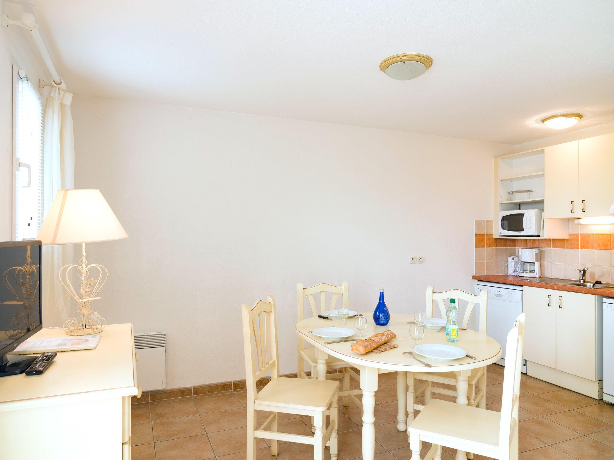 "Port Minervois", 2-room terraced house 52 m2. Comfortable furnishings: living/sleeping room with 1 sofabed, 1 pull-out bed, dining table and TV. Exit to the terrace. 1 room with 1 french bed. Small, open kitchen (dishwasher, 4 ceramic glass hob hotplates, kettle, microwave, electric coffee machine). Bath/WC. Electric heating. Terrace partly roofed. Terrace furniture. Facilities: iron. Please note: non-smokers only. 1 small pet/ dog allowed. Smoke alarm.