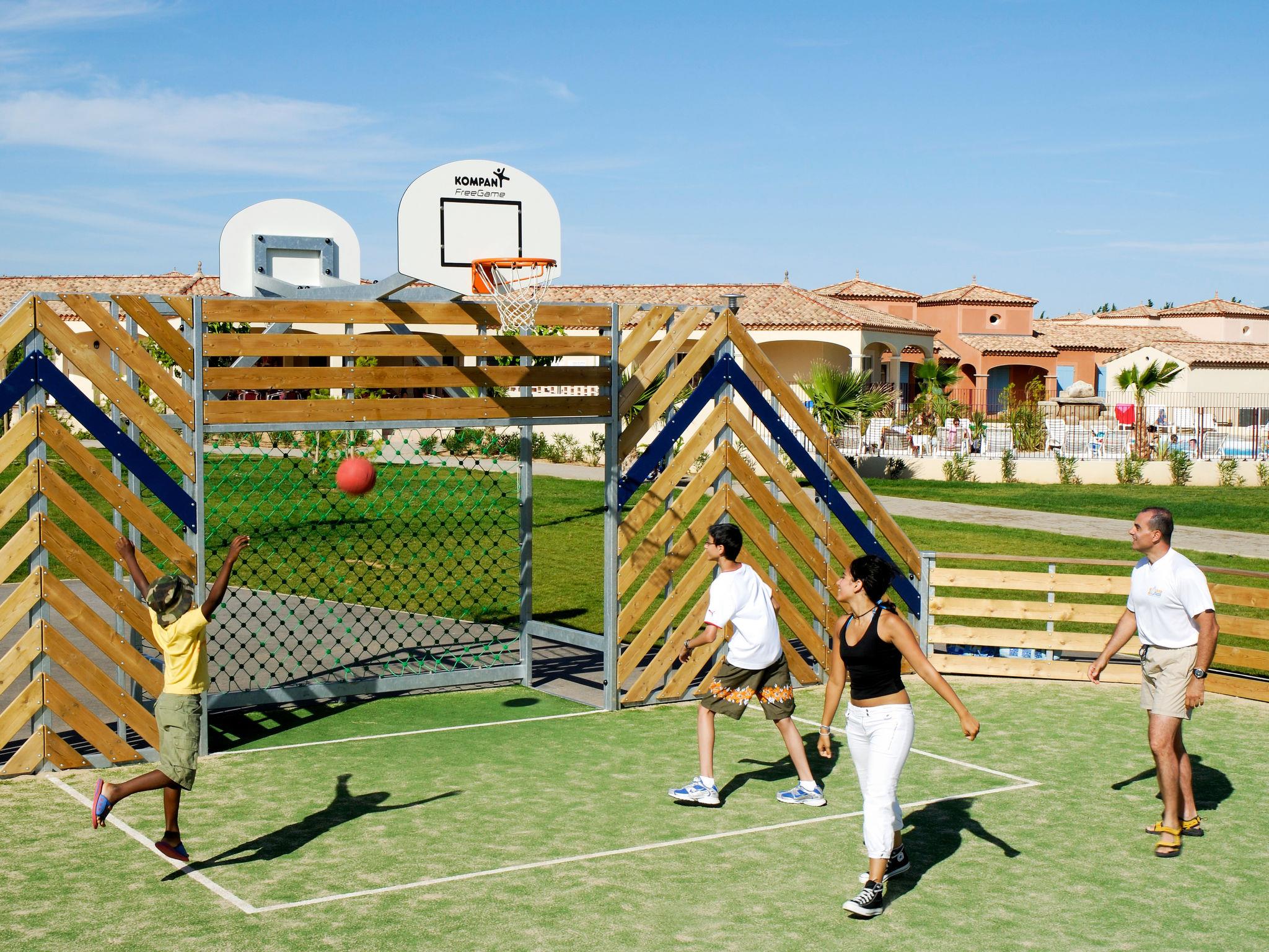 Resort "Port Minervois & Les Hauts du Lac". 145 houses in the resort. 1 km from the centre of Homps, 30 km from the centre of Narbonne, 35 km from the centre of Carcassonne, 800 m from the lake. For shared use: 2 swimming pools kidney-shaped fenced (seasonal availability: 01.May. - 30.Sep.). Children's pool, boccia, children's playground. In the complex: reception, WiFi, washing machine, tumble dryer (for shared use, extra). Central parking spaces. Shop 1 km, supermarket 2.8 km, bus stop "Pouzols Cave Cooperative" 9.9 km, pebble beach 2 km, bathing lake "Lac de Jouarres" 800 m. Please note: the photograph shows a typical example. The holiday properties may differ in living space, floorplan, equipment and furnishing.