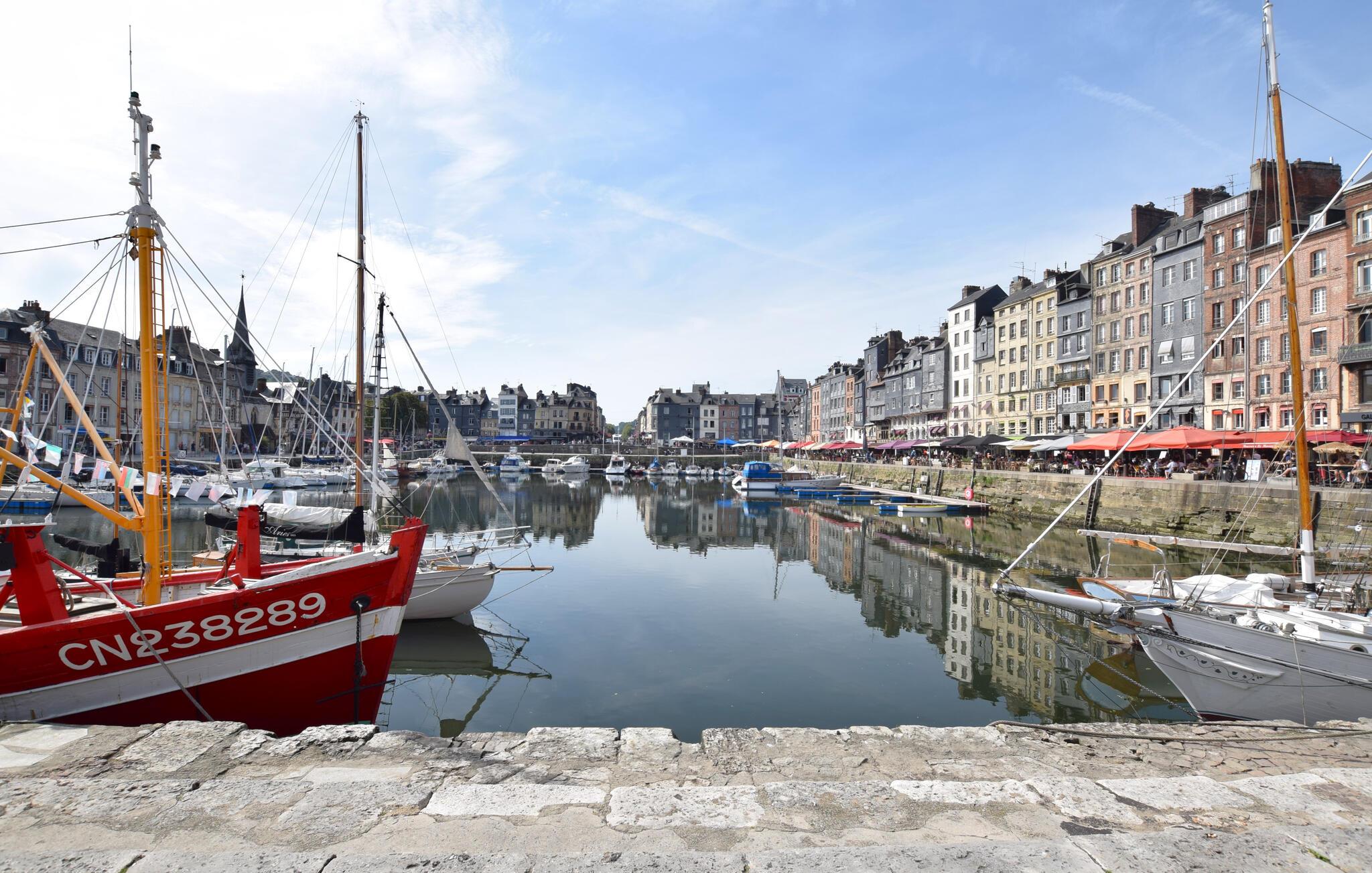 Oplev det historiske Vieux Bassin (Gamle Bassin), nyd frisk fisk og skaldyr i en af ??havnetavernerne, og besøg Eugène BouDen Museum. Cykl langs kysten til den elegante strandpromenade i Deauville, kør over den imponerende Pont de Normandie til Le Havres moderne arkitektur eller oplev de rolige landskaber i Pays d'Auge med en cidersmagning på en lokal gård.
