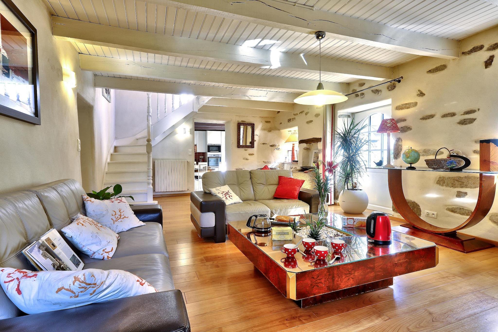 Dette fritliggende sommerhus fra det 17. århundrede ligger mellem stranden og Monts d'Arrée, som er et typisk bretonsk hus med et fuldt moderniseret interiør med typiske bretonske accenter. Du vil straks føle dig hjemme i dette hyggelige hjem. I den rummelige have og dens charmerende terrasse kan du nyde de rolige og grønne omgivelser. I hjertet af Bretagne ligger det uspolerede og beskyttede område af Monts d 'Arrée med Roc' h Ruz som den højeste top (385 meter), en sten s kaste væk fra sognbyerne, skulpturerne og de smukke kapeller, der bestemt er et besøg værd Ideelt til cyklister og vandrere, fordi du er i skoven Huelgoat, kendt for klipperne med særlige former og menhirer, steder med mystiske Navne der henviser til King Arthur, for eksempel. På 1 times kørsel kan du besøge byen Morlaix (29 km) med de smukke bindingsværkshuse. Små, stejle gyder, med en lejlighedsvis trappetrin, findes i kanterne af den gamle bydel. En gang i toppen har du en smuk udsigt over byen. Den nærmeste strand ligger ved Carantec (40 km).