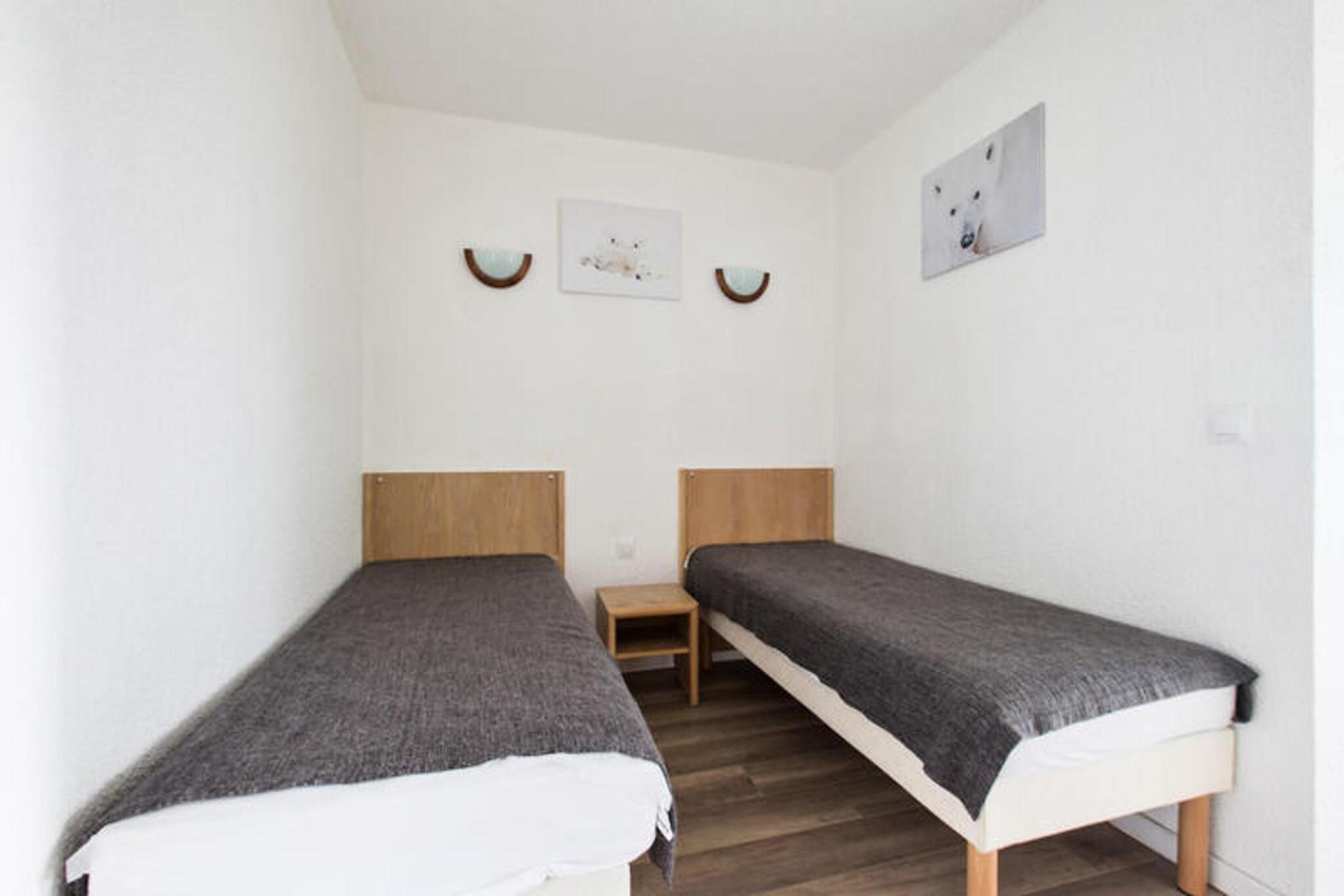 Denne hyggelige lejlighed i Alpe d'Huez tilbyder et behageligt ophold for familier eller små grupper. Det omfatter en stue med en sovesofa, et kabineområde med 2 enkeltsenge og et spisebord med 4 stole. Lejligheden er kæledyrsvenlig og tillader kæledyr med forudgående tilladelse og et ekstra gebyr. Andre faciliteter omfatter tv, balkon med udsigt over bjergene og parkering. Der tilbydes en privat parkeringsplads med yderligere offentlige parkeringsmuligheder i nærheden. Sengelinned og håndklæder er tilgængelige mod et tillægsgebyr, og der gælder en obligatorisk slutrengøring. Lejligheden ligger i det solrige skisportssted Grand Domaine, kun 100 meter fra indkøbscenteret. Gæsterne kan udforske de omkringliggende bjerge, som er ideelle til vandreture og udendørs aktiviteter. Oisans Massif byder på en fantastisk udsigt, mens lokale caféer, markeder og restauranter giver en smag af regionens kultur og køkken. Efter en dag med udforskning kan gæsterne nyde den udendørs opvarmede swimmingpool eller slappe af i baren i boligen. Lejligheden indeholder et fuldt udstyret køkken, åbent til stuen, perfekt til at tilberede måltider. Badeværelset har badekar, og der er separat toilet. En balkon med udendørs siddepladser giver gæsterne mulighed for at nyde måltider eller slappe af med udsigt over bjergene. Yderligere faciliteter omfatter et skiskab, sauna (mod betaling) og gratis adgang til den udendørs pool fra kl. til 19.30.