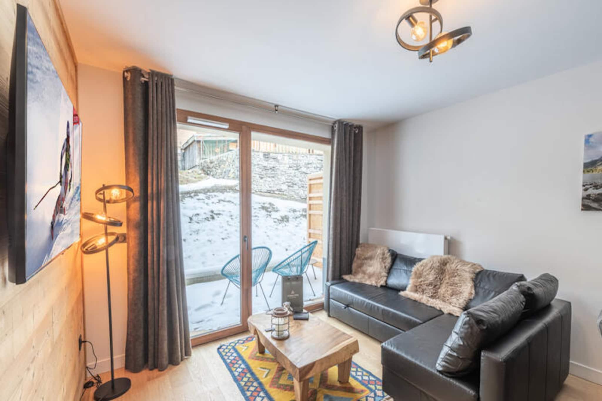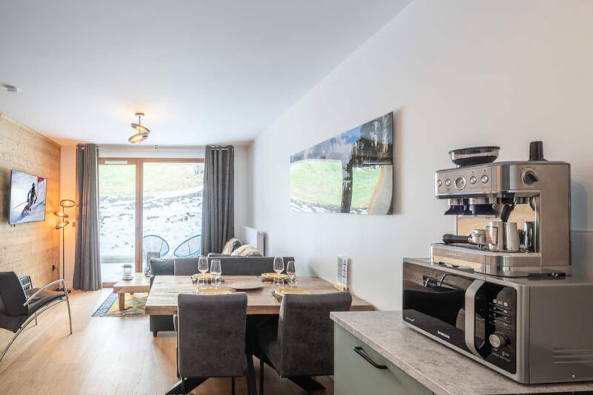 I hjertet af det charmerende Vieil Alpe-distrikt, hvor ånden af ??traditionelt alpeliv møder moderne komfort, ligger den exceptionelle residens Fermes de l'Alpe. Kun 400 meter fra det pulserende feriestedscentrum Alpe d'Huez tilbyder denne fantastiske lejlighed på 49 m² et idyllisk tilflugtssted for familier eller par, der søger en hyggelig bjergferie. Omgivet af de betagende tinder i Grandes Rousses-massivet, blander denne residens autentisk chalet-stilarkitektur med moderne bekvemmeligheder, hvilket skaber en varm og indbydende atmosfære til din ferie. Træd indenfor og oplev en gennemtænkt planløsning, der komfortabelt rummer to voksne og to børn. Stuen med sin hyggelige opholdsstue og spiseplads åbner ud til en balkon, hvor du kan nyde den friske alpeluft. Det åbne køkken er fuldt udstyret til at tilberede lækre måltider efter en dag på pisterne. Lejligheden har et roligt soveværelse med dobbeltseng og en charmerende sovealkove med køjesenge, perfekt til små eventyrere. Et moderne badeværelse med bruser og toilet fuldender rummet og sikrer, at dit ophold bliver lige så behageligt, som det er mindeværdigt. Beliggenheden er uovertruffen, med skiløjperne og resortets faciliteter kun en kort gåtur væk. Uanset om du står på ski ned ad verdensklasses pister, udforsker det livlige resortcentrum eller forkæler dig selv med lokale Savoyard-delikatesser, er alt hvad du behøver inden for rækkevidde. Fermes de l'Alpe tilbyder også førsteklasses service, herunder sengetøj, badeværelsesprodukter og rengøring midt i opholdet, hvilket sikrer en problemfri og afslappende oplevelse. Med sin perfekte blanding af alpin charme, moderne bekvemmelighed og førsteklasses beliggenhed er denne lejlighed på Fermes de l'Alpe din port til uforglemmelige bjergeventyr. Uanset om du besøger stedet om vinteren for sneen eller om sommeren for stierne, er dette den ideelle base for at skabe livslange minder i hjertet af de franske alper.