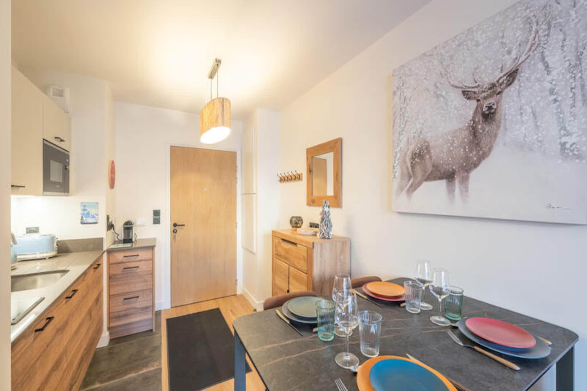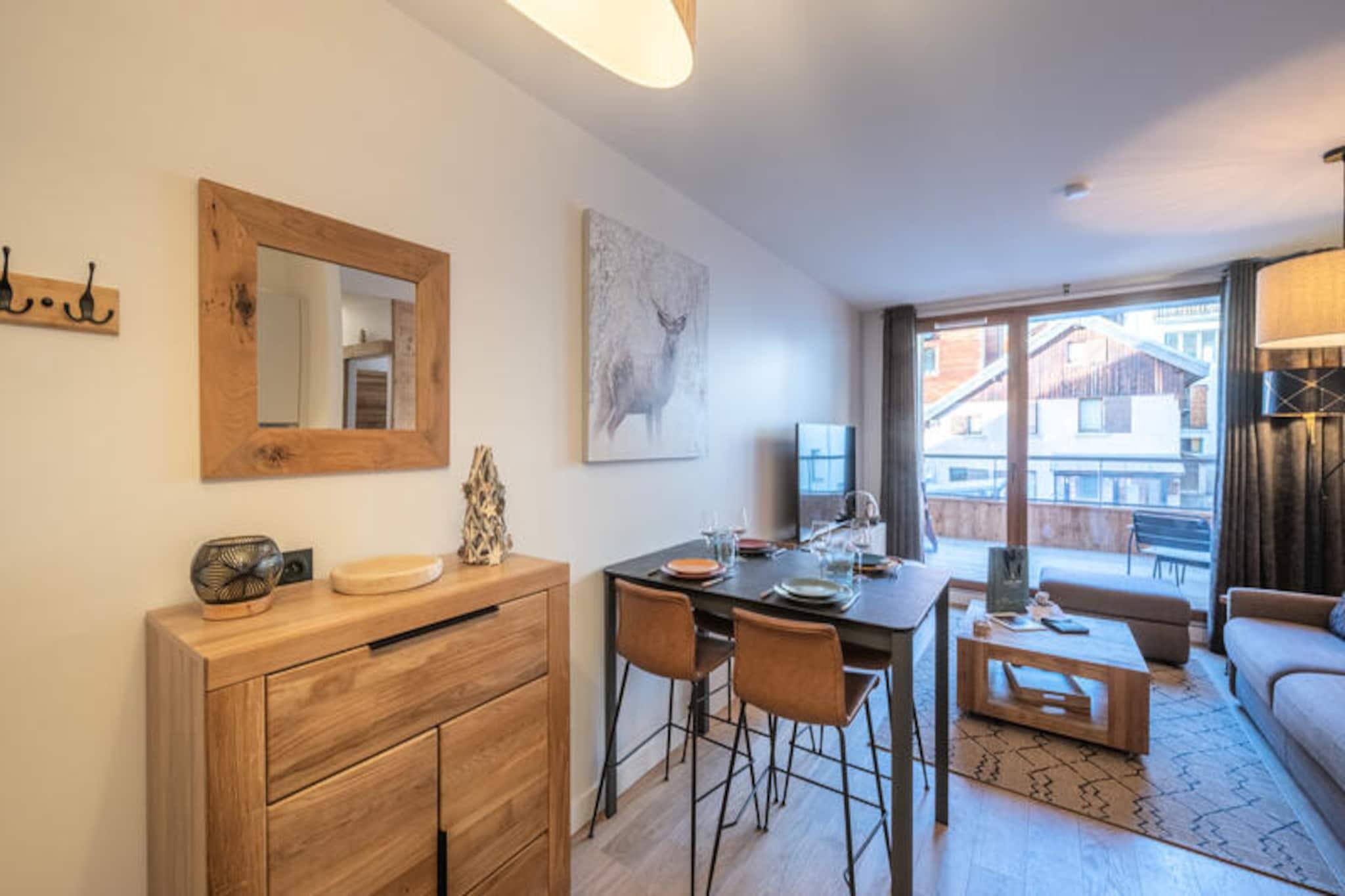 I det charmerende Vieil Alpe-distrikt i Alpe d’Huez tilbyder dette hyggelige alpine tilflugtssted en idyllisk oase for par og små familier. Kun 400 meter fra det pulserende feriestedscentrum kombinerer Fermes de l'Alpe traditionel alpin arkitektur med moderne komfort og skaber en indbydende atmosfære, der er perfekt til din bjergferie. Omgivet af betagende tinder og beliggende tæt på pisterne er denne beliggenhed enhver skiløbers drøm, der går i opfyldelse. Denne gennemtænkt designede lejlighed på 32 m² har plads til op til to voksne og to børn, hvilket gør den til et ideelt valg til intime ferier. Stuen har en komfortabel sovesofa, mens det åbne køkken og terrassen tilbyder et indbydende sted at slappe af efter en dag med eventyr. Et separat soveværelse med dobbeltseng sikrer privatliv, og det moderne badeværelse med bruser og toilet bidrager til bekvemmeligheden. Med sengelinned inkluderet, opredte senge ved ankomst og slutrengøring inkluderet er dit ophold lige så ubesværet, som det er behageligt. Træd udenfor og find dig selv få øjeblikke væk fra skilifter og uberørte pister, der tilbyder problemfri adgang til det berømte Alpe d’Huez-skiområde. I de varmere måneder kan du udforske naturskønne vandrestier og cykelruter, der snor sig gennem de maleriske omgivelser. Det nærliggende feriestedscentrum summer af butikker, restauranter og afterski-muligheder, hvilket sikrer underholdning for enhver smag. Uanset om du er her for at cykle i frisk puddersne eller sole dig i alpesolen, lover denne lejlighed på Fermes de l'Alpe et mindeværdigt ophold fyldt med komfort, bekvemmelighed og den tidløse charme i de franske alper.