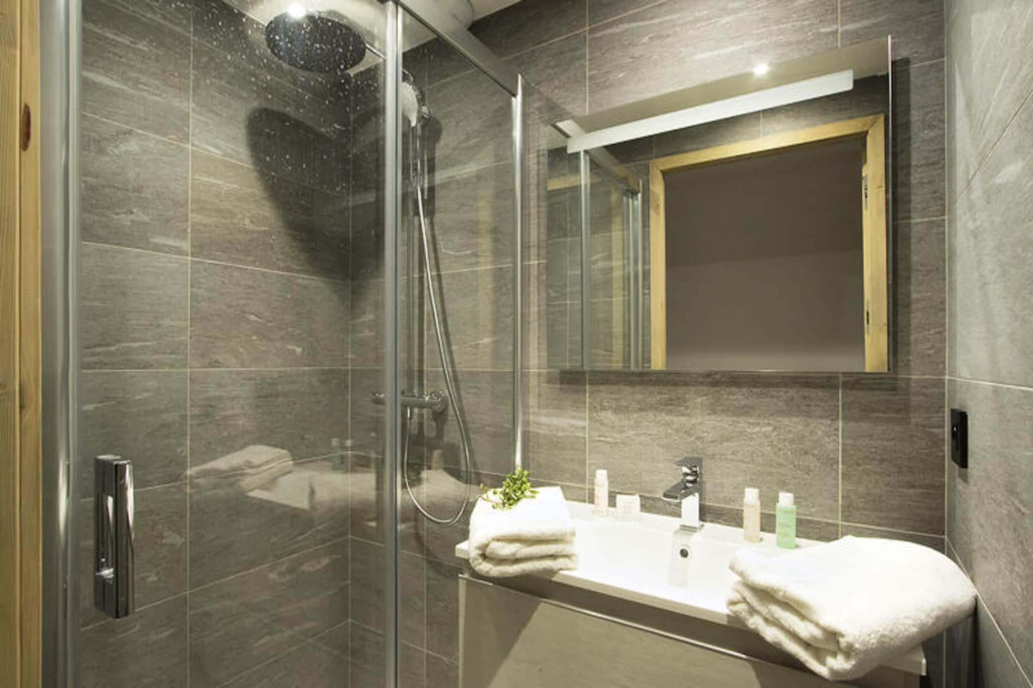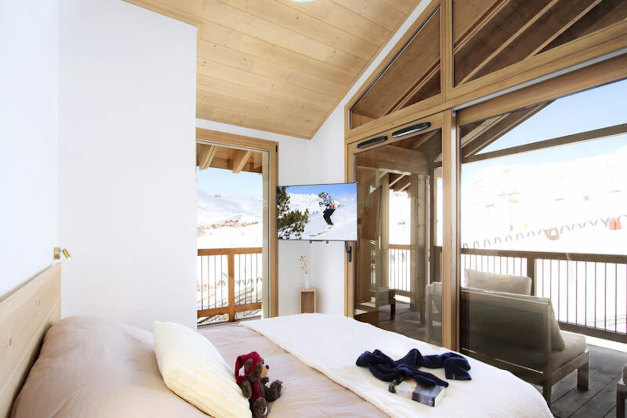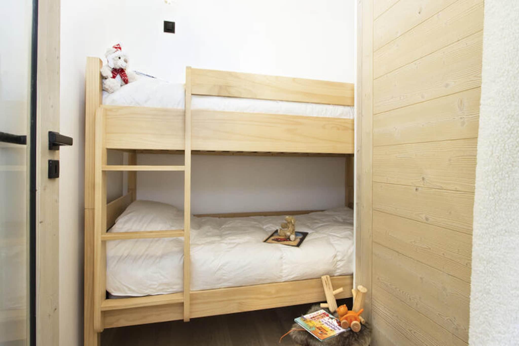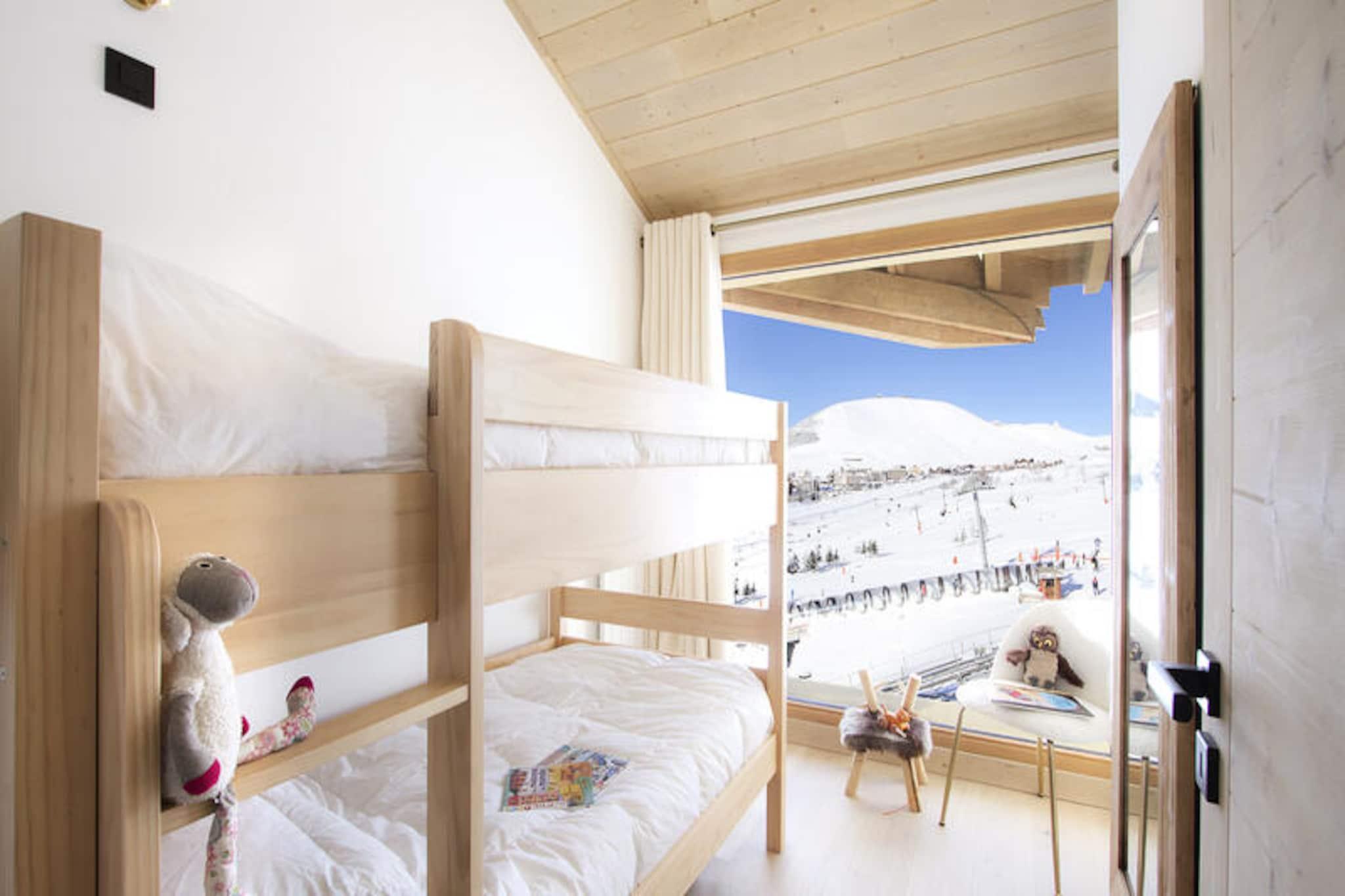 Denne rummelige lejlighed ligger højt oppe i de uberørte franske alper og tilbyder et luksuriøst tilflugtssted med direkte adgang til pisterne direkte til skiløb. Med en perfekt beliggenhed i en moderne bolig bydes gæsterne velkommen til en verden af ??komfort og elegance, omgivet af betagende udsigt over bjergene og alpin ro. Uanset om du er her for vintersport eller sommereventyr, lover denne ejendom et uforglemmeligt ophold i hjertet af naturens storhed. \n\nIndenfor kan lejligheden prale af en stor stue, der åbner ud til en vestvendt balkon, ideel til at nyde eftermiddagssolen. Det fuldt udstyrede køkken-alrum har topmoderne apparater, herunder ovn, opvaskemaskine, mikrobølgeovn, induktionskogeplade og et stort køleskab, hvilket gør det nemt at tilberede måltider til familie og venner. Med tre soveværelser med bløde 180 cm dobbeltsenge, en hyggelig hytte med køjesenge og ekstra køjesenge i et separat rum, rummer denne bolig komfortabelt større grupper. Moderne bekvemmeligheder såsom tv på soveværelserne, et rummeligt badeværelse, et brusebad og et separat toilet sikrer bekvemmelighed og afslapning under hele dit ophold.\n\nSelve boligen er et paradis for afslapning med swimmingpool, fitnesscenter, sauna, dampbad og sensoriske brusere til at forynge dig efter en dag på pisterne. Skirummet giver direkte adgang til pisterne, hvilket gør det nemt at begive sig ud på dine alpine eventyr. Gæsterne vil også sætte pris på ejendommens solrige beliggenhed og de betænksomme tjenester, der tilbydes, herunder sengelinned, håndklæder, velkomstprodukter og slutrengøring.\n\nUanset om du er tiltrukket af spændingen ved skiløb, roen ved bjergvandringer eller blot charmen ved de franske alper, er denne lejlighed den perfekte base for at skabe dyrebare minder. Med sin blanding af luksus, bekvemmelighed og naturlig skønhed inviterer den dig til at opleve bjergenes magi i enhver sæson.