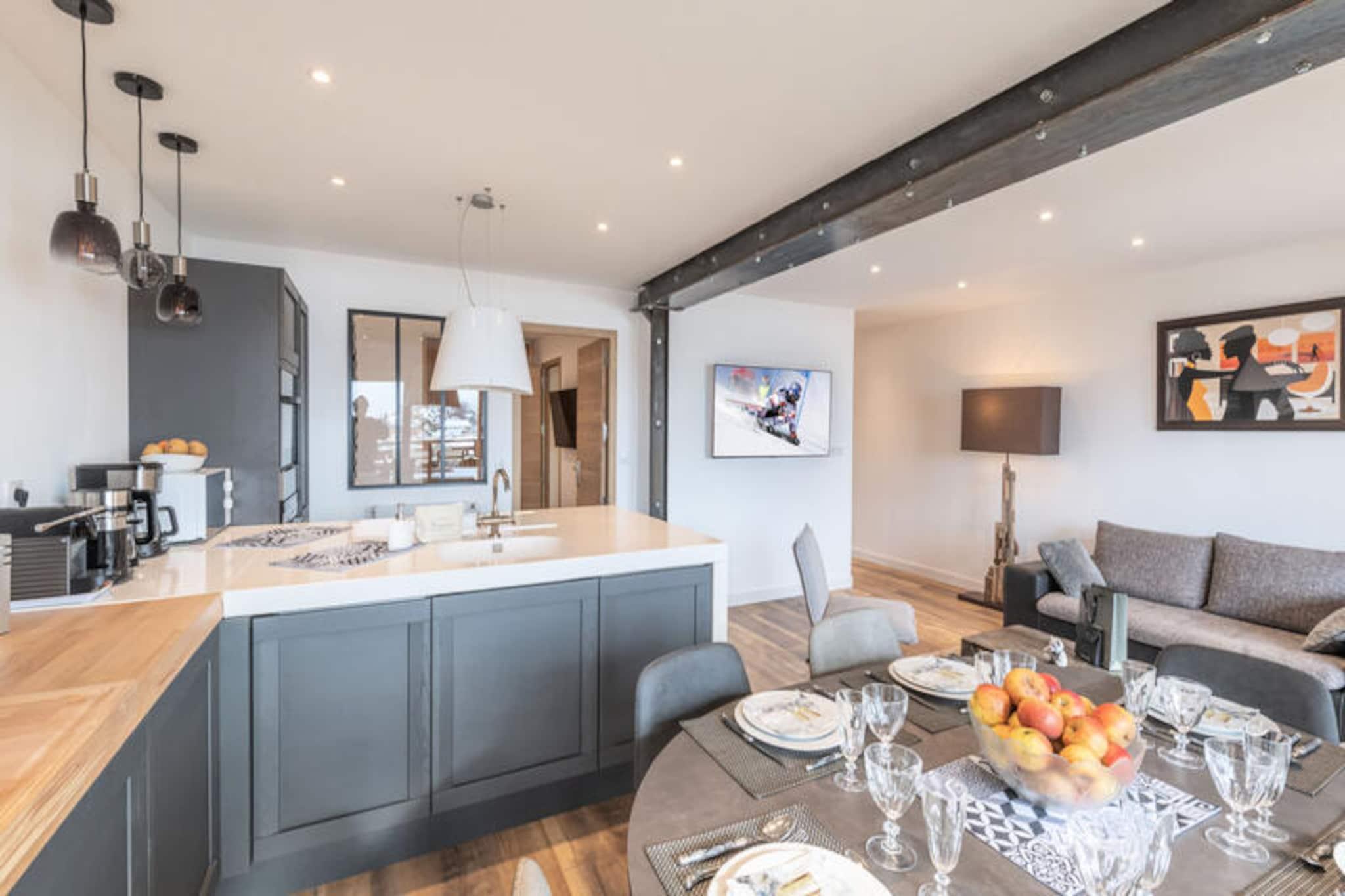 Badet i sollys og omgivet af de majestætiske tinder i de franske alper, tilbyder Les 2 Anges-residensen i Alpe d'Huez en perfekt blanding af moderne komfort og alpin charme. Denne nyrenoverede ejendom er ideelt beliggende i det pulserende JEUX-distrikt, kun få øjeblikke fra pisterne og lokale butikker. Uanset om du er her for vintersport eller sommerens bjergeventyr, lover denne residens et uforglemmeligt ophold med en betagende sydvendt udsigt fra sin private balkon. Forestil dig at nippe til din morgenkaffe, mens du kigger på de solbeskinnede bjerge, klar til at begive dig ud på en dag fyldt med udforskning og spænding. \n\nIndvendigt er lejligheden omhyggeligt designet til at rumme familier eller små grupper. Den åbne opholdsstue har et fuldt udstyret køkken med vinkælder og flyder problemfrit ind i spisestuen og tv-stuen. Med to dobbeltværelser, det ene med eget brusebad, og et hyggeligt bjerghjørne med køjesenge sikrer layoutet både privatliv og samvær. Sengelinned af høj kvalitet, badeværelsesprodukter og opredte senge ved ankomst tilføjer et strejf af luksus, mens slutrengøring sikrer en problemfri afrejse. Alpe d'Huez er kendt for sine ski- og snowboardmuligheder i verdensklasse med pister, der henvender sig til alle niveauer. Om sommeren forvandles feriestedet til et paradis for vandrere og cyklister med stier, der snor sig gennem frodige enge og dramatiske landskaber. JEUX-distriktet giver nem adgang til restauranter, butikker og afterski-aktiviteter, hvilket gør det nemt at fordybe sig i den livlige alpine atmosfære. Vælg Les 2 Anges til din næste bjergferie, og oplev den perfekte kombination af afslapning, eventyr og fantastisk naturlig skønhed. Uanset om du snor dig gennem frisk puddersne eller nyder en naturskøn vandretur, er denne bolig din indgang til det bedste af Alpe d'Huez.