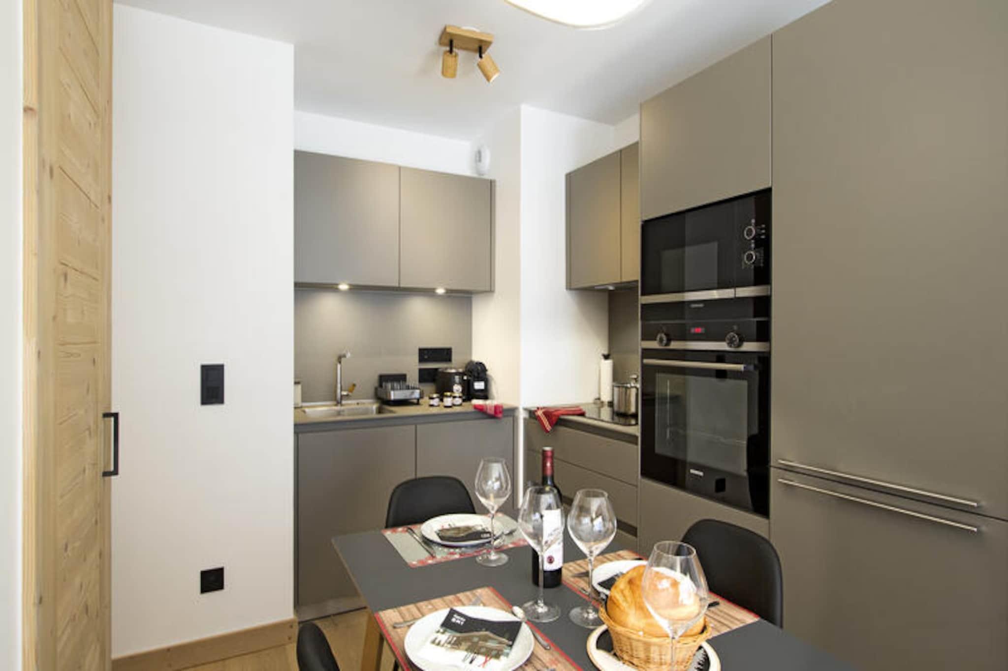 Badet i naturligt lys og beliggende på en førsteklasses beliggenhed, tilbyder denne moderne alpine lejlighed en uovertruffen ski-in/ski-out oplevelse. Forestil dig at træde direkte ud på pisterne med de majestætiske franske alper som baggrund. Boligen, en oase af komfort og elegance, kombinerer moderne design med luksuriøse faciliteter, hvilket gør den til det perfekte tilflugtssted for din bjergferie. Uanset om du er her for at grave dig gennem uberørt sne eller sole dig i sommersolen, sikrer denne ejendom et mindeværdigt ophold året rundt. Indenfor har lejligheden komfortabel plads til 4 til 6 gæster. Opholds- og spisestuen, udstyret med et smart-tv og Bluetooth-højttaler, er det ideelle sted at slappe af efter en dag med eventyr. Tekøkkenet kan prale af moderne apparater, herunder induktionskogeplade, køleskab, fryser, opvaskemaskine, ovn, mikrobølgeovn og Nespresso-kaffemaskine, der opfylder alle dine kulinariske behov. Soveværelset har en luksuriøs dobbeltseng og rigelig opbevaringsplads, mens den hyggelige hytte med en køjeseng og en sovesofa i opholdsstuen giver yderligere sovemuligheder. Et elegant brusebad, separat toilet og vaskemaskine bidrager til bekvemmeligheden. Træd ud på den sydøstvendte terrasse for at nyde den alpine udsigt og den friske bjergluft. Selve ejendommen tilbyder et væld af faciliteter, herunder en swimmingpool, fitnesscenter, sauna, dampbad og sensoriske brusere, der sikrer afslapning og foryngelse efter en aktiv dag. Skirummet med støvletørrer og en sikker garage i kælderen forbedrer dit ophold yderligere. Denne ejendom, der ligger i hjertet af de franske alper, er din port til endeløse udendørs eventyr og fredfyldte bjerglandskaber. Med sengelinned, håndklæder, velkomstprodukter og slutrengøring inkluderet, skal du blot ankomme og lade bjergenes magi tage over.