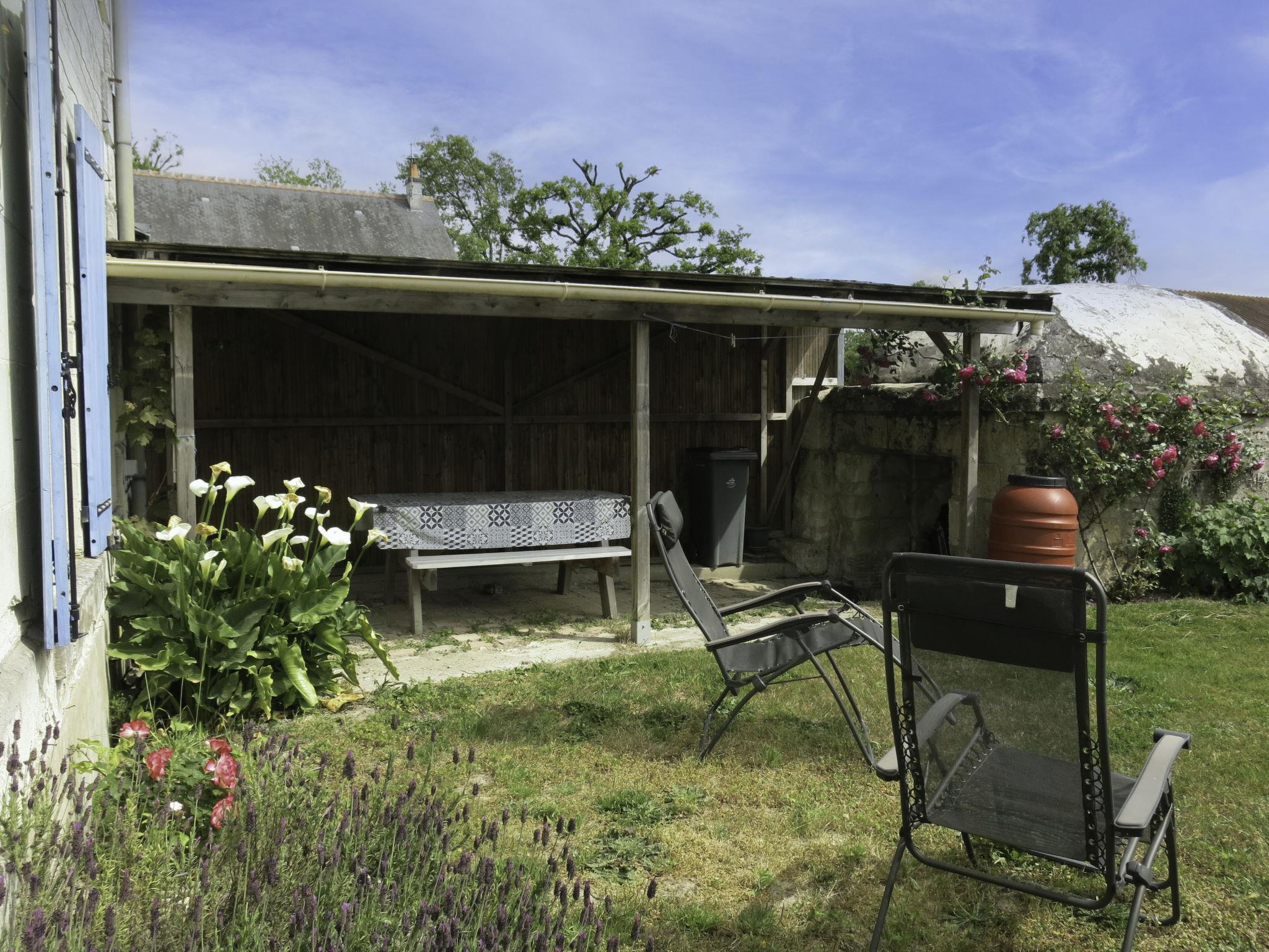 "Les Landes du Chinonais", 2-room house 63 m2. Beautiful furnishings: living room with Scandinavian wood stove, TV and radio. Exit to the garden. 1 room with 2 beds (90 cm, length 200 cm). Open kitchen (oven, 2 ceramic glass hob hotplates, toaster, kettle, microwave, freezer, electric coffee machine). Shower/WC. Terrace 12 m2, roofed. Terrace furniture, barbecue (portable), deck chairs (2). Facilities: washing machine, children's high chair, baby cot. Internet (WiFi, free). Please note: non-smoking house. Maximum 1 pet/ dog allowed. Smoke alarm. Offer by a private individual according to Art. 155, IV of CGI.