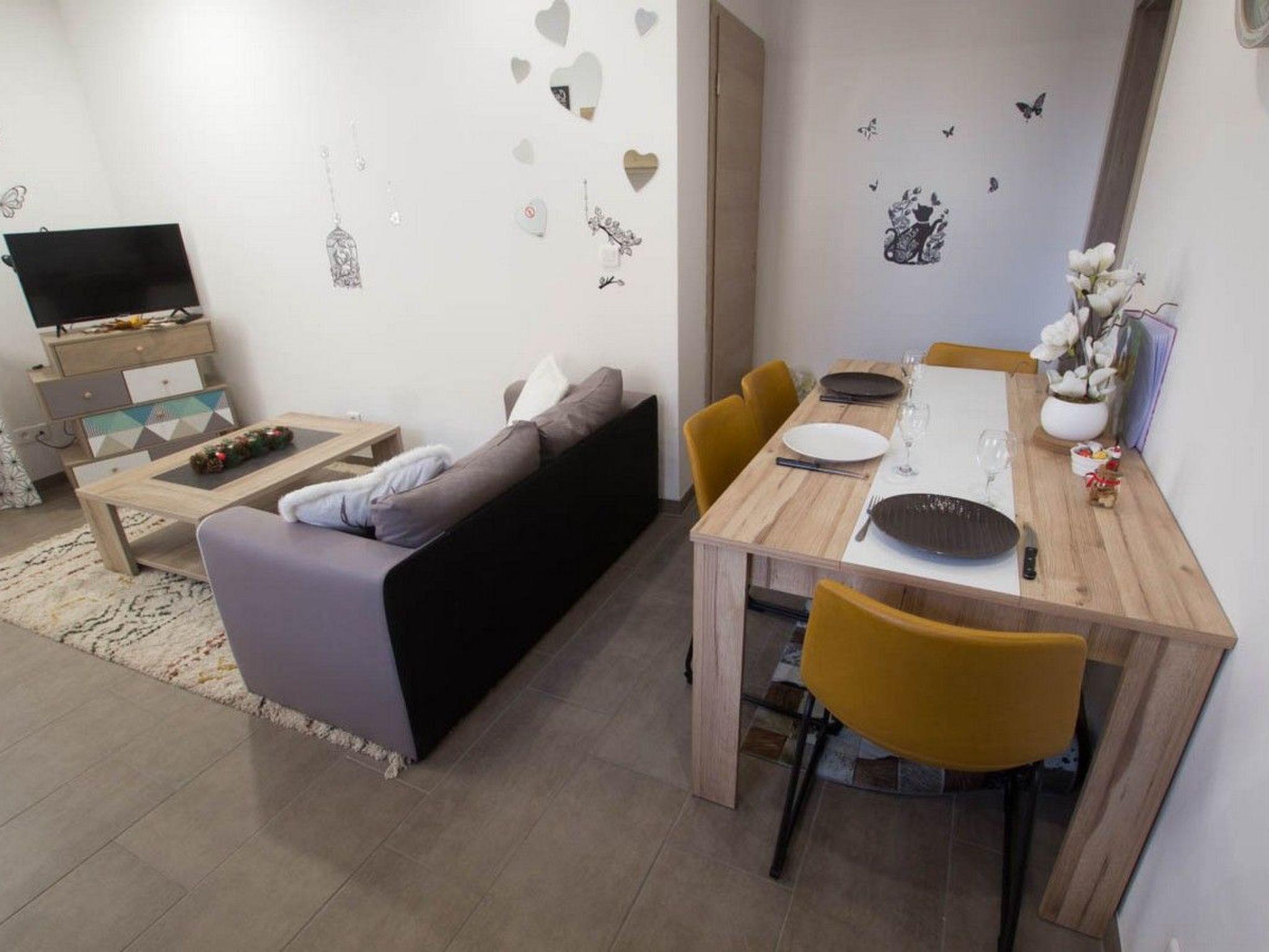 Fully-equipped flat with kitchen, living room, bedroom, bathroom with walk-in shower and 1 separate WC.
