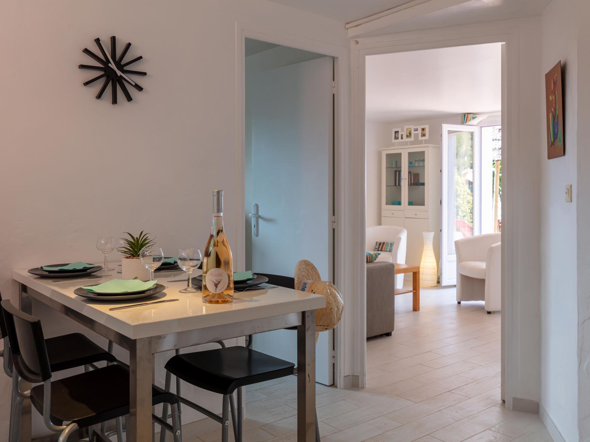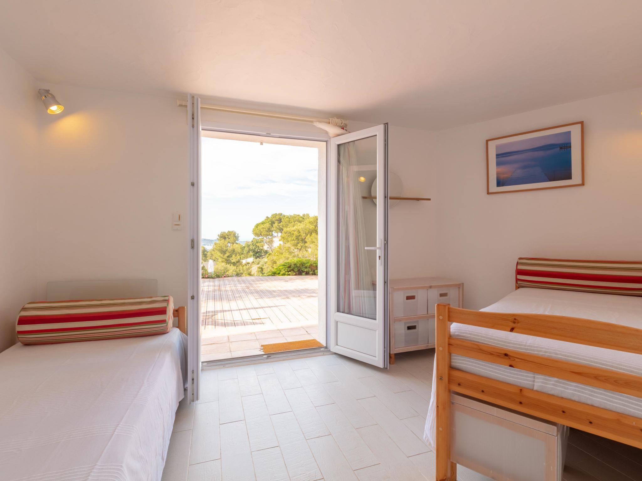 Le Mont des Oiseaux 2 km from de Hyeres: Beautiful terraced house "Mont des Oiseaux", 2 storeys. In a quiet, sunny position on top of a hill, 3 km from the sea, 3 km from the beach. For shared use: property 1'500 m2, well-kept garden with plants and trees, swimming pool angular (10 x 5 m, depth 90 - 160 cm, seasonal availability: 21.May. - 30.Sep.). Boccia, parking. Shop 4 km, grocery 4 km, shopping centre 4 km, restaurant 2 km, bus stop "mont des oiseaux" 2.5 km, sandy beach "L'almanarre" 3 km. Sailing school 3 km. Nearby attractions: Magic world 6.6 km, speedkart 8.5 km, Jardin Olbius Riquier 11 km. Please note: car recommended. The keys‘ handover takes place by the agency Interhome in Hyères le Port. Hyeres airport - Toulon: 6 km. The apartment on the first floor is occupied occasionally.