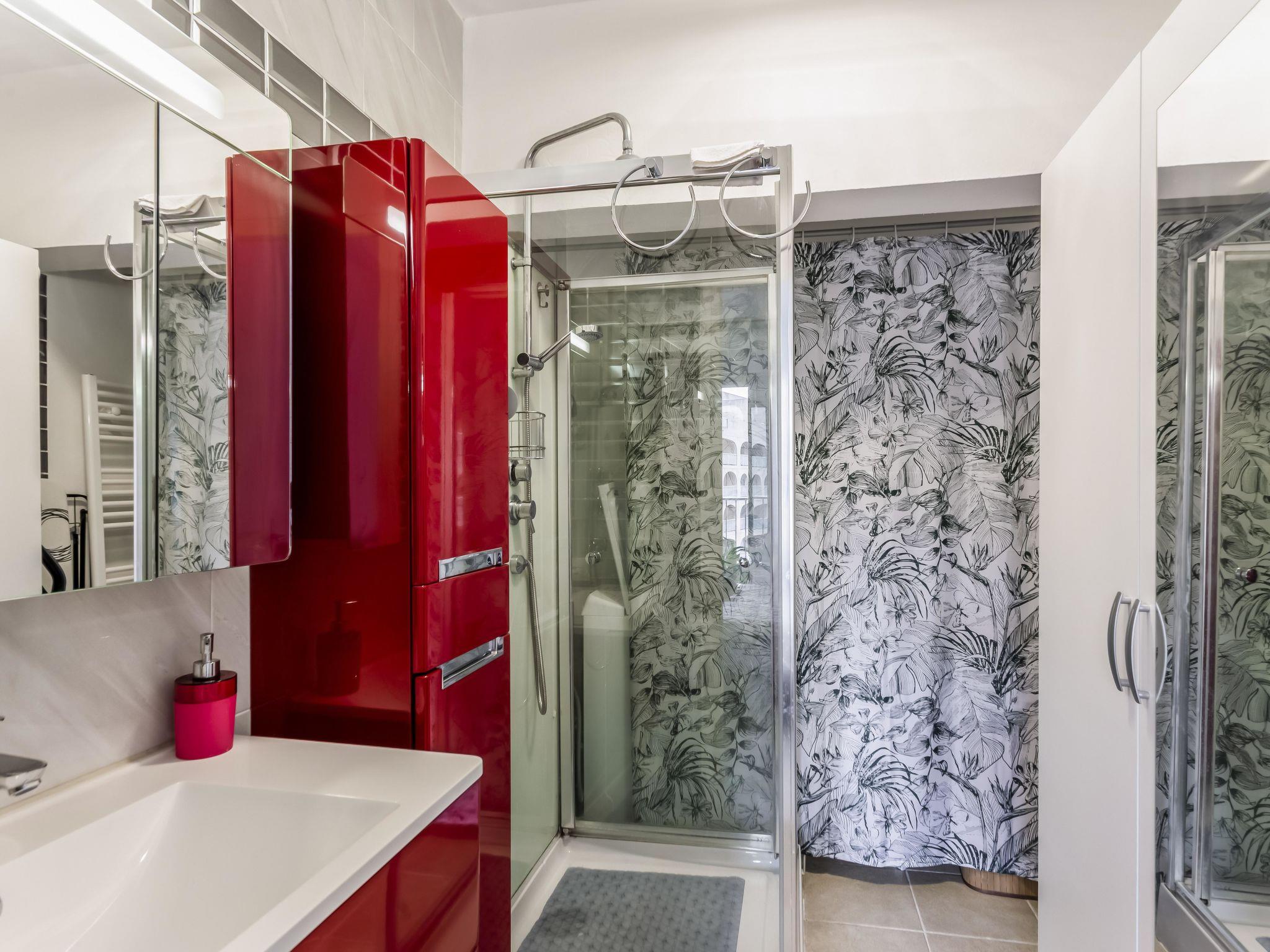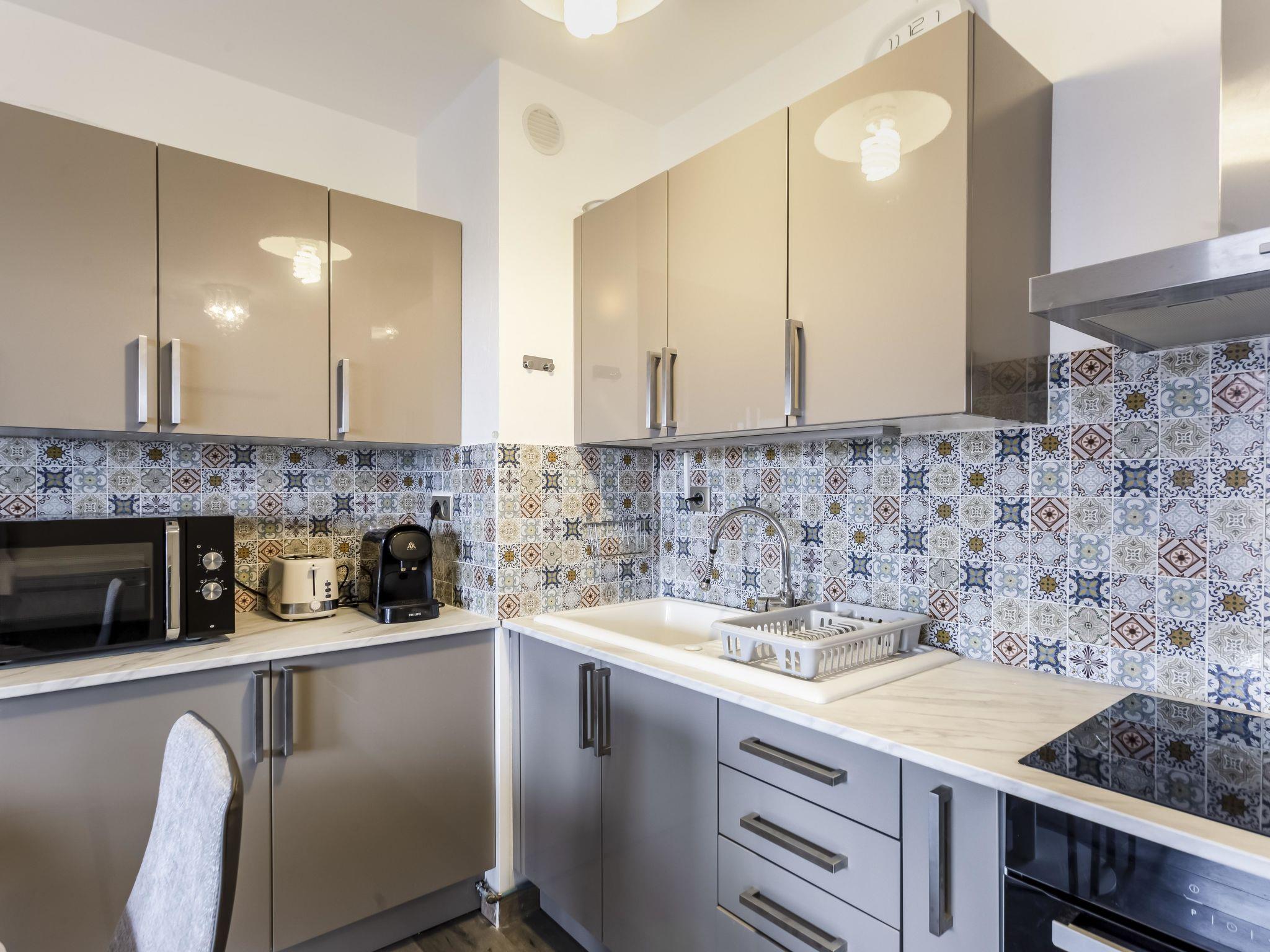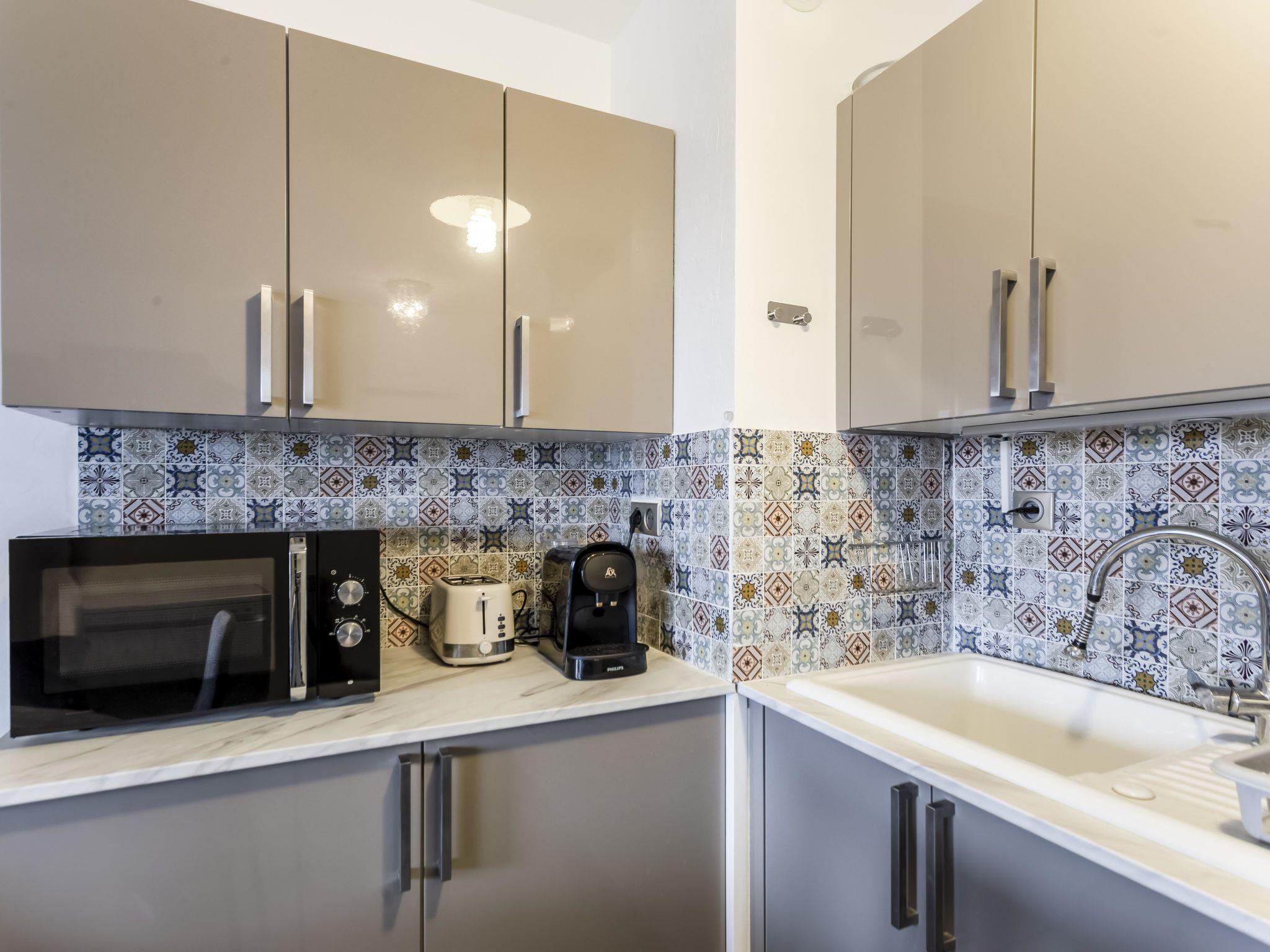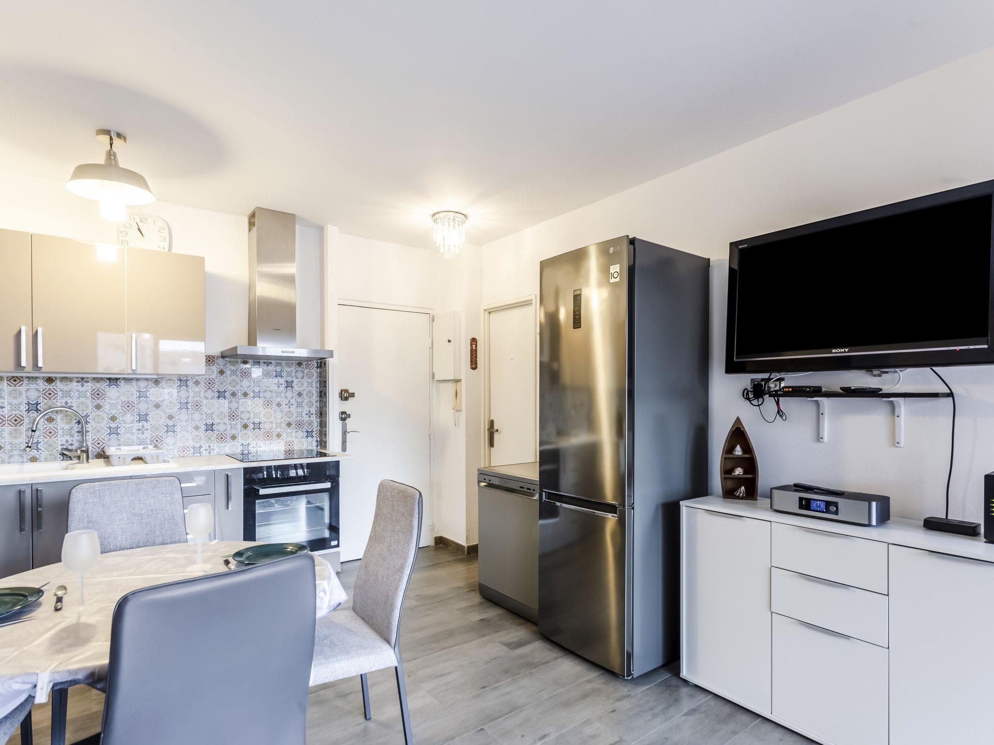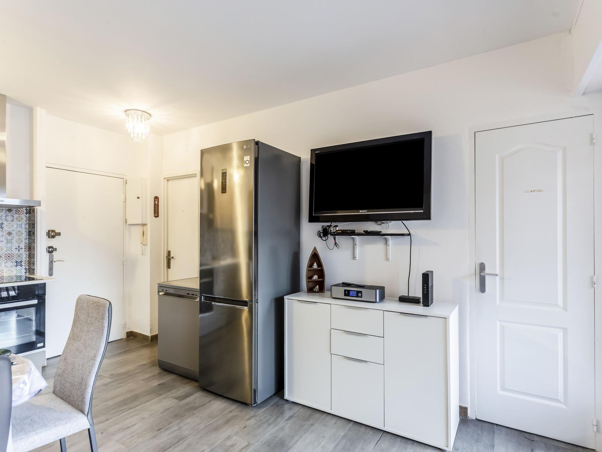 2-room apartment 33 m2 on 2nd floor. Comfortable and beautiful furnishings: living/dining room with 1 sofabed (140 cm, length 190 cm), TV (flat screen). Exit to the terrace. 1 room with 1 french bed (160 cm, length 200 cm), air conditioning. Exit to the terrace. Open kitchen (oven, dishwasher, 4 ceramic glass hob hotplates, toaster, kettle, microwave, freezer, electric coffee machine). Shower, sep. WC. Electric heating. Terrace 15 m2. Terrace furniture. Very beautiful view of the sea. Facilities: washing machine, iron, hair dryer. Internet (WiFi, free). Please note: TV only FR. Smoke alarm. Offer by a private individual according to Art. 155, IV of CGI.