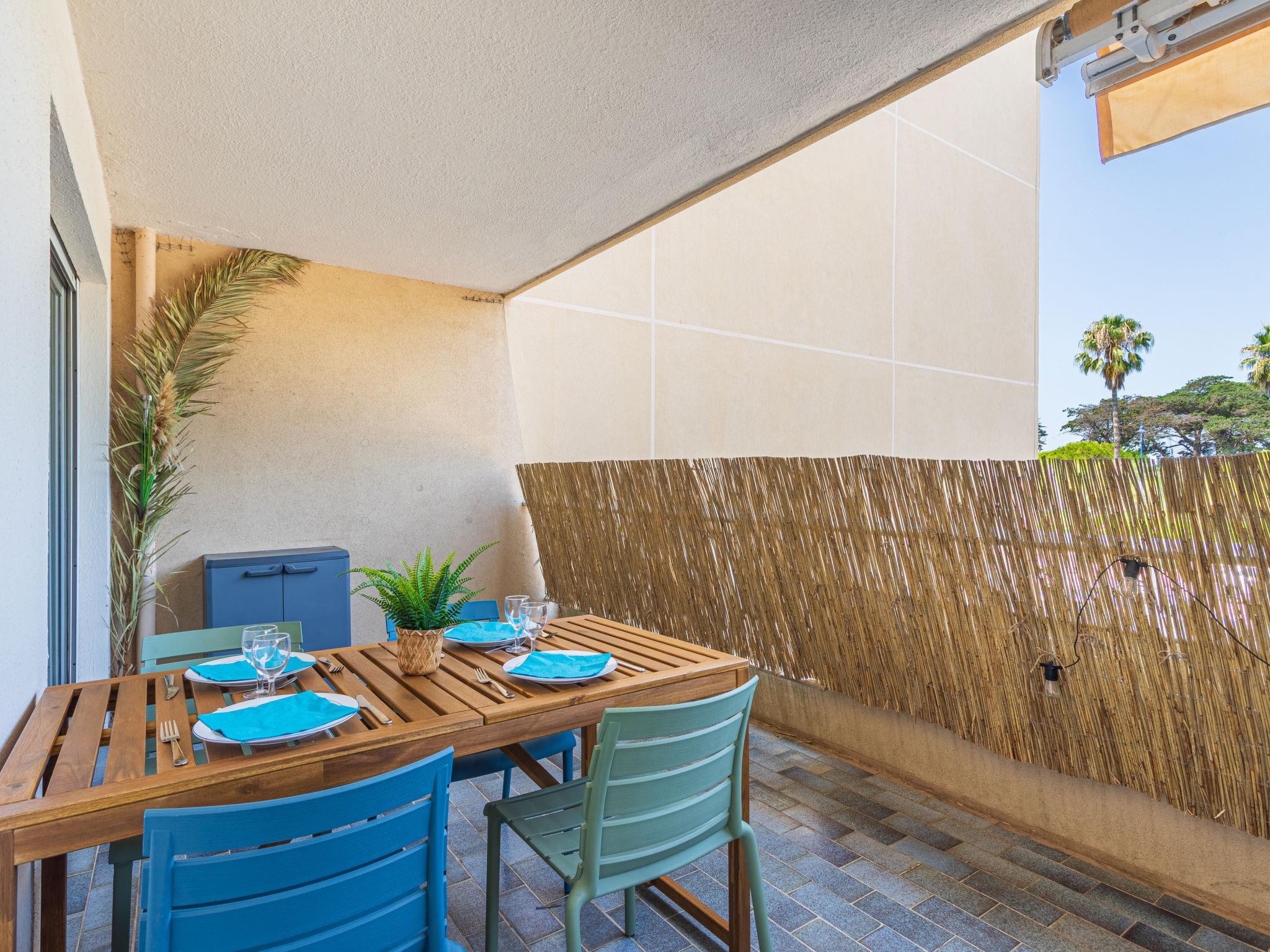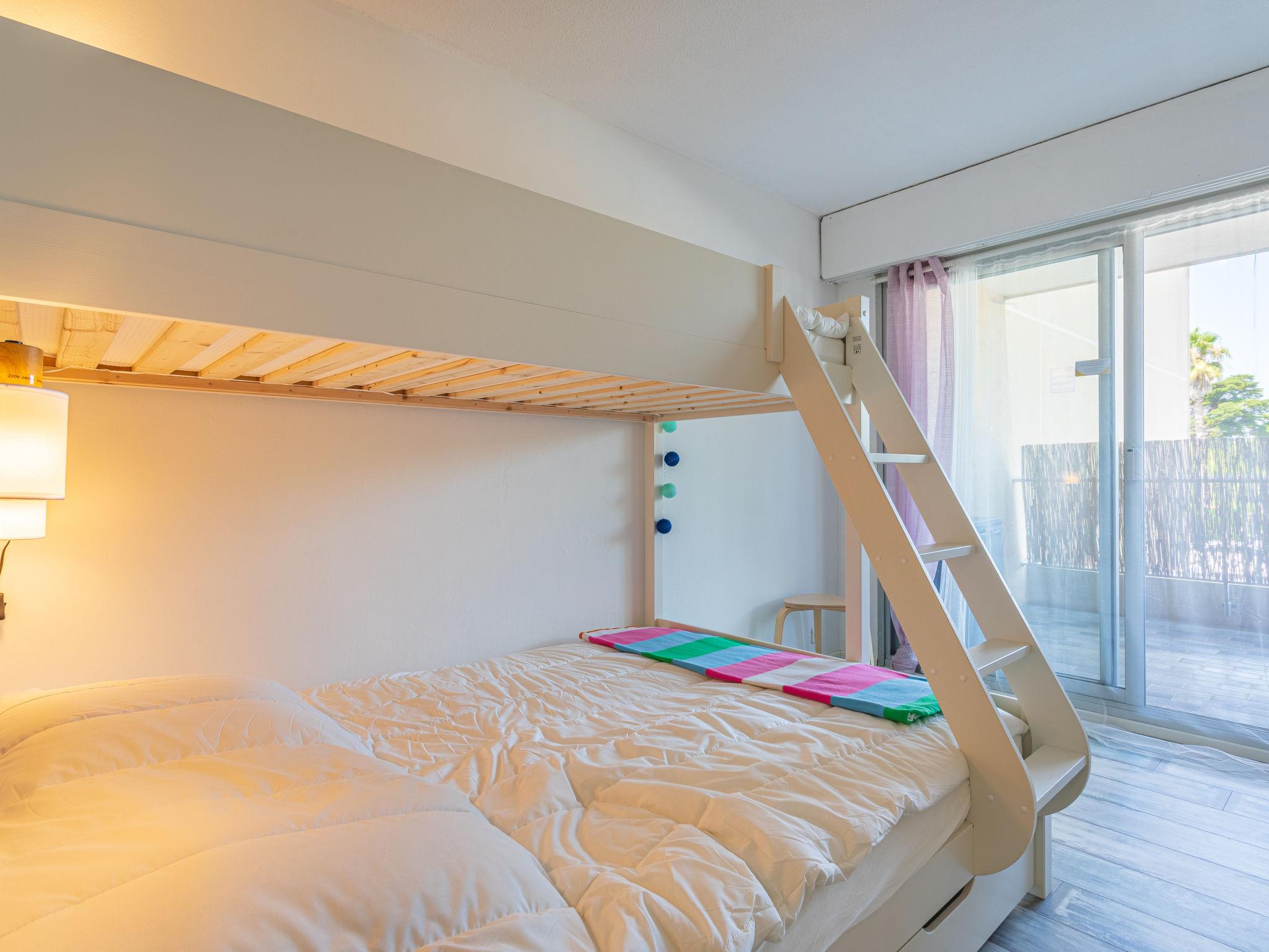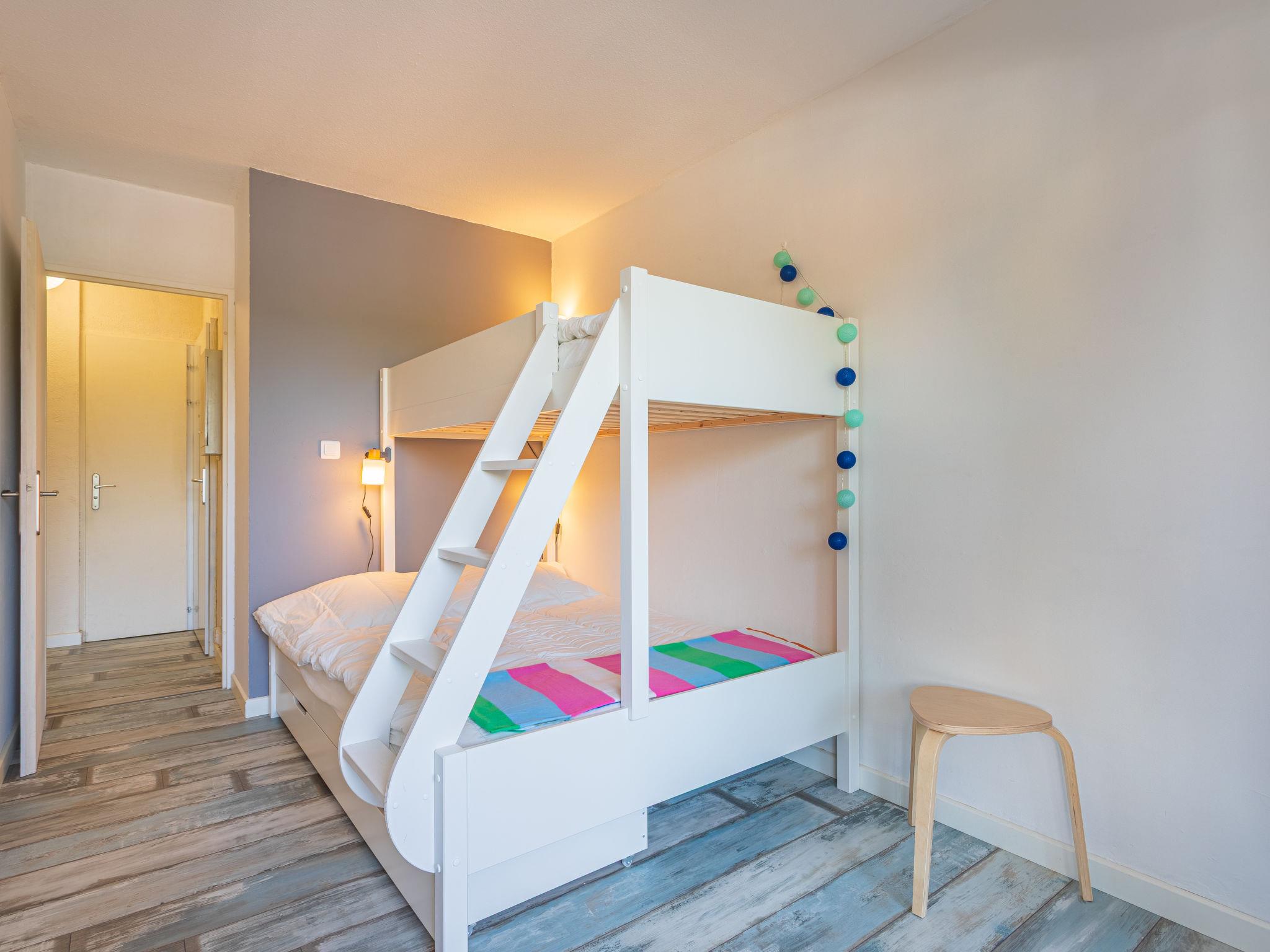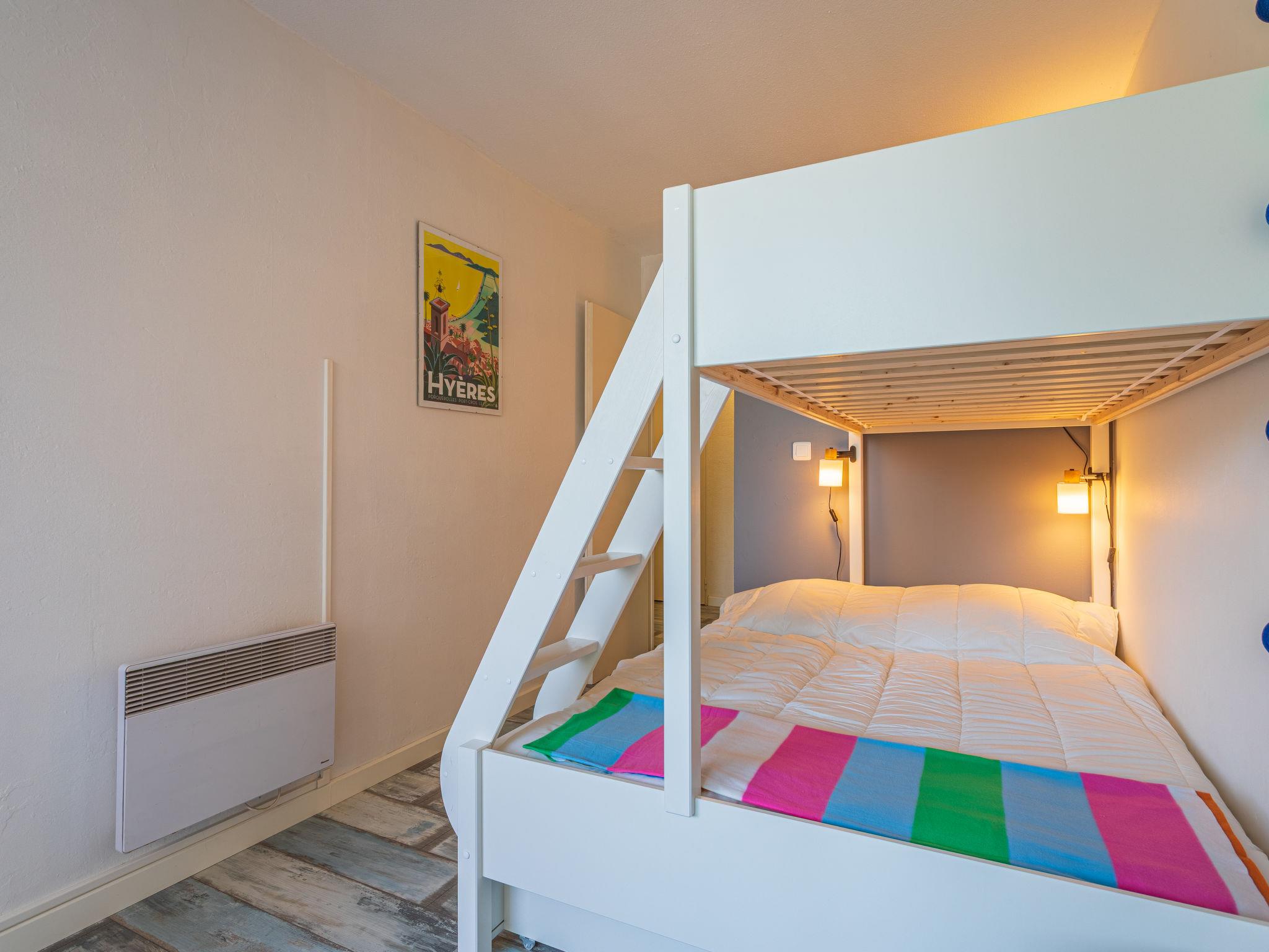 2-room apartment 42 m2 on 1st floor. Spacious and bright, beautiful furnishings: living/dining room with 1 sofabed (160 cm, length 200 cm), dining table and TV (flat screen). Exit to the terrace. Entrance hall with Dressing room. 1 room with 1 x 2 bunk beds (90 cm, length 200 cm) (140 cm, length 200 cm). Kitchenette (oven, dishwasher, 3 induction hot plates, toaster, kettle, microwave, electric coffee machine, Capsules for coffee machine (Senseo) extra). Bath/WC. Electric heating, air-conditioning. Terrace 16 m2, west facing position. Terrace furniture. Facilities: washing machine, iron. Internet (WiFi, free). Parking space n 17. Please note: TV only FR. the top bunk bed is only for 1 child and not for 1 adult. Offer by a private individual according to Art. 155, IV of CGI.