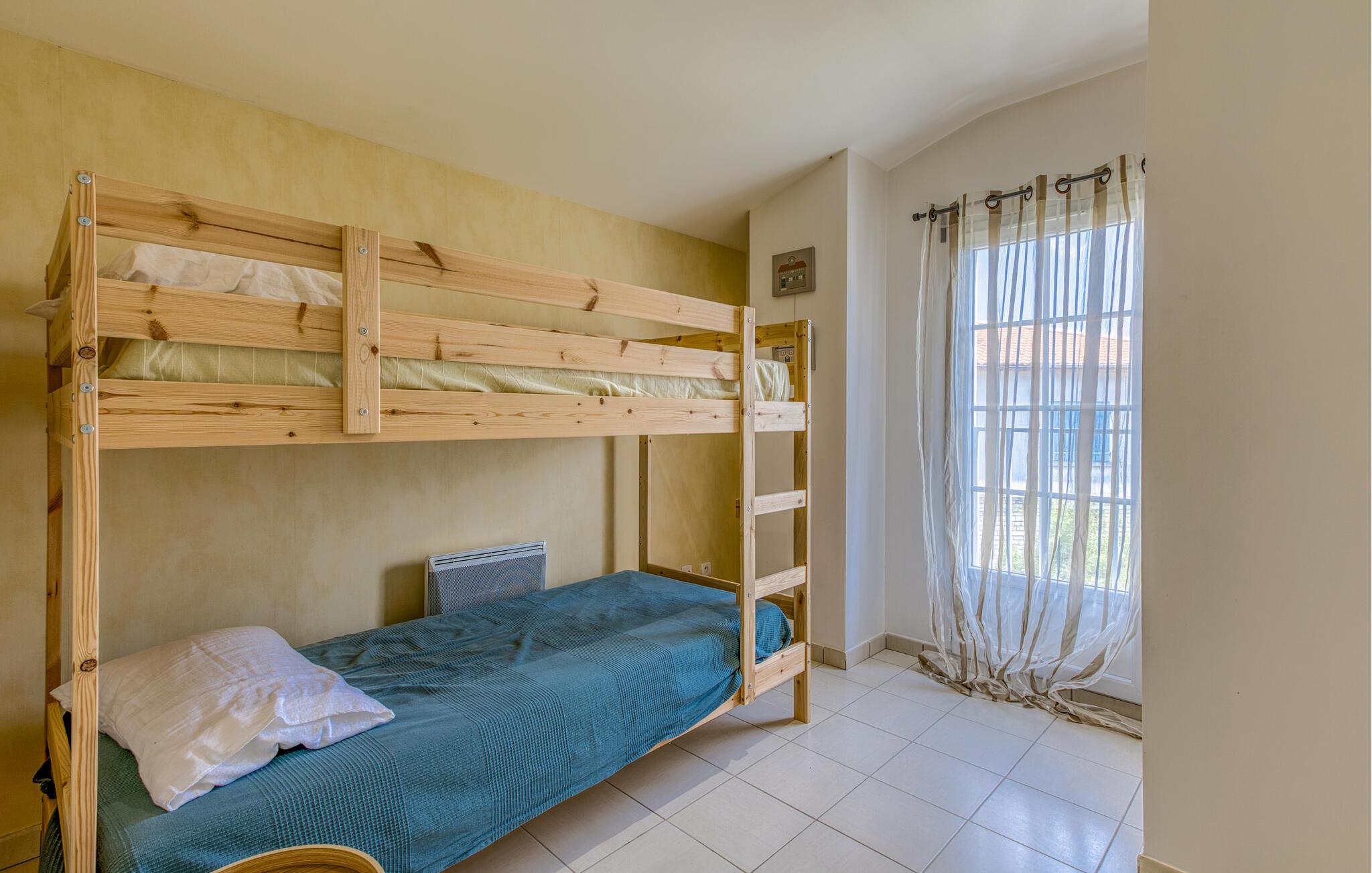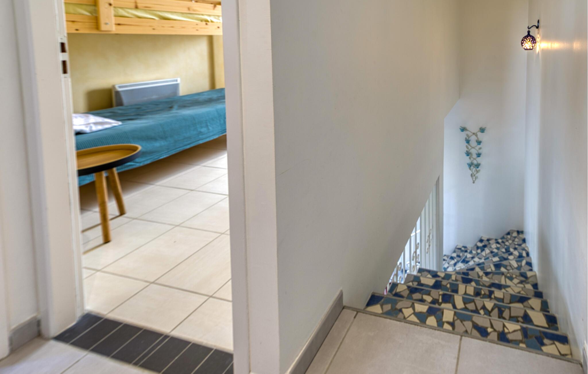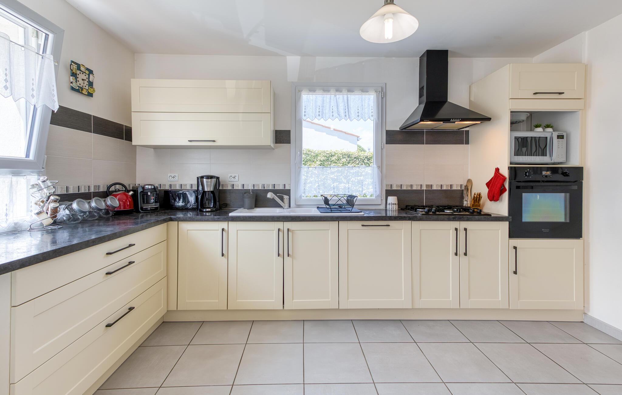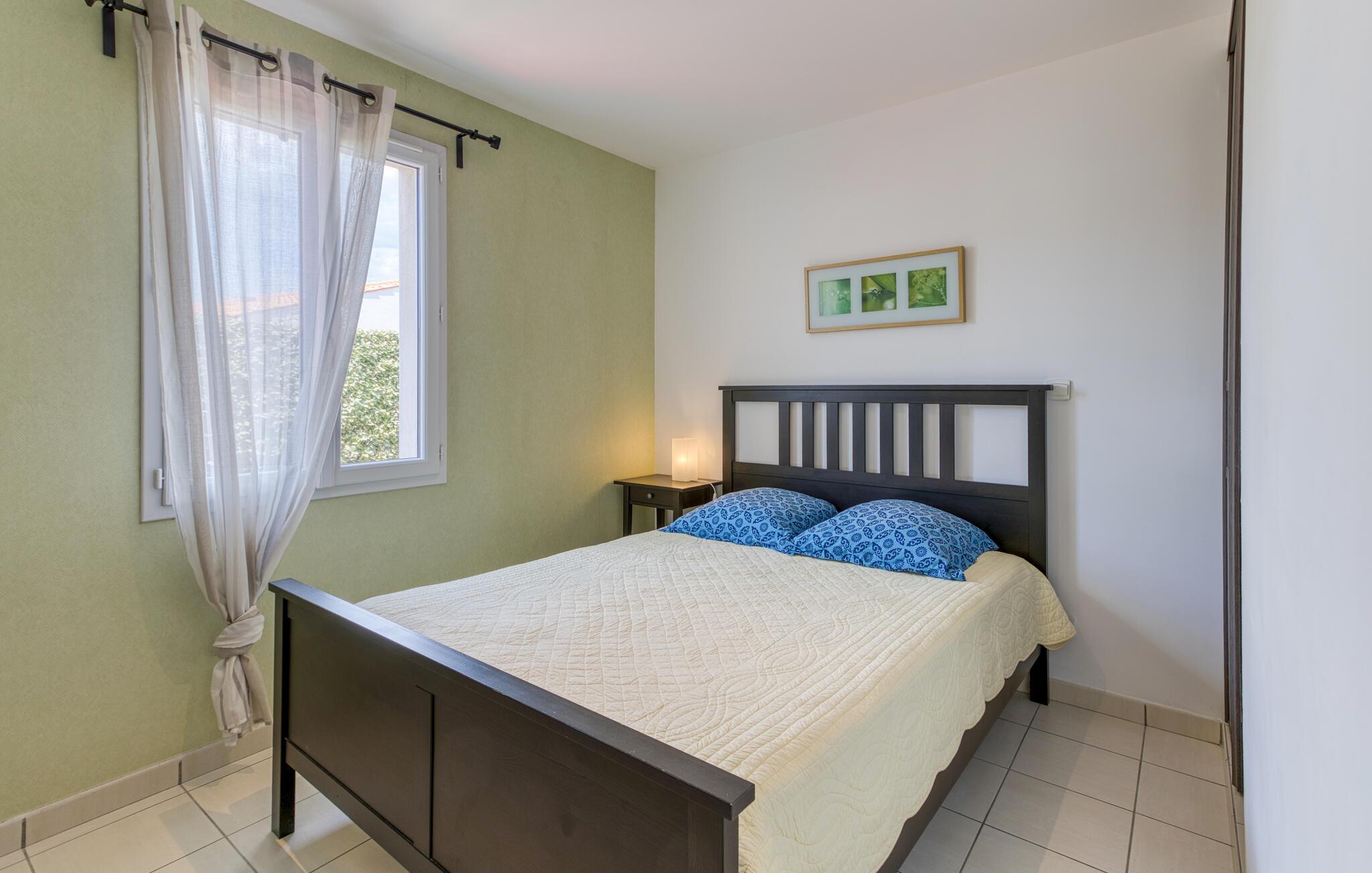 Kombinér afslapning med varierede udflugter gennem den charmerende region i dette charmerende feriehus. Dette lyse og rummelige feriehus tilbyder jer den ideelle base for at forlade hverdagen og udforske den maleriske ø. Føl jer hjemme, mens I forvandler friske råvarer fra markedet til lækre retter. Planlæg jeres aktiviteter ud over harmoniske måltider, og slap af efter en begivenhedsrig dag med en filmaften på den behagelige sofa. Nyd en lækker morgenmad på jeres diskret skyggefulde terrasse. Brug liggestolene til afslappende siestaer eller rolige læsetimer, og oplev stemningsfulde grillaftener med vin og stearinlys. Den bekvemme beliggenhed gør det nemt at nå Atlanterhavsstrandene Rémigeasse og Vert Bois samt Boyardville på fastlandet på cykel. Gå en tur gennem butikkerne i Dolus, nyd den behagelige atmosfære på markedet i Saint-Pierre, og tag ture til Royan, den berømte La Palmyre Zoo, La Rochelle eller Cognac.
