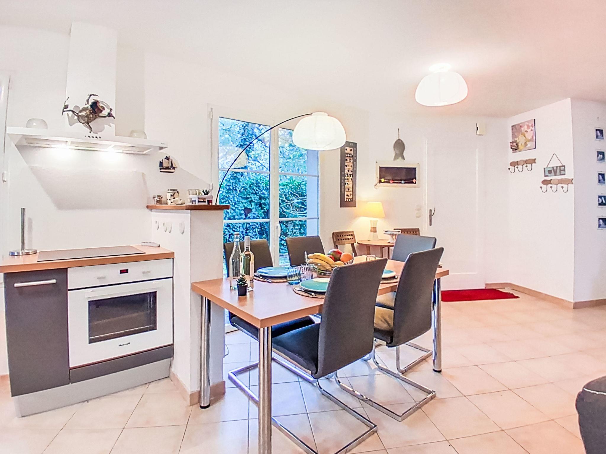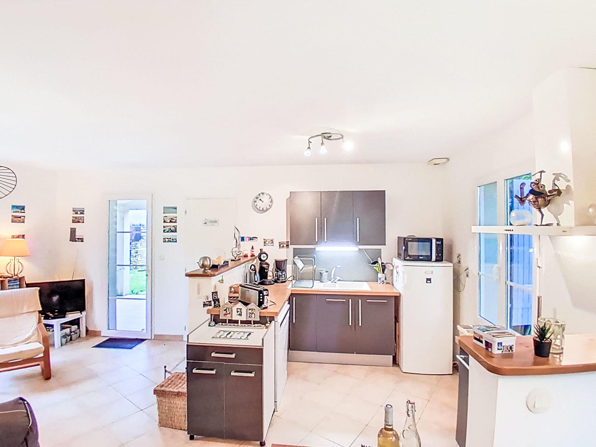 3-room house 80 m2. Bright, comfortable and modern furnishings: living/dining room. Exit to the garden, to the terrace. 1 room with 1 french bed (160 cm, length 200 cm). 1 room with 1 french bed (140 cm, length 190 cm). Open kitchen (oven, dishwasher, 4 induction hot plates, toaster, kettle, microwave, electric coffee machine). Bathroom, sep. WC. Electric heating. Terrace 12 m2, terrace 8 m2. Terrace furniture, barbecue, deck chairs. View of the garden. Facilities: washing machine, iron, children's high chair, baby cot, hair dryer. Internet (WiFi, extra). Parking (fenced 1 car) at the house. Please note: suitable for families. Non-smokers only. Smoke alarm. Offer by a private individual according to Art. 155, IV of CGI. 173370005539A