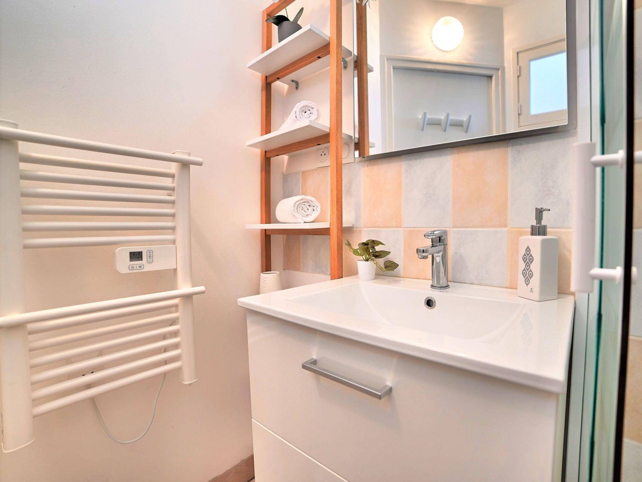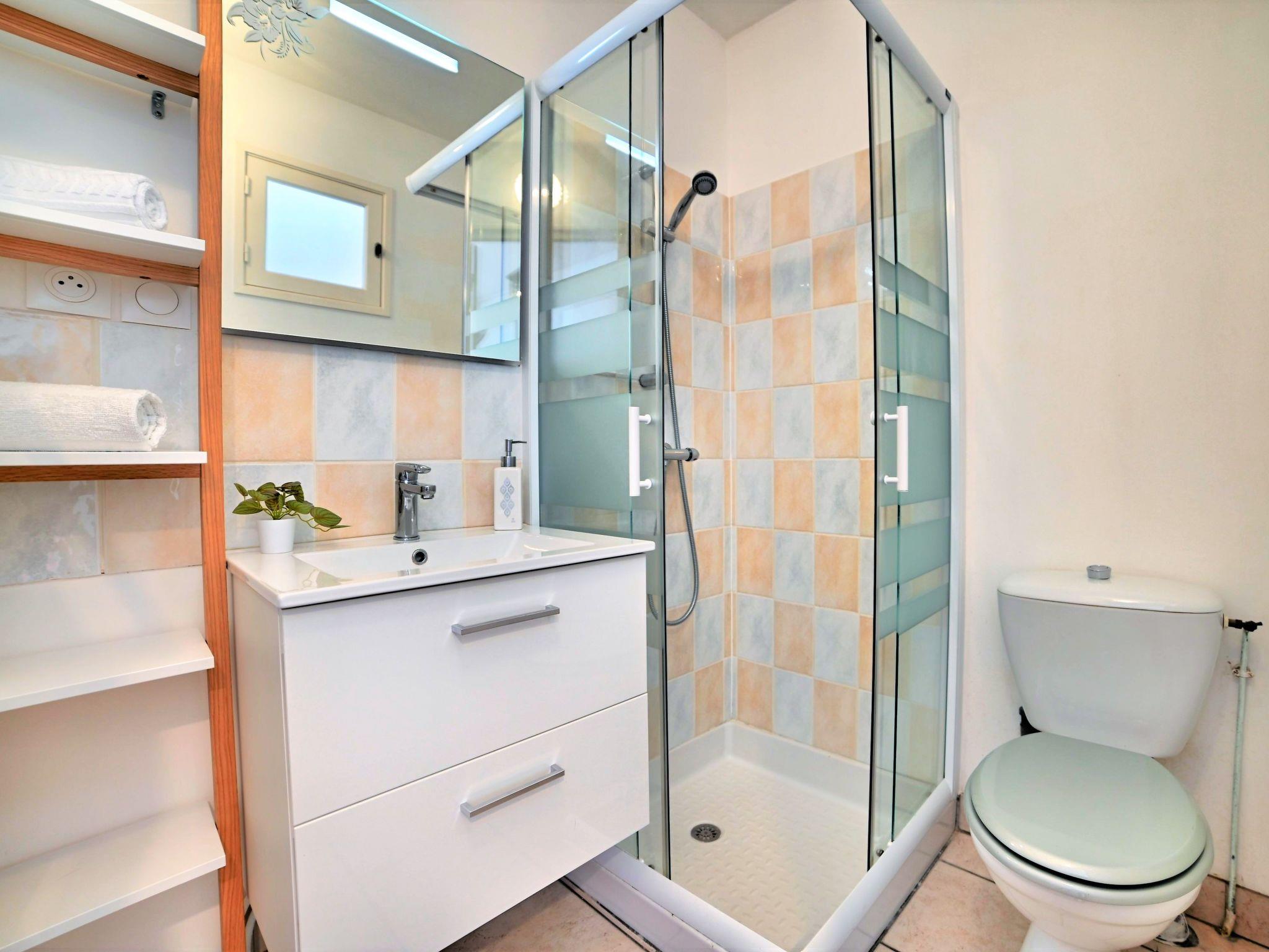 4-room house 80 m2, on the ground floor. Beautiful and cosy furnishings: living/dining room with TV (flat screen). Exit to the terrace. 1 room with 1 french bed (160 cm, length 200 cm), shower/WC. 1 room with 1 french bed (140 cm, length 190 cm). 1 room with 2 beds (90 cm, length 190 cm). Open kitchen (4 hot plates, oven, dishwasher, toaster, kettle, microwave, freezer, electric coffee machine). Shower/WC. Electric heating. Large terrace 25 m2. Terrace furniture, barbecue, deck chairs (4). Facilities: washing machine, children's high chair, baby cot for up to 2 year olds. Internet (WiFi, extra). Please note: suitable for families. Non-smokers only. Maximum 1 small pet/ dog allowed. Smoke alarm. Offer by a private individual according to Art. 155, IV of CGI. 171400002121B