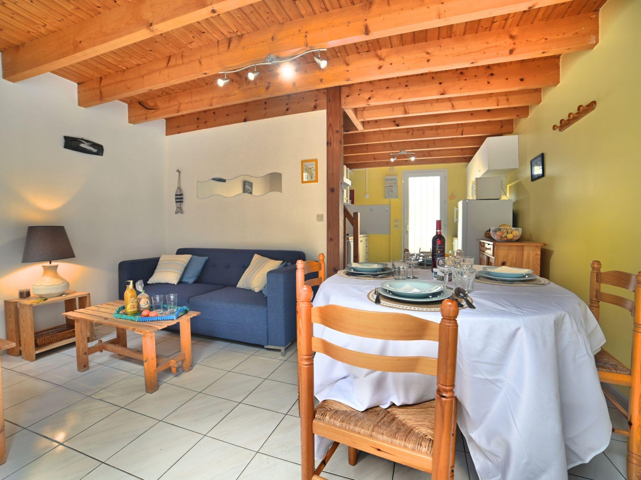 3-room terraced house 39 m2 on 2 levels. Living/dining room with TV and flat screen. Exit to the terrace. Kitchenette (2 hot plates, mini-oven, dishwasher, toaster, microwave, electric coffee machine). Shower, sep. WC. Electric heating. Upper floor: 1 room with 1 french bed (1 x 140 cm, length 190 cm). 1 room with sloping ceilings with 2 beds (90 cm, length 190 cm). Large terrace 30 m2. Terrace furniture, barbecue, deck chairs (3). Facilities: washing machine. Internet (WiFi, extra). Parking at the house. Please note: non-smokers only. Smoke alarm. Offer by a private individual according to Art. 155, IV of CGI. 171400003248C