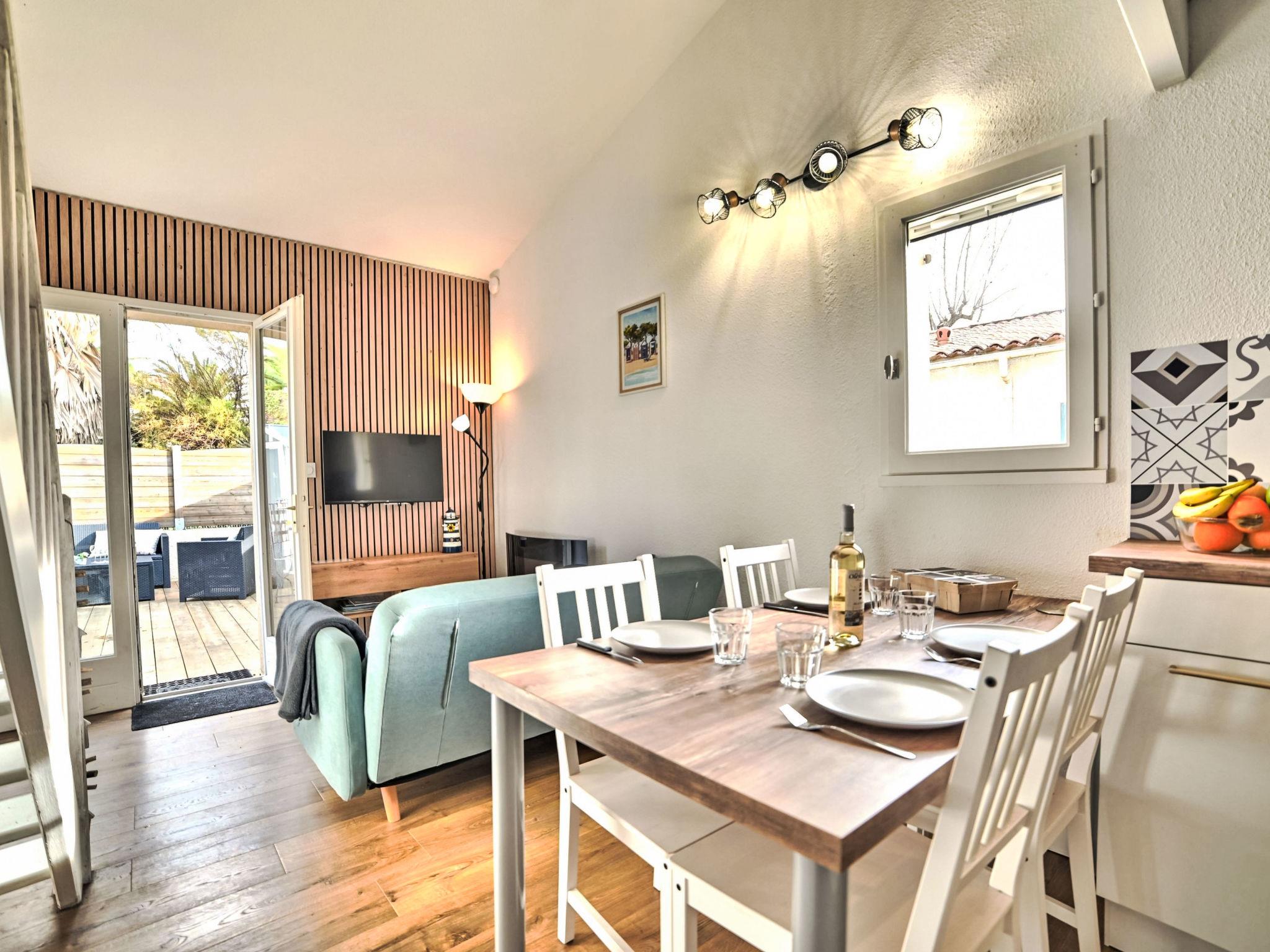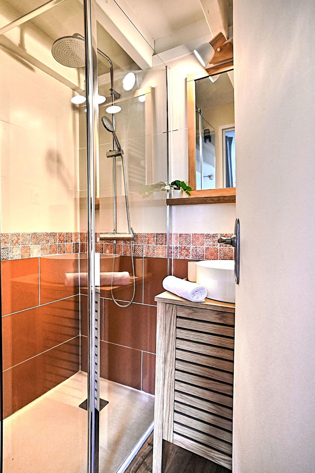 3-room terraced house 30 m2. Beautiful furnishings: living/dining room with TV (flat screen). Exit to the terrace. 1 room with 1 french bed (1 x 140 cm, length 190 cm). Kitchenette (oven, dishwasher, 3 induction hot plates, toaster, kettle, microwave, electric coffee machine). Bathroom, sep. WC. Electric heating. Upper floor: 1 room, without window with 2 beds (80 cm, length 190 cm). Large terrace 30 m2. Terrace furniture, barbecue. Facilities: washing machine, hair dryer. Internet (WiFi, free). Parking. Please note: smoke alarm. Offer by a private individual according to Art. 155, IV of CGI. 17337000064E7