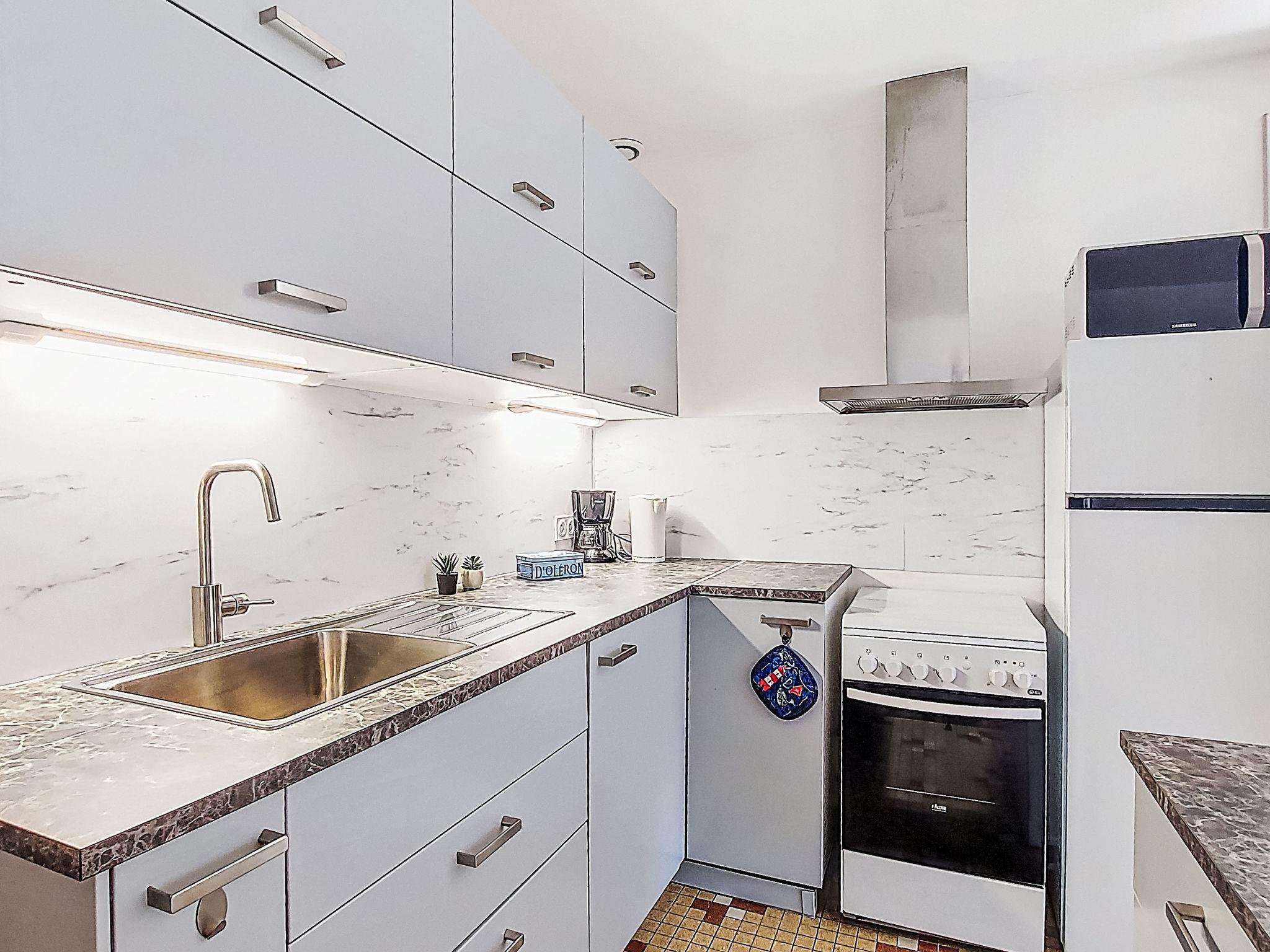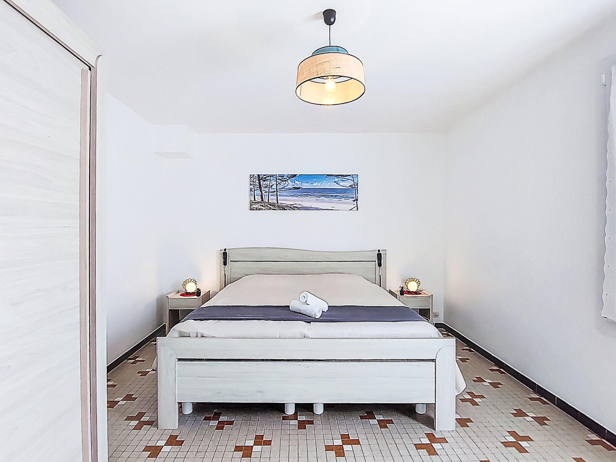 2-room house 35 m2. Simple furnishings: living/dining room with TV (flat screen). Exit to the garden, to the terrace. 1 room with 1 french bed (180 cm, length 200 cm). Kitchenette (4 hot plates, oven, toaster, kettle, microwave, electric coffee machine). Bathroom, sep. WC. Electric heating. Terrace, garden. Terrace furniture, barbecue, deck chairs. Facilities: washing machine, hair dryer. Internet (WiFi, extra). Parking (1 car). Please note: non-smoking house. Smoke alarm. Offer by a private individual according to Art. 155, IV of CGI. 1738500113719