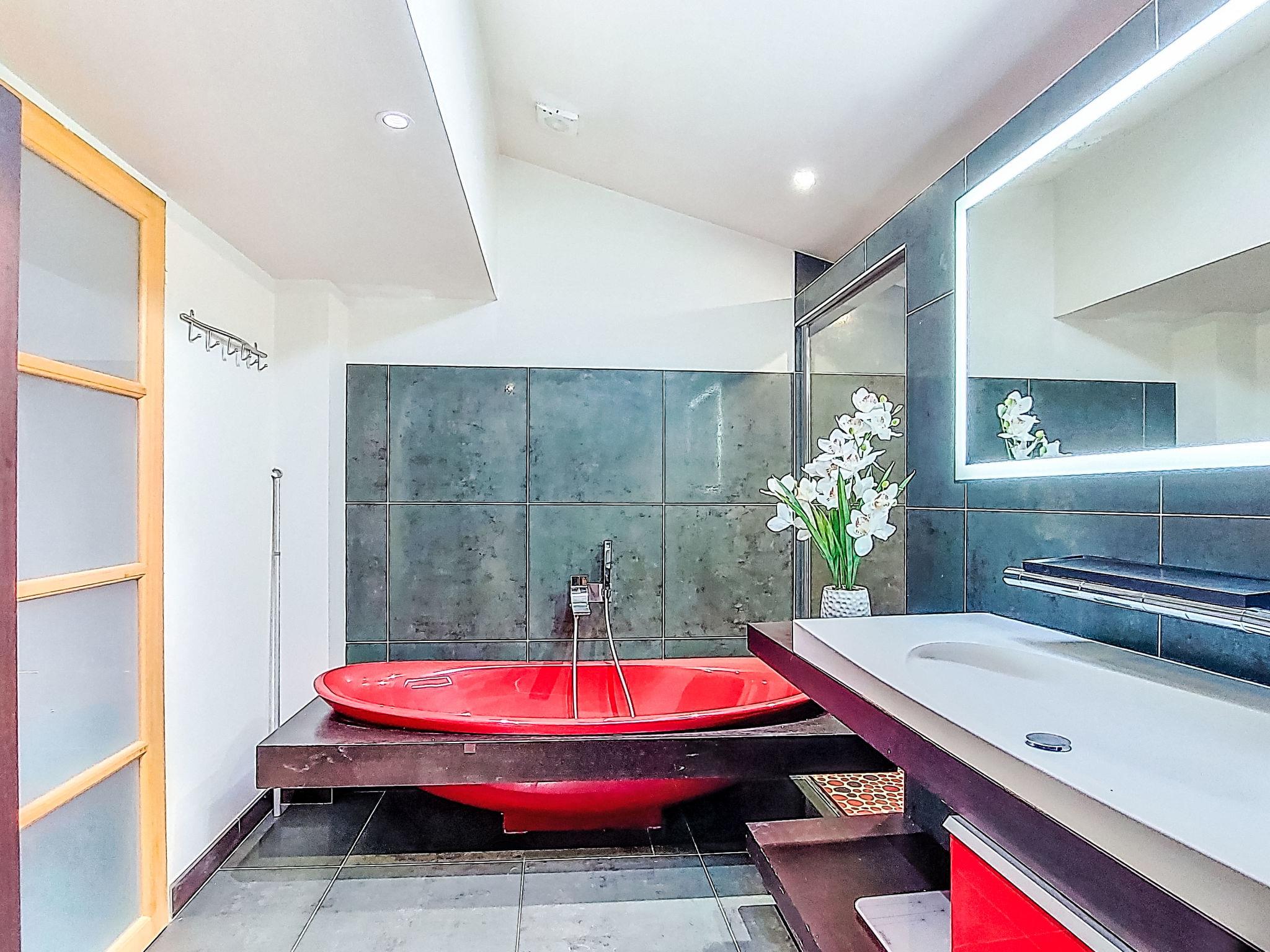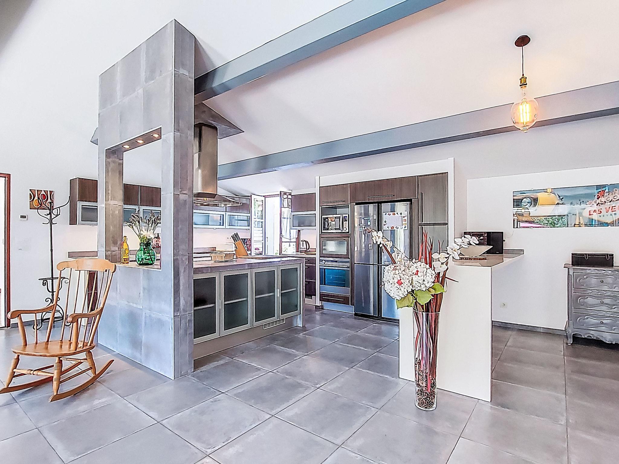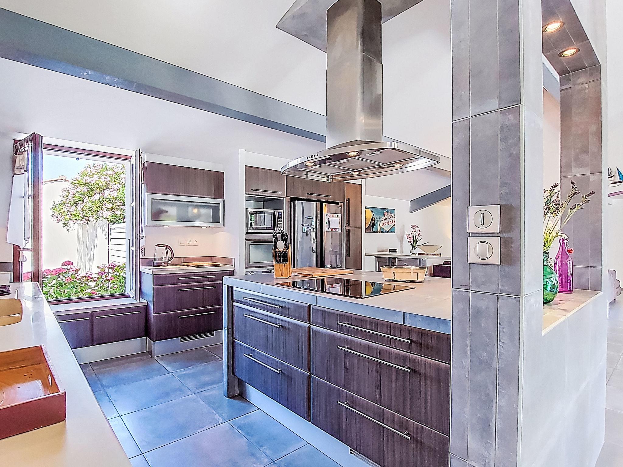6-room villa 250 m2. Spacious, comfortable and modern furnishings: living/dining room with TV (flat screen). Exit to the garden, to the terrace, to the swimming pool. 1 room with Dressing room with 1 french bed (1 x 160 cm, length 200 cm). Exit to the terrace. 1 room with 1 french bed (1 x 140 cm, length 190 cm). Exit to the terrace. Large, open kitchen (oven, dishwasher, 4 ceramic glass hob hotplates, toaster, kettle, microwave, electric coffee machine, cooking island). Bath/shower, sep. WC. Electric heating. Upper floor: (exterior staircase) living/sleeping room with 1 french bed (1 x 120 cm, length 190 cm). 1 room with sloping ceilings with 1 bed (90 cm, length 190 cm), 1 french bed (1 x 140 cm, length 190 cm), shower/WC. Electric heating. Large terrace. Terrace furniture, barbecue, deck chairs (6), conservatory. Facilities: washing machine, iron, baby cot, hair dryer. Internet (WiFi, free). Garage, height 190 cm. Please note: non-smoking house. Maximum 1 pet/ dog allowed. Smoke alarm. Offer by a private individual according to Art. 155, IV of CGI. 17140000631E9