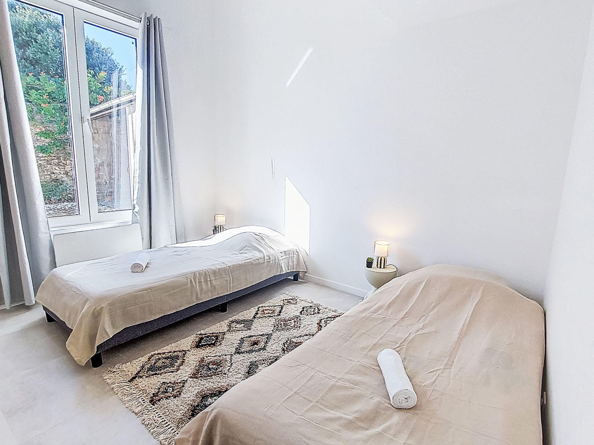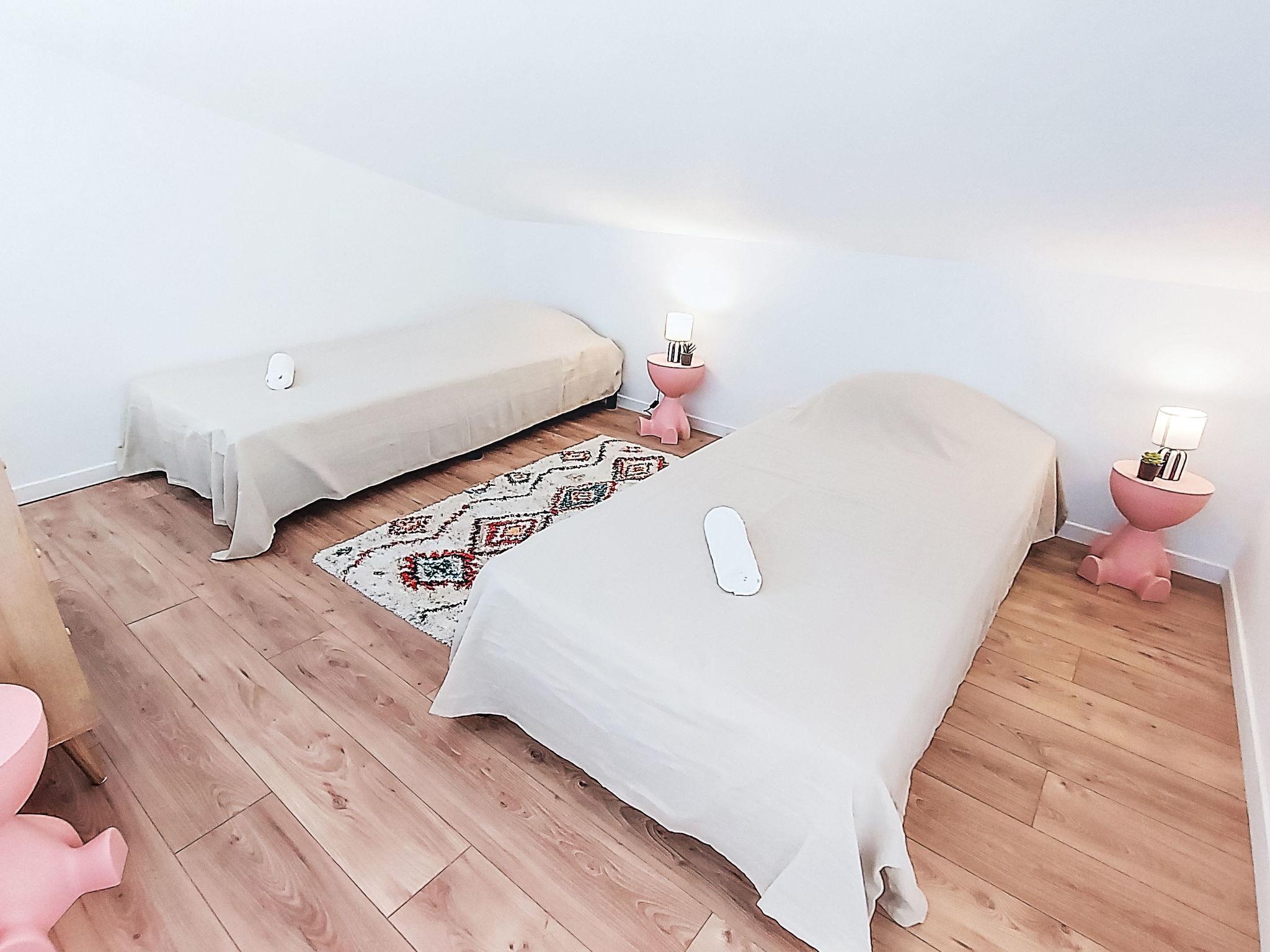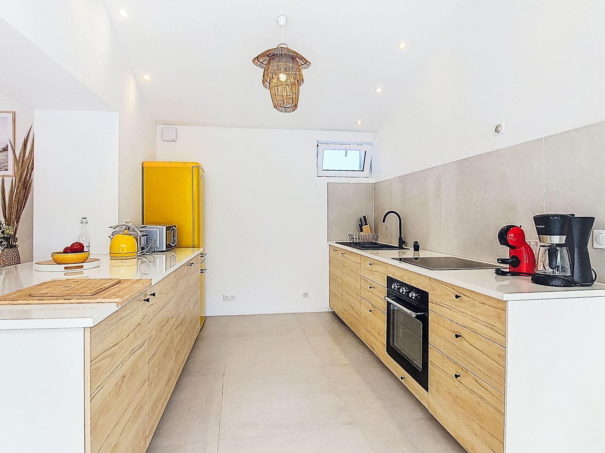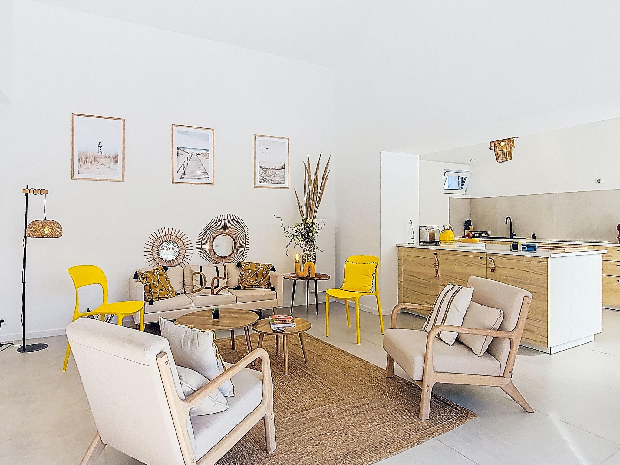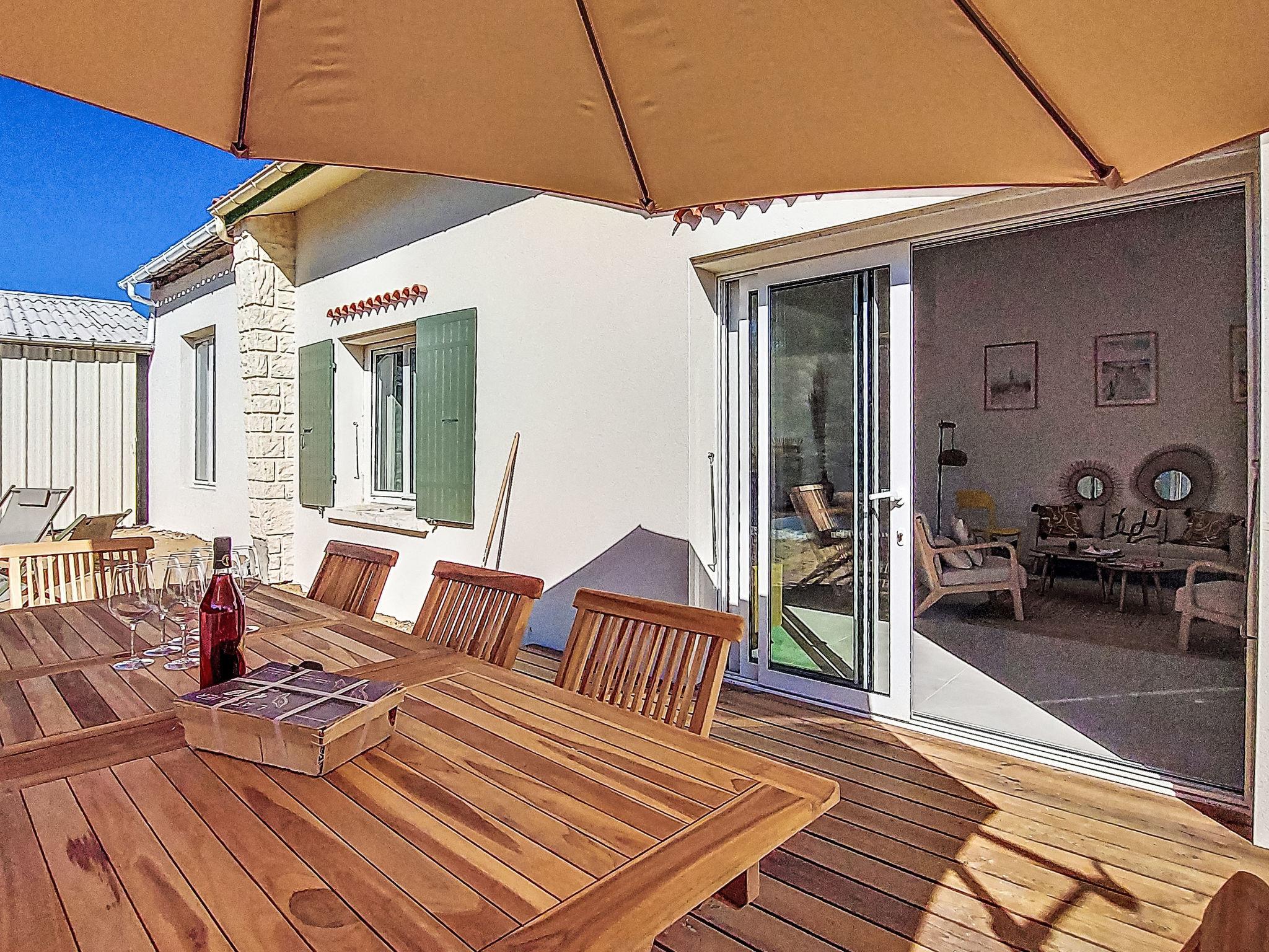 "Les Sables", 4-room house 110 m2. Spacious and bright, comfortable and modern furnishings: large living/dining room with TV (flat screen). Exit to the terrace. 1 room with 1 french bed (1 x 160 cm, length 200 cm). 1 room with 1 french bed (1 x 160 cm, length 200 cm). 1 children's room with sloping ceilings with 4 beds (90 cm, length 200 cm). Large, open kitchen (oven, dishwasher, 4 induction hot plates, toaster, kettle, microwave, electric coffee machine). 2 bathrooms, sep. WC. Electric heating. Terrace 20 m2. Terrace furniture, barbecue, deck chairs. Facilities: iron, hair dryer. Internet (WiFi, free). Parking (1 car). Please note: non-smoking house. Smoke alarm. Offer by a private individual according to Art. 155, IV of CGI. 173370005735B