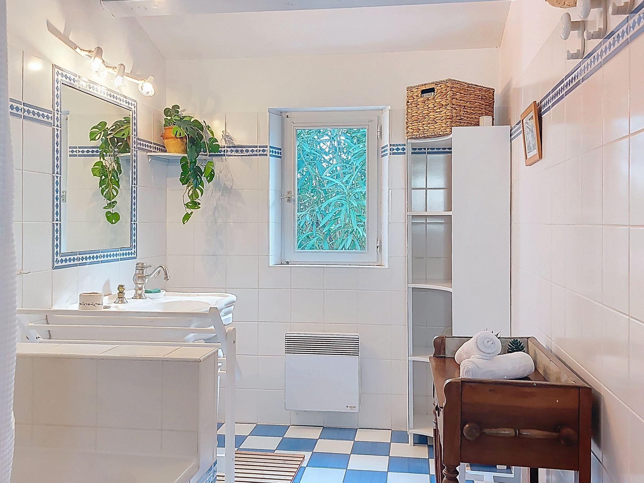 "Le Château 3", 4-room house 140 m2. Comfortable and beautiful furnishings: living/dining room with TV (flat screen). Exit to the garden, to the terrace. 1 room with 1 french bed (1 x 160 cm, length 200 cm). 1 room with 2 beds (90 cm, length 200 cm). 1 room with 2 beds (80 cm, length 190 cm), separate WC and shower. Open kitchen (dishwasher, 3 ceramic glass hob hotplates, toaster, kettle, microwave, electric coffee machine). Bath/shower, sep. WC. Electric heating. Large terrace, large garden 600 m2. Terrace furniture, barbecue. Facilities: washing machine, iron, children's high chair, hair dryer. Internet (WiFi, free). Parking at the house. Please note: suitable for families. Non-smoking house. Smoke alarm. Offer by a private individual according to Art. 155, IV of CGI. 17093000455BO