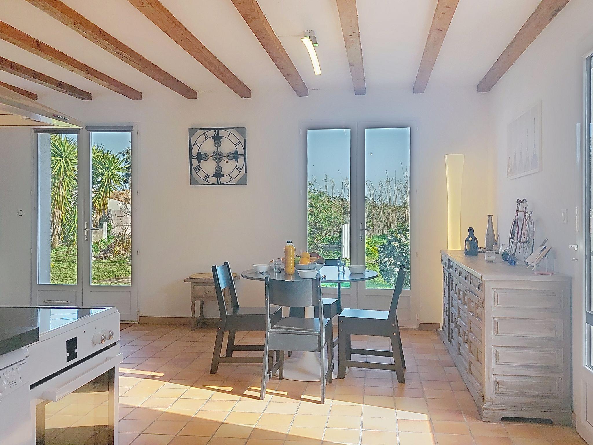 Beautiful single-family house "La Bétaudière". In the resort 2 km from the centre of Saint Denis d'Oléron, in a quiet position, 1.5 km from the sea, 1.5 km from the beach. Private: large garden (fenced), parking at the house. Shop 2 km, grocery 2 km, supermarket 11 km, restaurant 2 km, bar 2 km, bakery 2 km, café 2 km, pedestrian zone 2 km, bicycle rental 2 km, bus stop "Cheray D734" 6 km, railway station "Rochefort sur Mer" 56 km, sandy beach "Les Huttes" 1.5 km. Sports harbour 2.6 km, golf course (9 hole) 18 km, surf school 1.5 km, sailing school 2.6 km. Nearby attractions: Centre aquatique Iléo 18 km, Phare de Chassiron 5 km, Port de la Cotinière 15 km, Corderie Royale Rochefort 56 km, La Rochelle 86 km.
