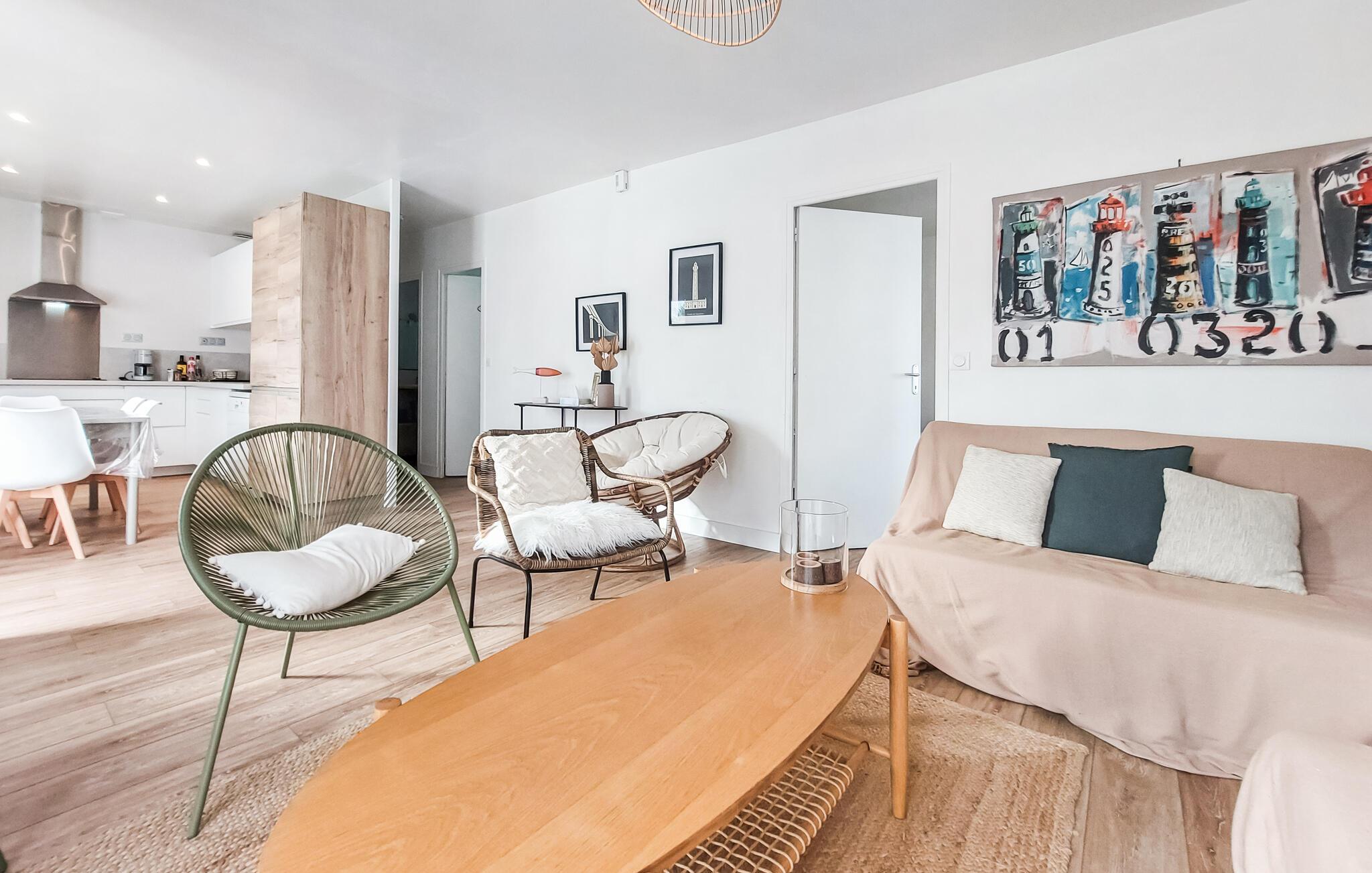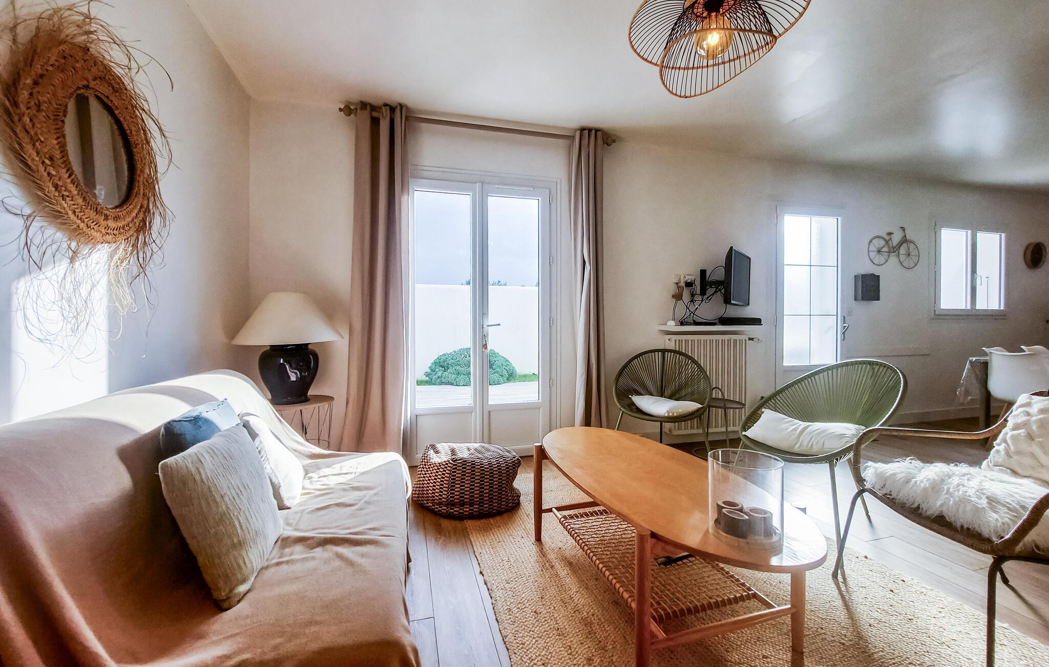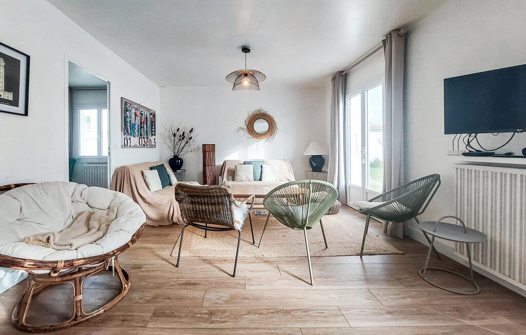 Velkommen til de hyggelige værelser i dette lyse og moderne hus, som byder sine gæster velkommen på en smuk beliggenhed i den nordlige del af Ile de Ré i umiddelbar nærhed af den smukke sandstrand. Anlægget med indbydende farver og smagfulde møbler gør feriehuset til et behageligt opholdssted. Nyd måltider sammen i spisekøkkenet og hyggelige aftener i det komfortable opholdsområde i stuen. Træd ud på terrassen, sæt jer ned i en loungestol og slap af i solen. Senere kan I grille sammen og slutte dagen af med et lækkert måltid under åben himmel.