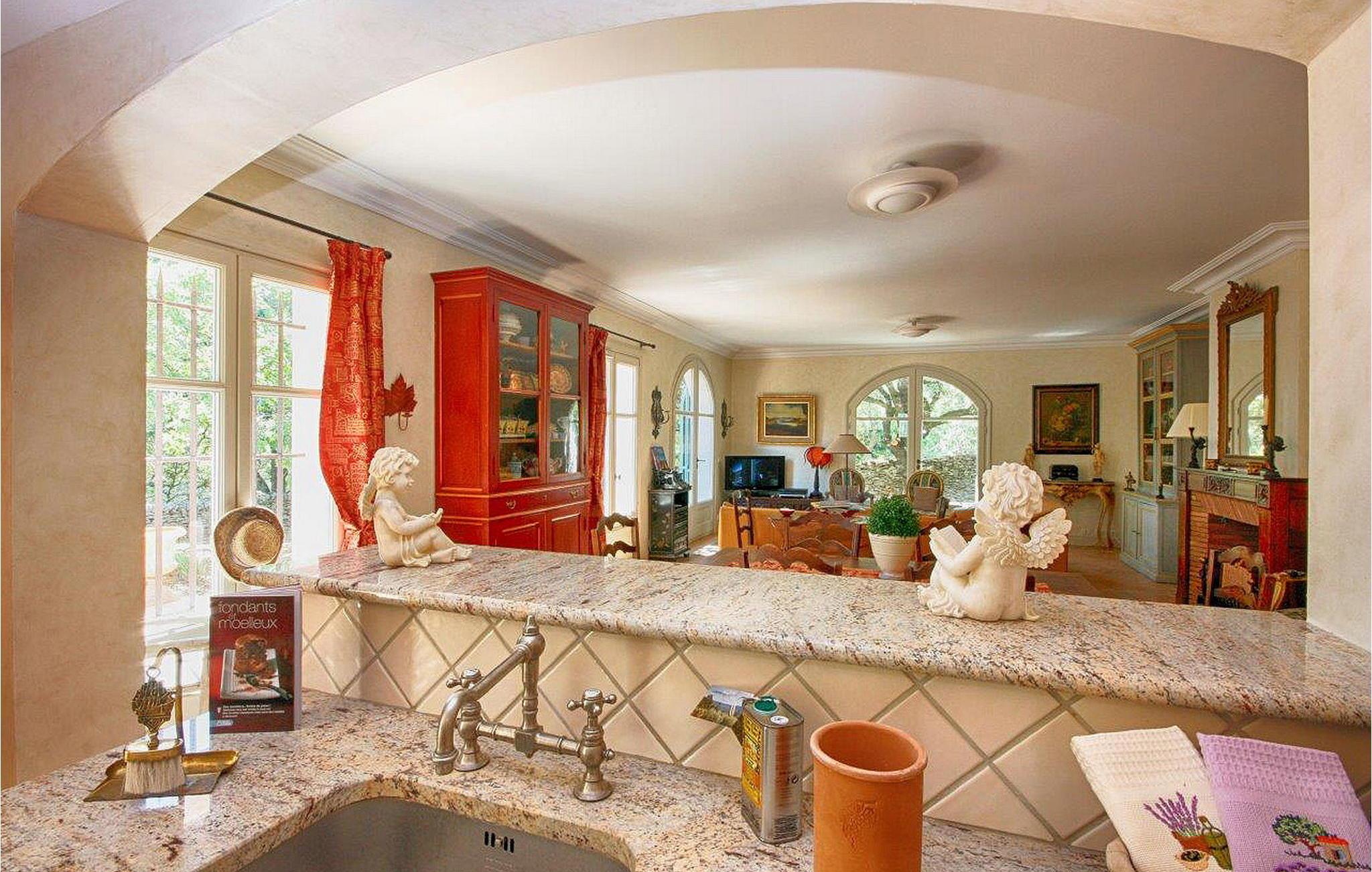Omgivet af naturlig skønhed med ege, fyrretræer og oliventræer tilbyder denne ejendom i bakkerne i Saint Antoine ro kun 3 km fra nærliggende butikker. Villaen og en separat 'mazet' udgør ejendommen. Villaen har aircondition og tilbyder rummelig stueetage med åbent køkken, spiseplads og en. Ovenpå er der yderligere tre soveværelser og et brusebad. Den uafhængige 'Mazet' har aircondition, køkken, spise-/opholdsstue og brusebad. Ovenpå på mezzaninen er soveværelset. Udendørs omfatter grunden en overdækket terrasse, der støder op til villaen og en anden terrasse. Den private opvarmede pool (12 m X 5 m, dybde 1,2 m til 1,9 m). Ejendommen er beliggende i bakkerne i Saint Antoine i Isle-sur-la Sorgue. De nærmeste butikker ligger ca. 3 km væk. Miljøet er meget stille. Du kan nemt tage på vandre- eller cykelture i bakkerne. Isle-sur-la-Sorgue, også kaldet "Provencalsk Venedig" med de forskellige floder, der krydser landsbyen, også berømt for sine antikviteter og det provencalske marked om søndagen. I nærheden kan du udforske landsbyen Fontaine de Vaucluse, Luberon-bjergene med sine charmerende og maleriske landsbyer: Gordes, Roussillon, Bonnieux, Lacoste.
