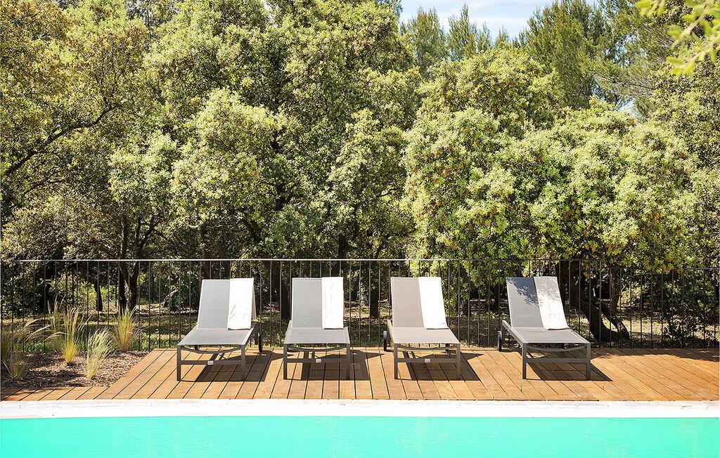 Beliggende i et roligt boligområde i den smukke region Isle sur la Sorgue, venter denne komfortable ferievilla på dit ophold. Denne rummelige villa tilbyder et moderne interiør og en stor swimmingpool, hvilket skaber en afslappende og behagelig ferieoplevelse. Når du træder ind, byder en indbydende indgang dig velkommen. Den generøse store stue med aircondition giver rigelig plads til afslapning. Det åbne køkken byder på en dejlig plads med nem adgang til den store, overdækkede terrasse, ideel til udendørs spisning. I stueetagen består villaen af tre charmerende soveværelser. Hvert soveværelse har franske vinduer, der giver adgang til enten den overdækkede terrasse eller haven/poolområdet. Derudover venter et selvstændigt studie på første sal, fuldt airconditioneret og byder på tekøkken, stue, soveværelse, brusebad og en privat terrasse. Udendørs kan du nyde afslapning og underholdning med forskellige faciliteter, herunder en overdækket terrasse, en lysthus med spisebord, en generøs størrelse indhegnet pool omgivet af naturlige sol- og skyggeområder, en petanquebane, et bordtennisbord og en velholdt have med middelhavsflora. Beliggende midt i Isle sur la Sorgues stilhed inviterer denne villa dig til en mindeværdig og afslappende ferieoplevelse. Huset ligger i et fredeligt boligområde 3 km fra centrum af Isle sur la Sorgue, i et meget roligt og grønt miljø. De nærmeste butikker (bageri og supermarked) er 2 km.