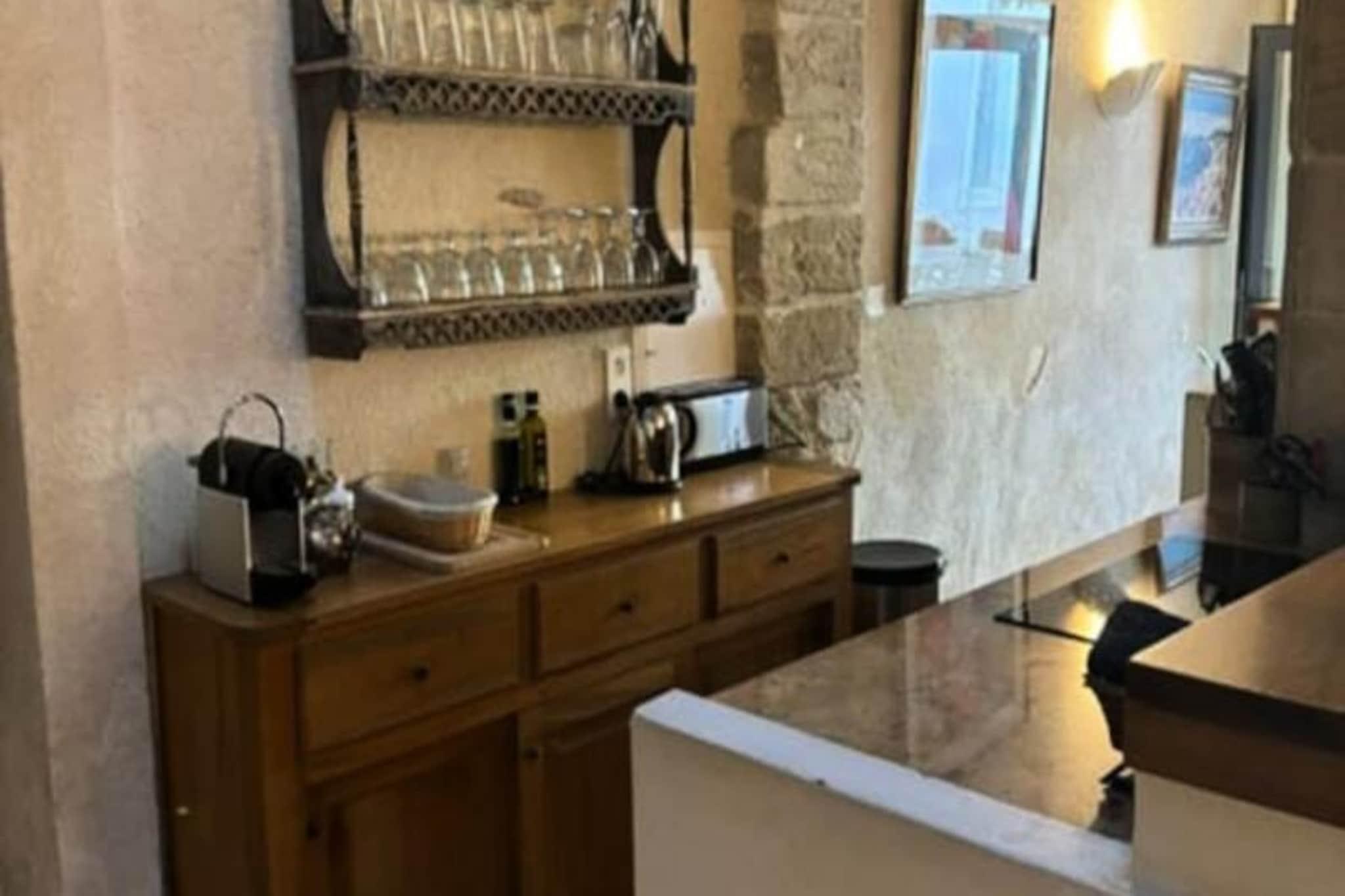 Dette charmerende feriehus er ideelt for op til 4 gæster, og byder på et hyggeligt soveværelse med en komfortabel 160 cm dobbeltseng og en sovesofa i opholdsstuen. Ejendommen er kæledyrsvenlig, så du kan tage dine lodne ledsagere med til dit ophold. Lejligheden er beliggende på første sal og tilbyder et fredeligt oase med aircondition for komfort. Hjemmet omfatter også væsentlige faciliteter såsom et fladskærms-tv, en vaskemaskine og gratis Wi-Fi for at sikre et afslappet og bekvemt ophold. Ejendommen er perfekt beliggende kun 500 meter fra den pulserende bymidte, hvor du kan udforske lokale markeder, caféer og restauranter. En 10-minutters gåtur tager dig til den naturskønne flodbred, perfekt til en fredelig spadseretur eller cykeltur. Området er rigt på kulturarv, og nærliggende attraktioner omfatter historiske steder, kunstgallerier og den maleriske gamle bydel. For naturelskere byder den nærliggende park på rolige grønne områder og smukke vandrestier. Lejligheden er veludstyret med et fuldt funktionelt køkken med mikroovn, komfur, køleskab og kaffemaskine, perfekt til at tilberede måltider. Det moderne badeværelse har bruser og alle nødvendige toiletartikler. Nyd dine måltider ved spisebordet, eller træd udenfor på den private balkon med havemøbler til en afslappende aften i den friske luft.
