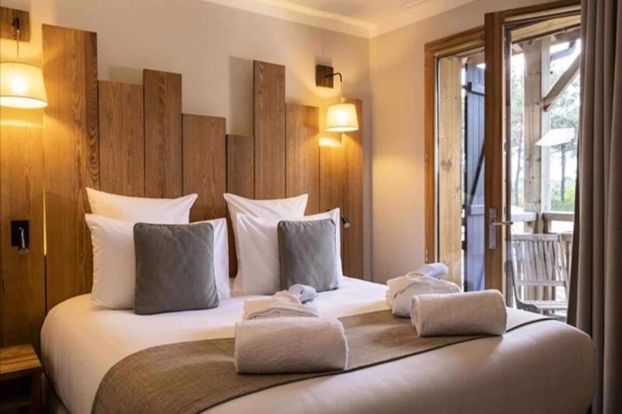 Velkommen til det prestigefyldte Domaine de Ferret, et oase af fred beliggende i hjertet af en fyrreskov. Dette unikke sted giver dig mulighed for at flygte fra den daglige travlhed og nyde en oplevelse af velvære og ro. Domaine har en komplet spa med to opvarmede pools, jacuzzi, sauna, hammam samt 16 behandlingshytter til at slappe af. På Domaine de Ferret kan du opdage restauranten Le Cabanon, hvor velsmagende retter fremhæver årstidens produkter. Terrassen byder på panoramaudsigt over fyrreskoven. Domaine de Ferret ligger på den næsten ø Lège-Cap Ferret og tilbyder dig de ideelle rammer for dit ophold med mange aktiviteter i nærheden: golf, eventyrbaner i trætop, vandsport, ridning... Ophold Udstyret køkken Soveværelse med dobbeltseng eller 2 enkeltsenge Soveværelse med dobbeltseng Separat brusebad og toilet Terrasse Husdyr tilladt - ekstra - se pris og regler på stedet Slutrengøringspakke - inkluderet Babysæt - kan lånes ved reservation (høj stol, bad og barneseng) Sengetøj - inkluderet Håndklæder - inkluderet Daglig rengøring - inkluderet - hver 3. dag Swimmingpool - udendørs - uopvarmet Opvarmet swimmingpool - indendørs og udendørs pools i spa-området Sauna - åben fra 10.00 til 18.00. Turistskat (ekstra gebyr) - betales på stedet i henhold til gældende takst Fjernsyn - inkluderet
