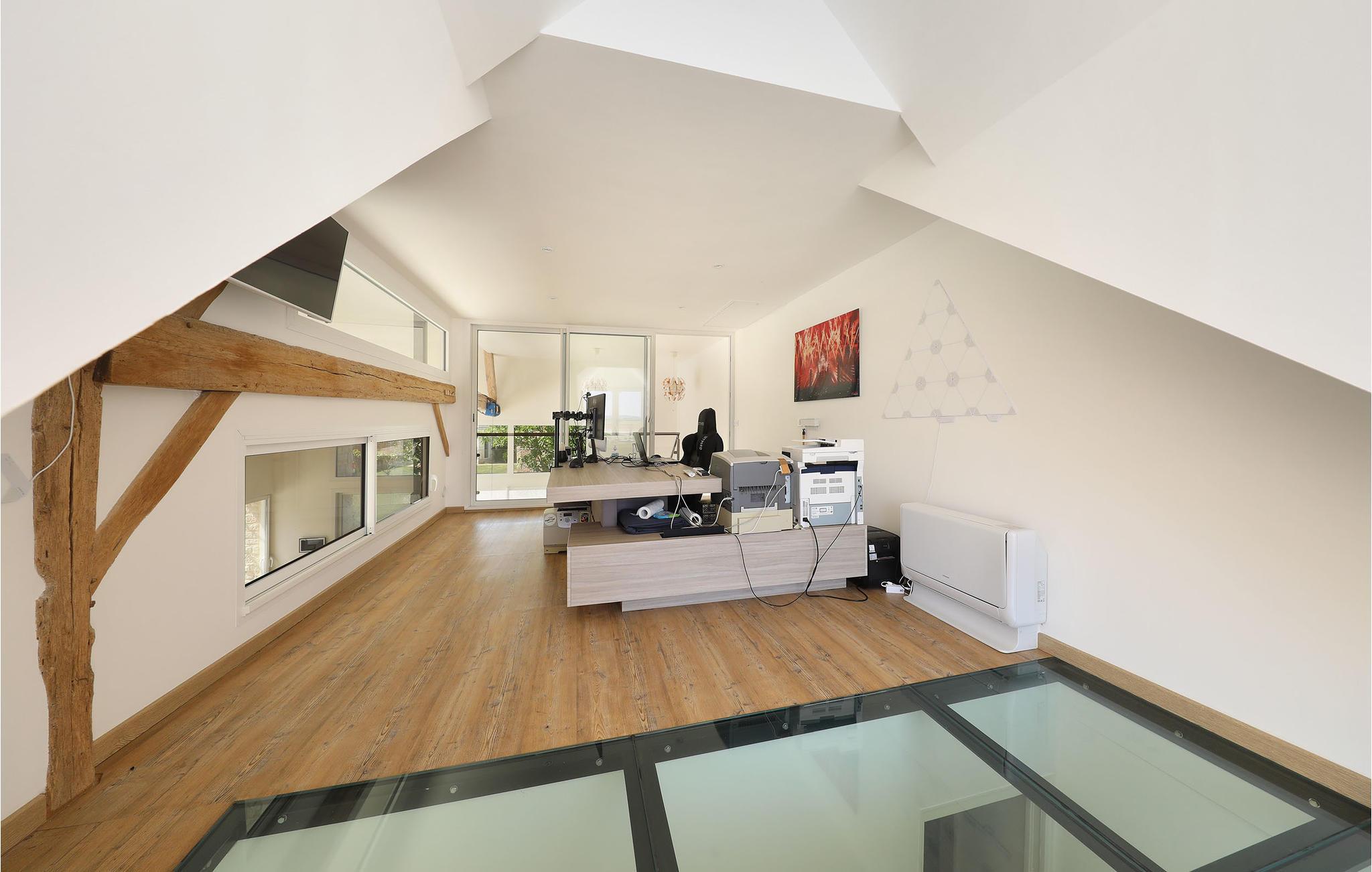 Føl jer hjemme med jeres udvidede familie, medfamilier eller venner. Det moderne hus tilbyder jer atmosfæren af ??en stor hems og forbinder flere niveauer. Her kan I slappe af og hygge jer i den private badeplads efter et lækkert måltid, som I har fremtryllet i køkkenet. En opvarmet indendørs pool, et spabad og en sauna inviterer jer til at nyde jeres private wellness-program og slappe af på samme tid. I kan bruge aftenen på at spille spil eller se film og starte den næste dag afslappet.
