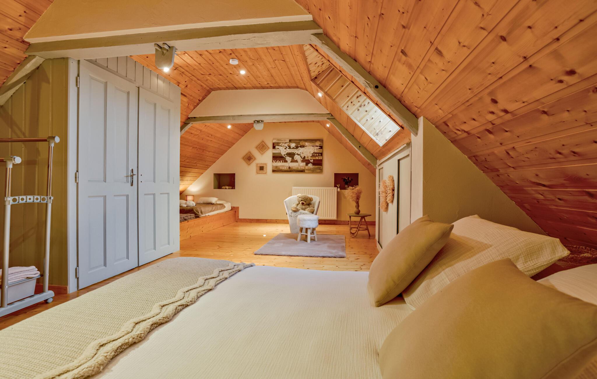 Årets bedste uger venter for den store familie i denne villa, der ligger midt i det idylliske landskab i det nordligste Frankrig og byder på masser af komfort for unge og ældre. Indretningen er virkelig charmerende og flot med masser af træpaneler, loftsbjælker og fritlagte stenværk, der giver huset et rustikt og historisk strejf. Sammen med de moderne faciliteter og gode møbler er det en helt magisk base, hvor I kan hvile benene sammen efter dagens muntre leg. Tilbered familiens livretter og dæk op til den store festmiddag ved spisebordet og skyl maden ned med et godt glas vin. Senere kan I finde jer godt til rette i sofaen eller hive brætspillene frem og hygge jer til den helt store guldmedalje.