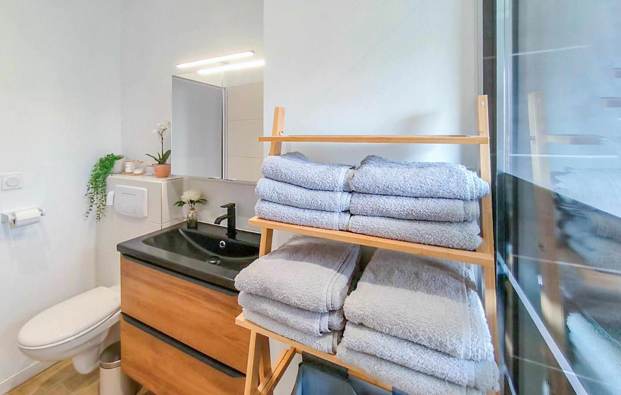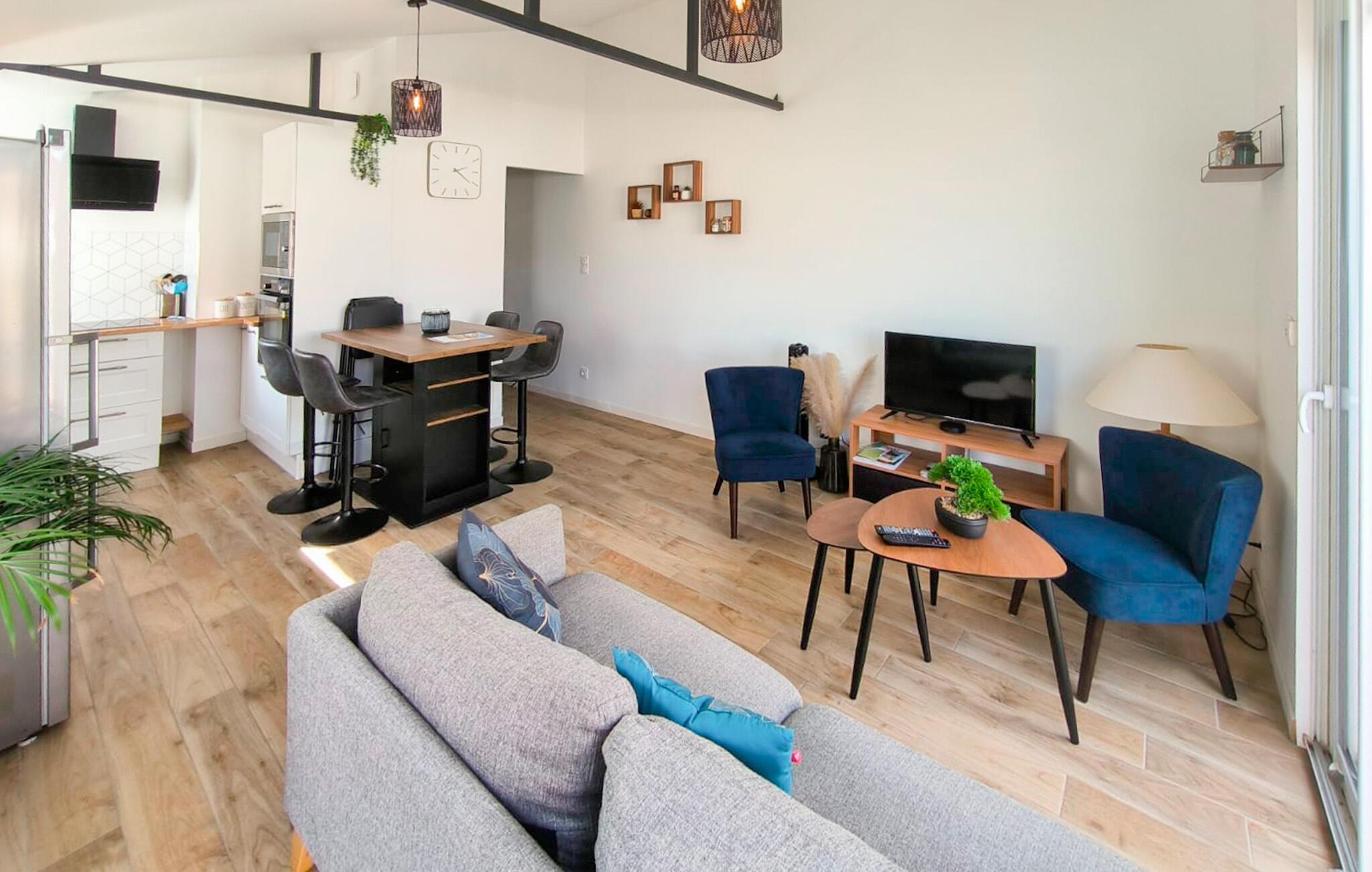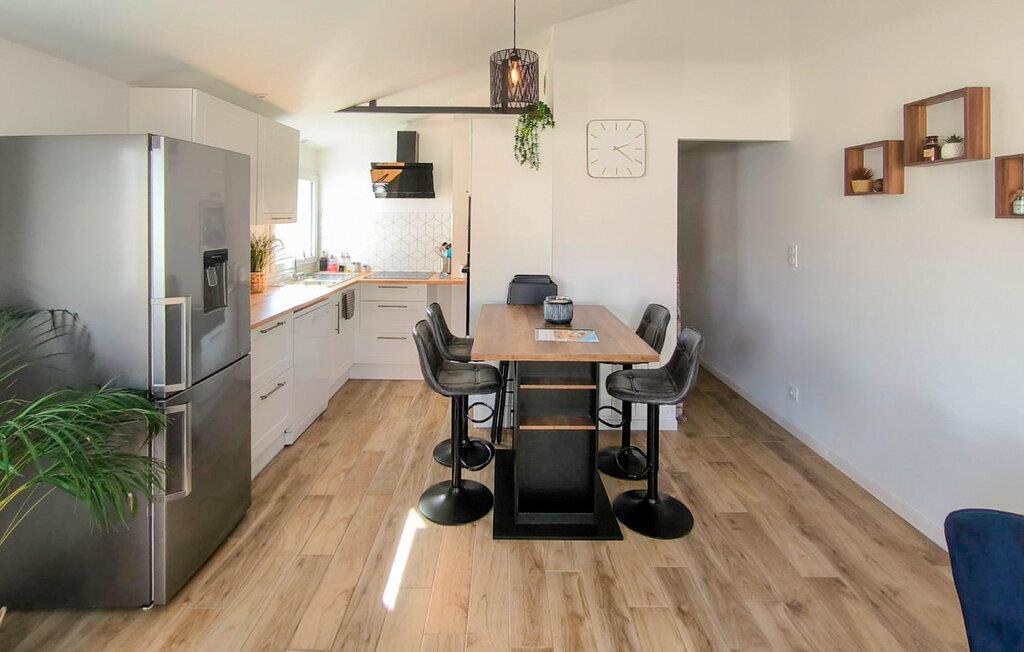 Dette stilfulde feriehus i L'Aiguillon la Presqu'île er den perfekte tilflugtssted. Den lyse, moderne indretning og det åbne rumkoncept skaber en behagelig atmosfære, hvor I straks vil føle jer hjemme. Fra soveværelset har I direkte adgang til den rummelige terrasse – ideel til morgenmad i solens første stråler eller afslappende aftener under åben himmel. Det afskærmede udendørsområde sikrer uforstyrrede stunder og indbyder til at afslutte dagen i ro og mag.