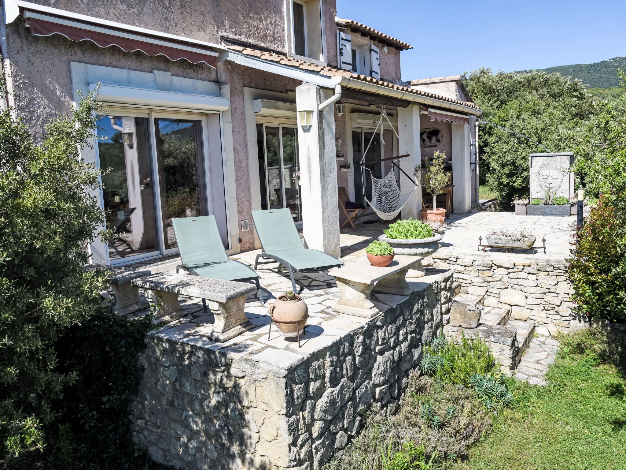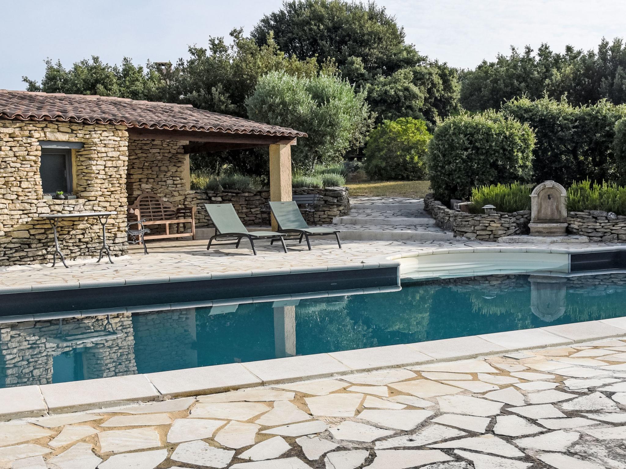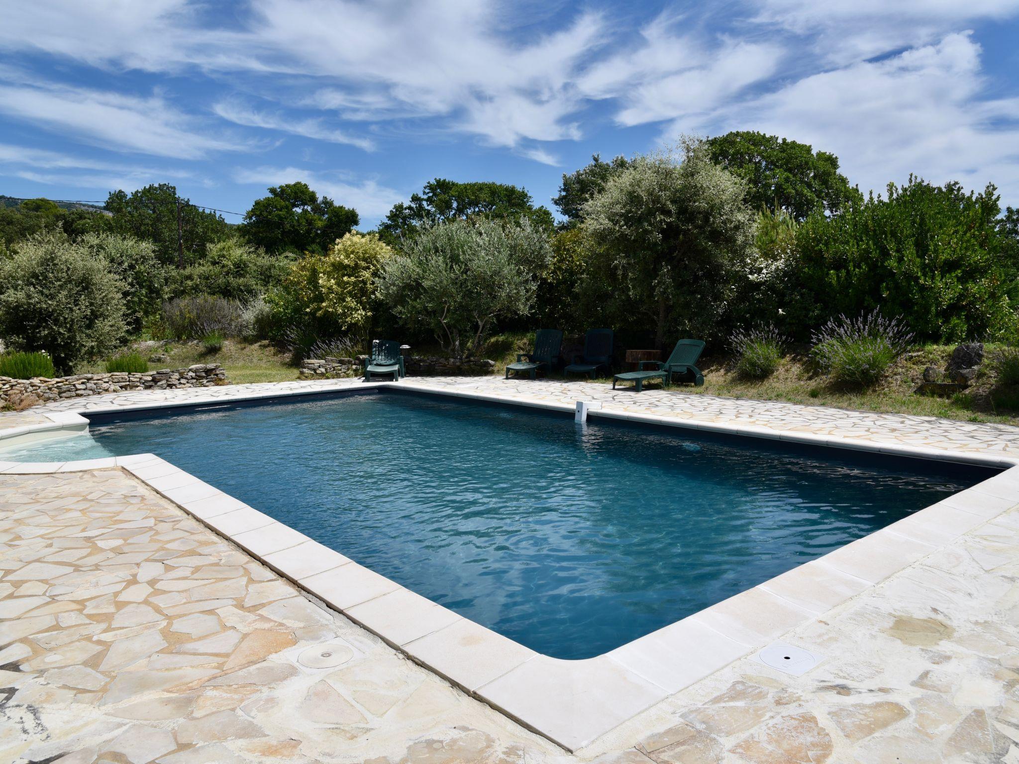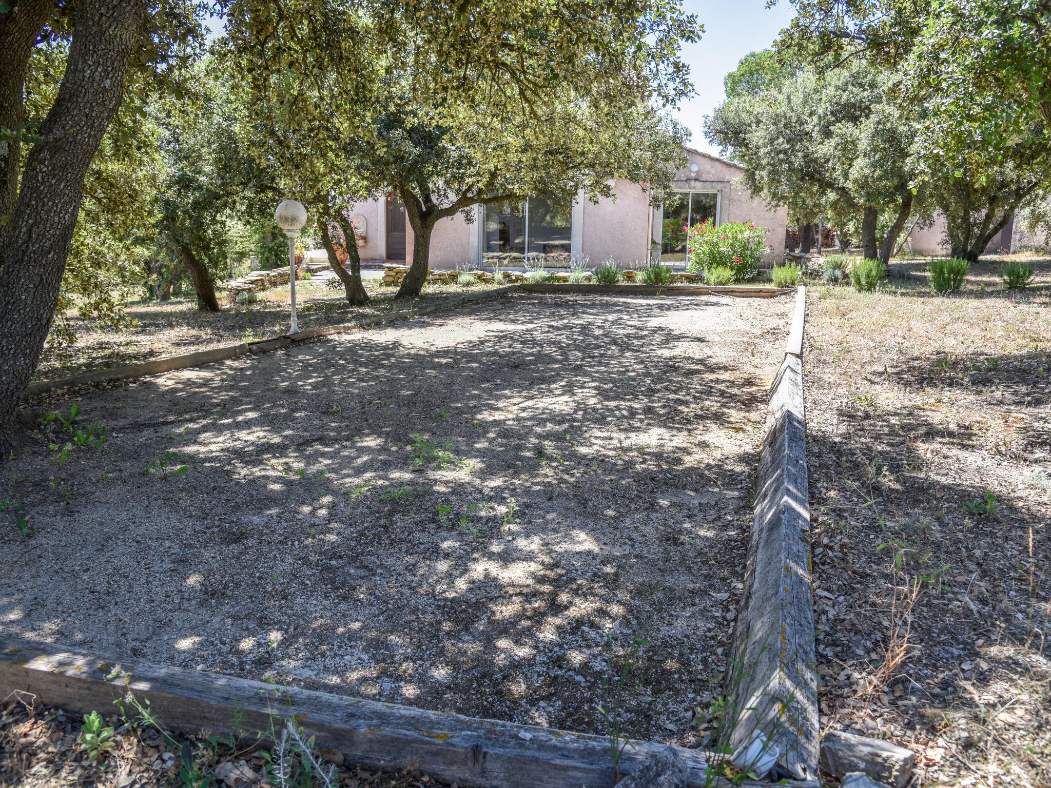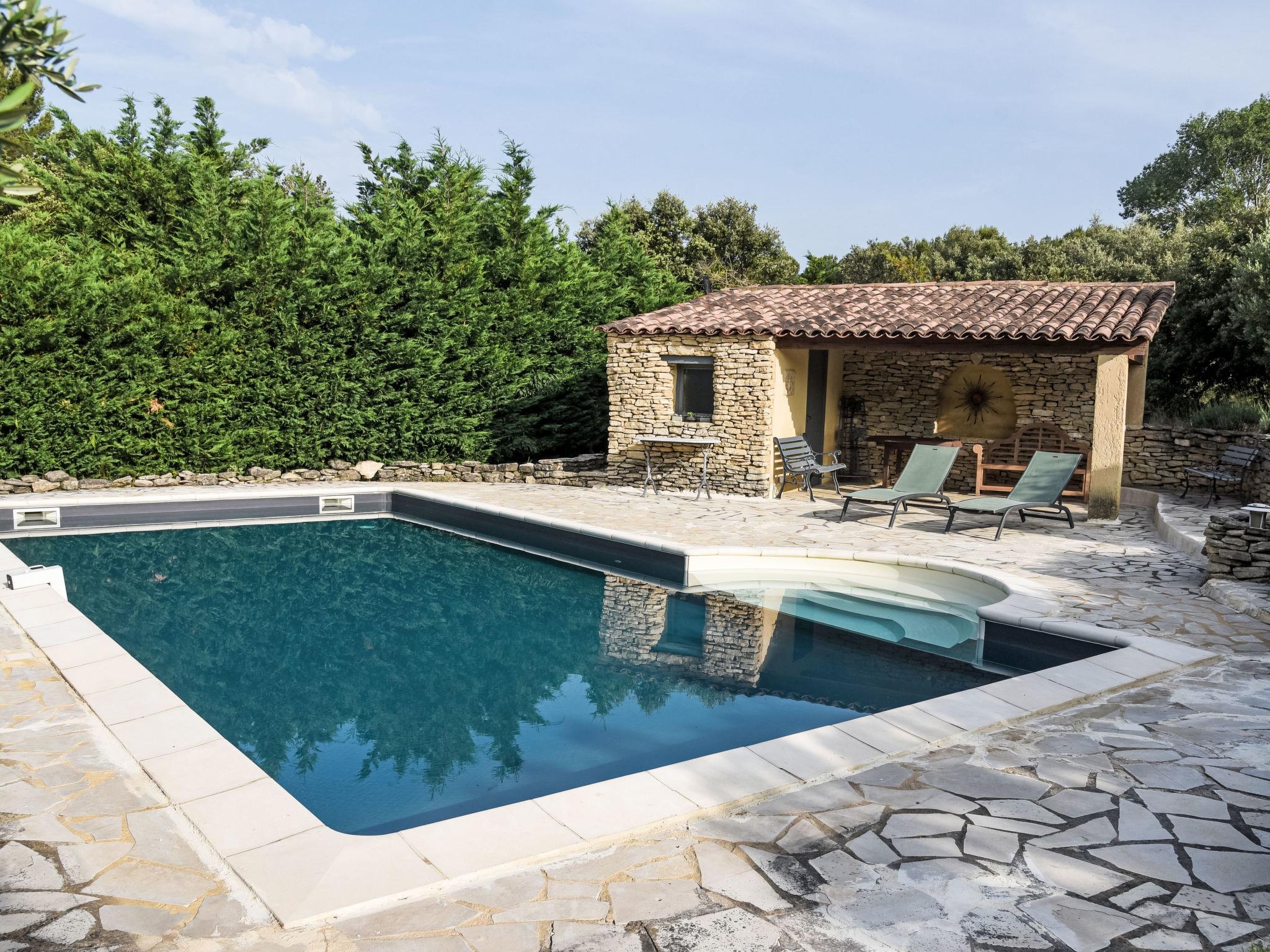 Villa "La Chênaie". On the outskirts, 2 km from the centre of Saumane de Vaucluse, in a secluded, quiet, sunny position. Private: property 5'000 m2 (fenced), well-kept garden, swimming pool with privacy (10 x 5 m, depth 80 - 160 cm, seasonal availability: 28.May. - 25.Sep.) with alarm system. Pool house with shower, boules, terrace (30 m2), garden furniture, roofed, parking (for 2 cars) on the premises. Shop 2 km, supermarket 4.5 km, restaurant 750 m, bakery 3.2 km, café 2 km, bicycle rental 5.2 km, bus stop "Cours Fernande Peyre" 3.7 km, railway station "L'Isle-sur-Sorgue" 5.4 km, sandy beach "Plage de Merveille" 64 km, bathing lake "Plan d'eau des Salettes" 25 km. Sports harbour 32 km, golf course (18 hole) 300 m, tennis 5 km, riding stable 2.9 km, children's playground 2 km. Nearby attractions: Provence Country Club 300 m, Fontaine de Vaucluse 4 km, L'Isle sur la Sorgue 5 km, Gordes 18 km, Roussillon 25 km, Saint Rémy de Provence 31 m. Hiking paths: Massif du Luberon 11 km, Massif des Alpilles 22 km, Mont Ventoux 26 km. Residence with electric gates.
