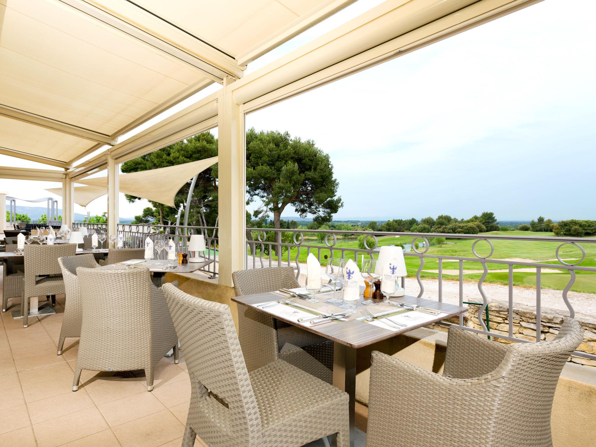 Saumane 3 km from L'Isle-sur-la-Sorgue: Large, beautiful, cosy resort "Provence Country Club". 131 apartments in the residence. In the hamlet Saumane 3 km from the centre of L'Isle-sur-la-Sorgue, 18 km from the centre of Carpentras, 32 km from the centre of Avignon, in the countryside, on the golf course. For shared use: property with lawn and trees, natural garden, meadow, swimming pool (20 x 10 m, seasonal availability: 16.May. - 10.Oct.). Unconventional pool shape. Children's pool, tennis, terrace. In the complex: reception, WiFi, fitness room, washing machine, tumble dryer (for shared use, extra). Bread roll service. Parking on the premises. Supermarket 5 km. Golf course (18 hole) 50 m. Please note: the photograph shows a typical example. The holiday properties may differ in living space, floorplan, equipment and furnishing. Wi-fi only at the reception.