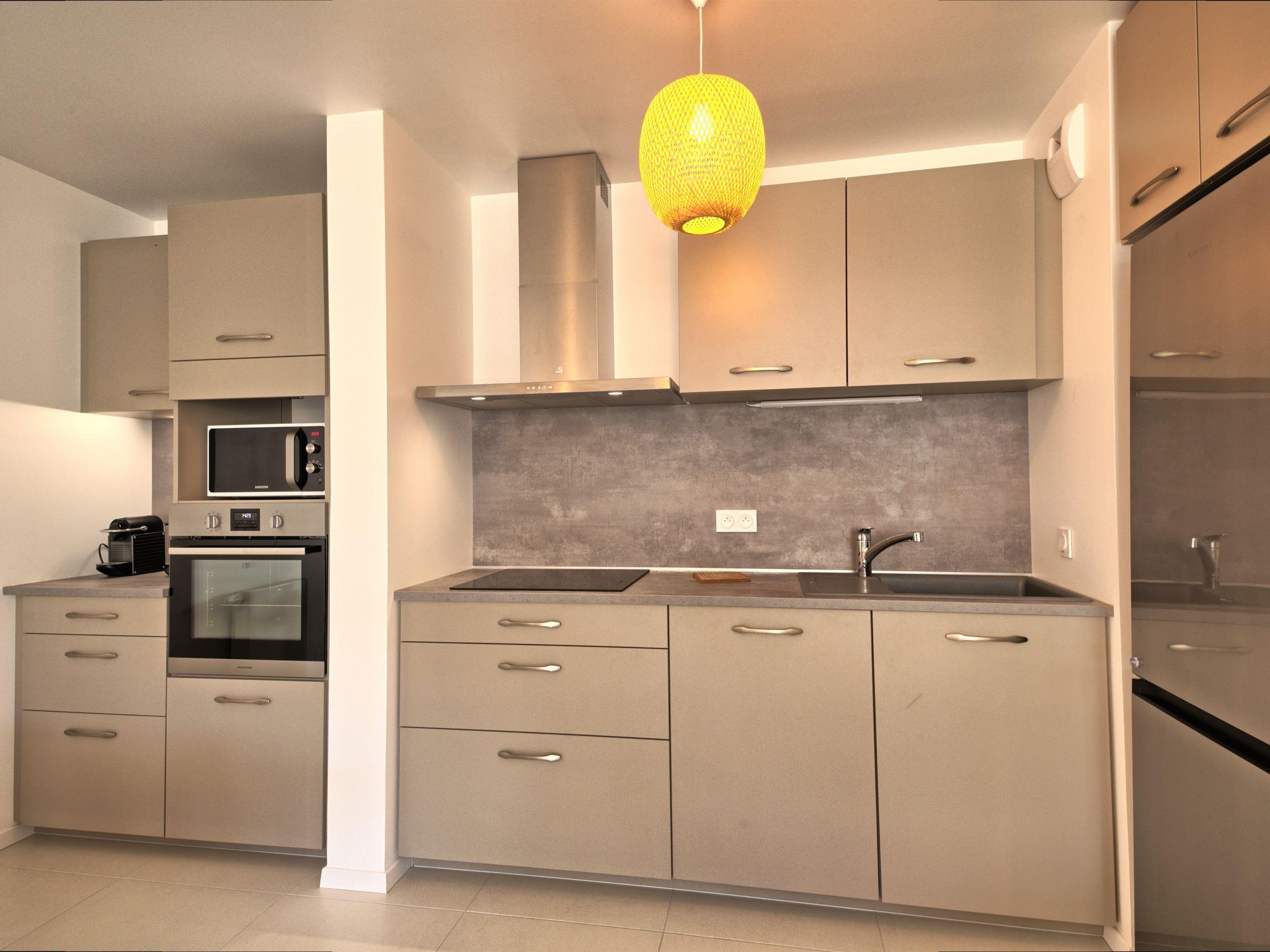 3-room apartment 60 m2 on 1st floor. Very beautiful furnishings: living/dining room with TV (flat screen). 1 room with 1 french bed (160 cm, length 200 cm). 1 room with 2 beds (90 cm, length 190 cm). Open kitchen (oven, dishwasher, 4 ceramic glass hob hotplates, toaster, kettle, microwave, freezer, electric coffee machine, Capsules for coffee machine (NESPRESSO) extra). Shower, sep. WC. Gas heating. Terrace 8 m2, roofed, south facing position. Terrace furniture. Facilities: washing machine, dryer, iron, baby cot. Internet (WiFi, free). Please note: non-smokers only. Smoke alarm. Offer by a private individual according to Art. 155, IV of CGI. 4405500322949