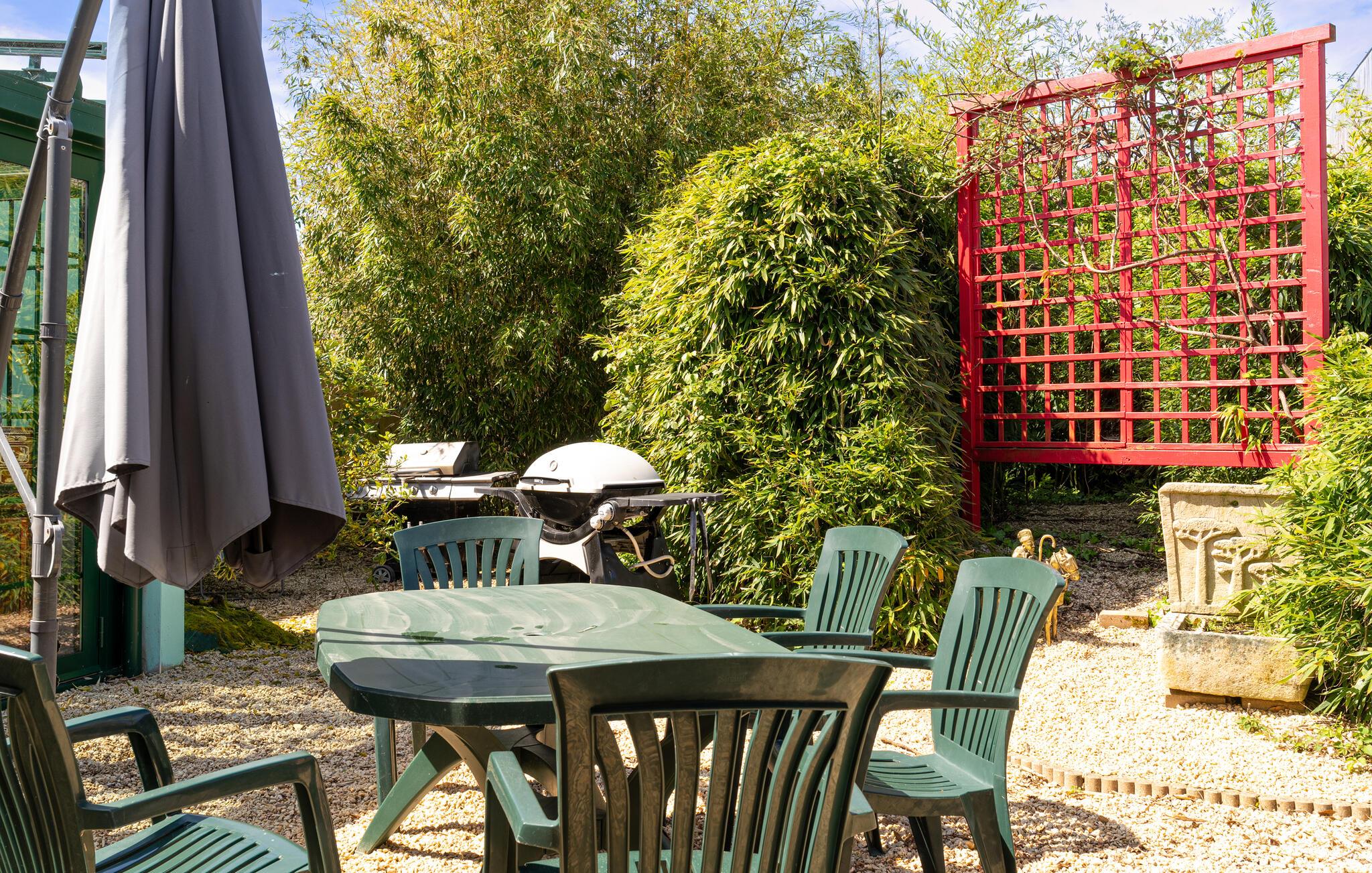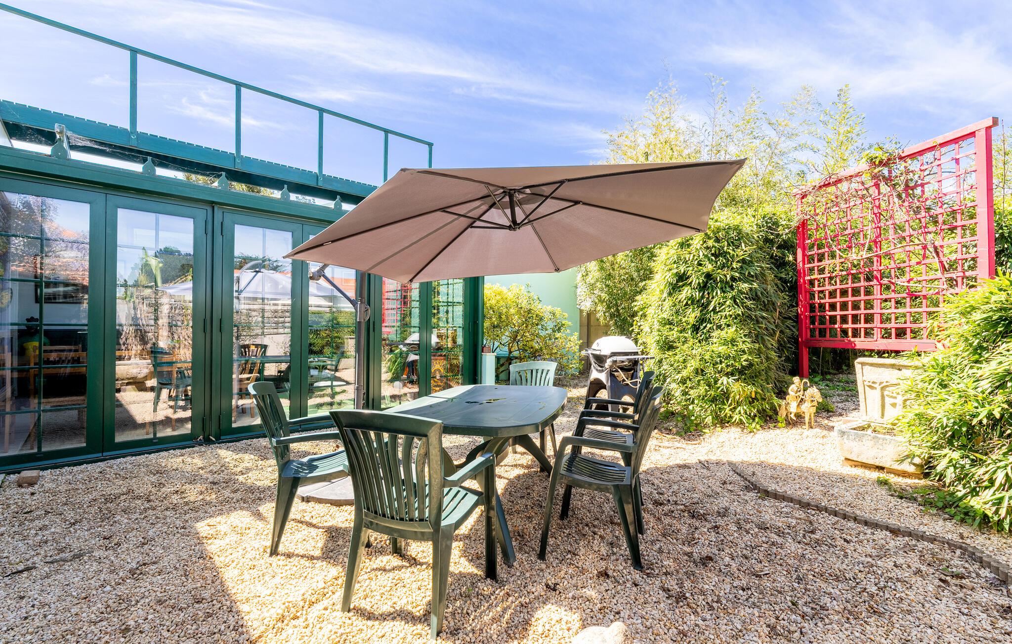 Til huset hører en lukket, privat have med blomstrende træer og bambus, hvor I kan finde sol, skygge og læ efter behov og bare nyde roen.
