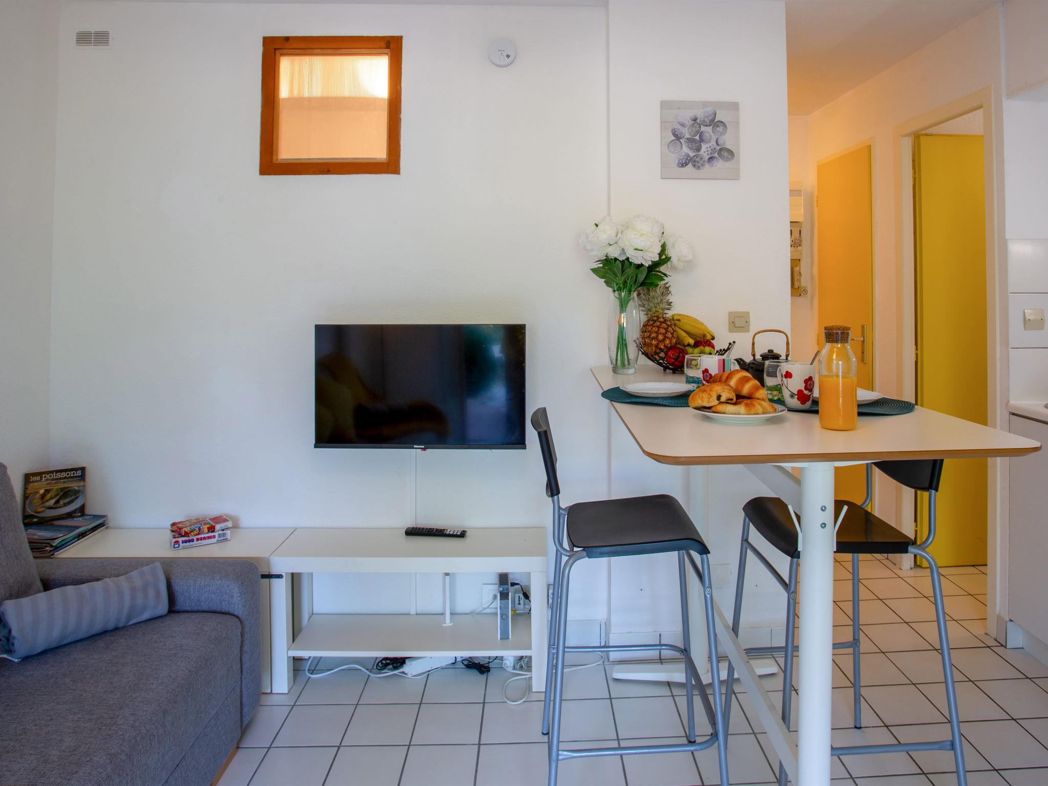 "Port Saint-Jacques", 2-room apartment 28 m2, west facing position. Simple furnishings: living room with TV (flat screen). Exit to the patio, south facing position and west facing position. 1 room with 1 french bed (1 x 140 cm, length 200 cm). Entrance hall with 1 x 2 bunk beds (80 cm, length 190 cm). Small kitchen-/living room (mini-oven, oven, 2 induction hot plates, toaster, kettle) with dining table. Shower, sep. WC. Electric heating. Patio 60 m2, south facing position and west facing position. Terrace furniture. Facilities: washing machine, iron, hair dryer. Internet (WiFi, free). Garage (1 car). Please note: non-smokers only. 1 small pet/ dog allowed. Smoke alarm. Offer by a private individual according to Art. 155, IV of CGI. 44012000078AI