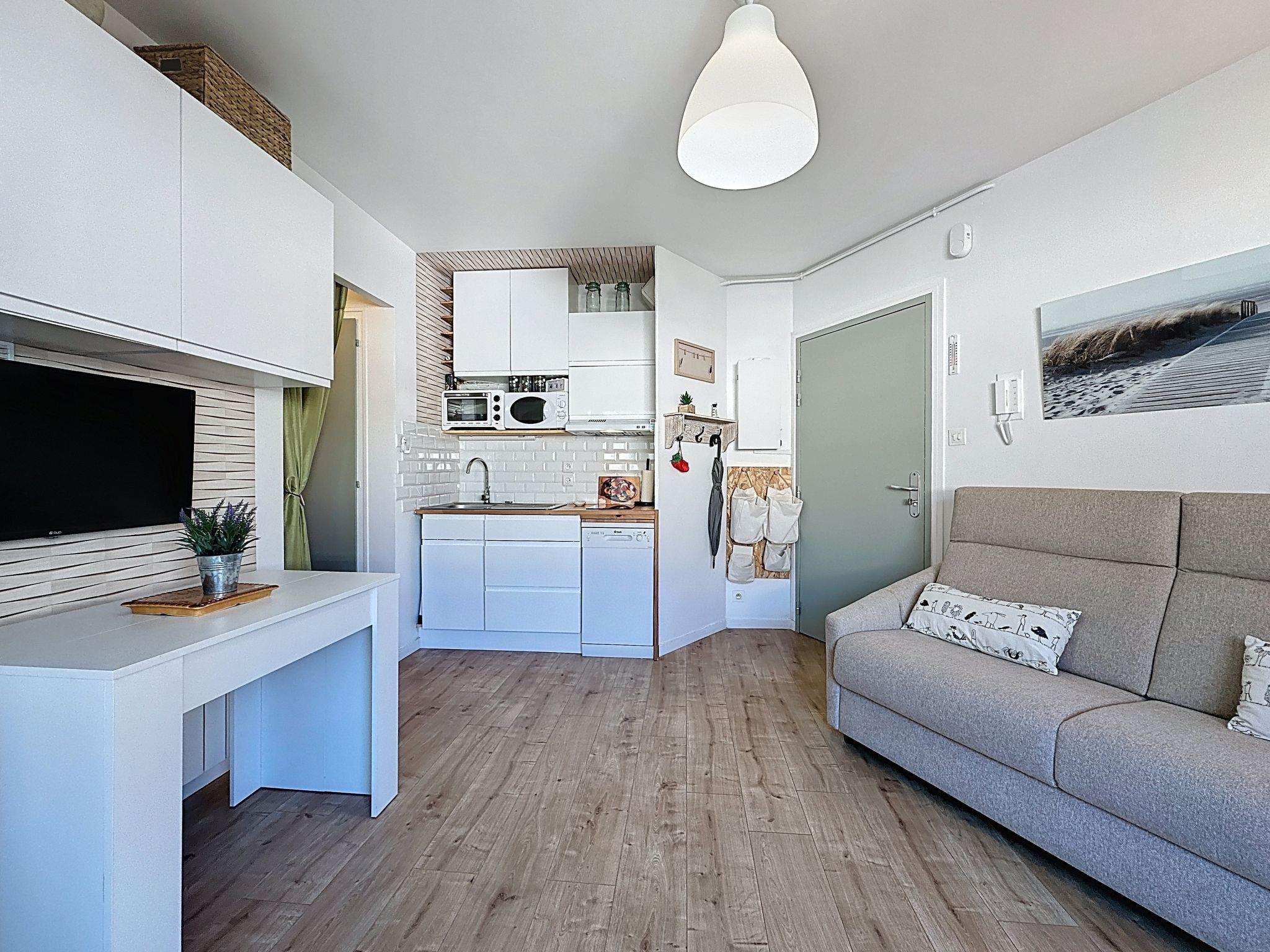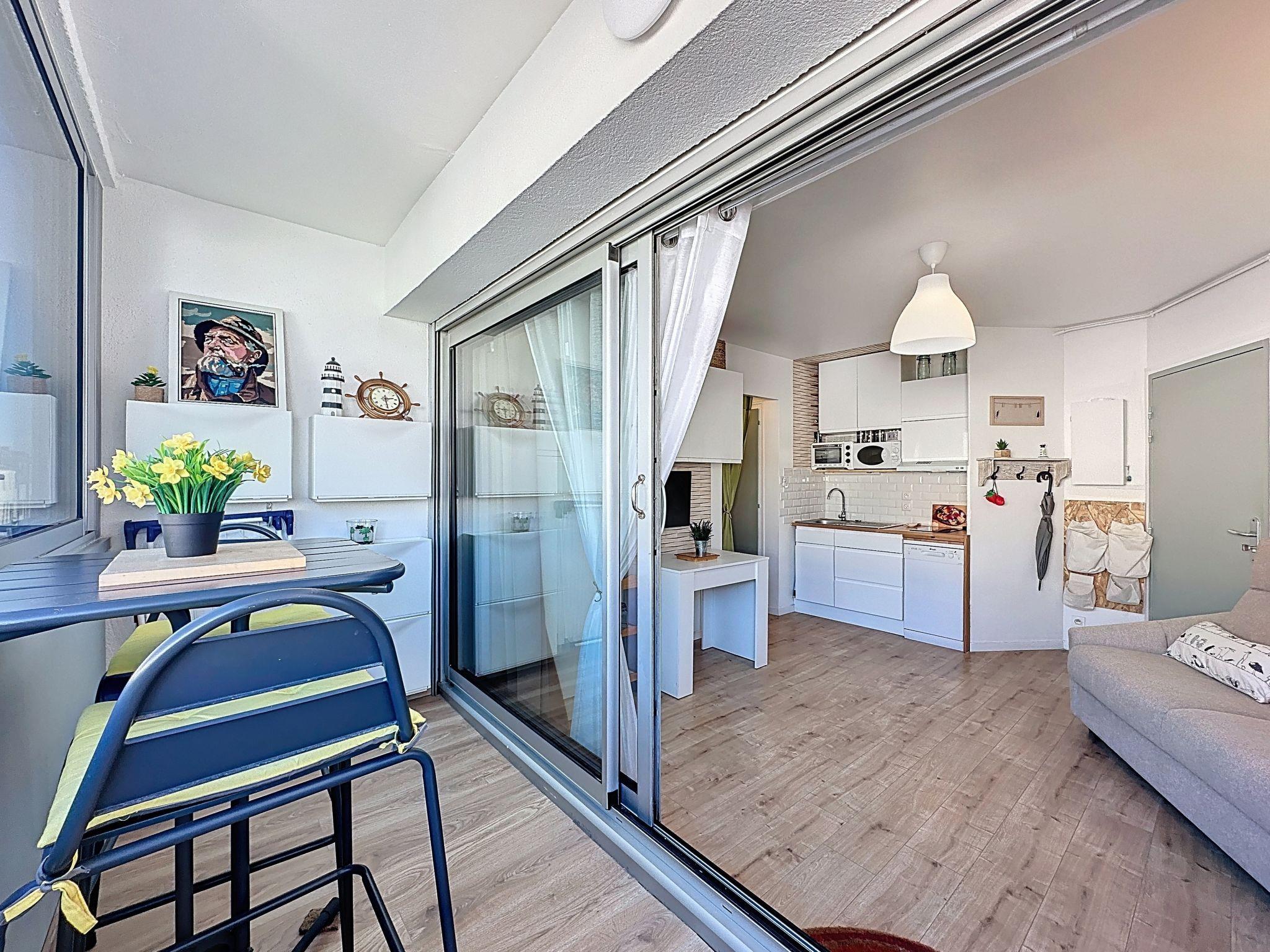 "Résidence de la Mer", 2-room apartment 43 m2 on 1st floor. Beautiful and tasteful furnishings: living/dining room with TV (flat screen). Exit to the loggia. 1 room with 1 french bed (1 x 160 cm, length 200 cm), TV (flat screen). Open kitchen (mini-oven, dishwasher, 2 induction hot plates, toaster, kettle, microwave, freezer, electric coffee machine, Capsules for coffee machine (Senseo) extra). Shower, sep. WC. Electric heating. Covered balcony. Facilities: washing machine, iron, baby cot for up to 2 year olds, hair dryer. Internet (WiFi, free). Parking space n 19 (roofed, fenced 1 car). Please note: non-smokers only. Smoke alarm. Offer by a private individual according to Art. 155, IV of CGI. 440120003954G