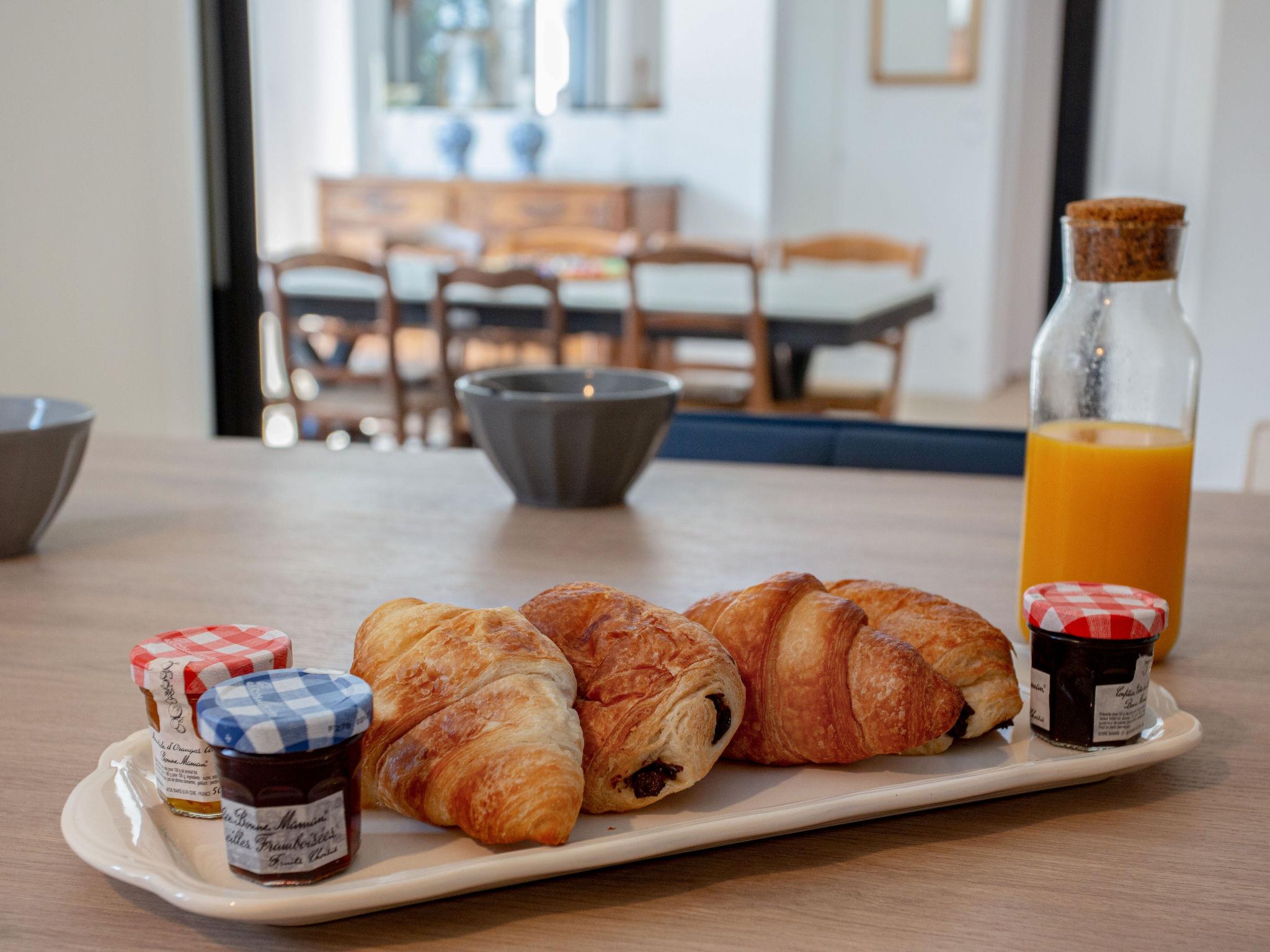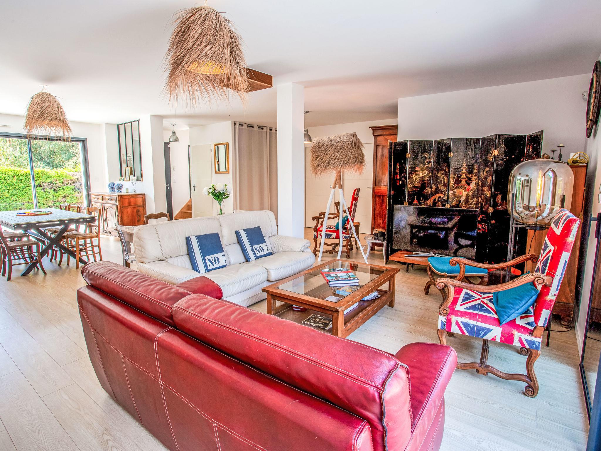 "Ker Rohan", 6-room villa 170 m2 on 2 levels, south-west facing position. Beautiful and modern furnishings: large living/dining room with TV (flat screen), CD-player and DVD. Exit to the terrace, to the swimming pool. 1 room with 1 french bed (1 x 160 cm, length 200 cm), shower. Exit to the terrace. Large kitchen (oven, dishwasher, 4 induction hot plates, toaster, kettle, microwave, freezer, electric coffee machine, Capsules for coffee machine (Nespresso) extra, cooking island). Sep. WC. Upper floor: 2 rooms, each room with 2 beds (90 cm, length 190 cm). 1 room with 1 bed (90 cm, length 190 cm), 1 french bed (1 x 130 cm, length 190 cm). 1 room with 1 french bed (1 x 160 cm, length 200 cm). Bath/shower, sep. WC, double hand-basin. Underfloor heating. Large terrace. Terrace furniture, barbecue, deck chairs (4). Facilities: washing machine, dryer, safe, iron, baby cot for up to 2 year olds, hair dryer. Internet (WiFi, free). Parking (fenced 2 cars), garage (1 car). Please note: suitable for families. Non-smoking house. Maximum 2 pets/ dogs allowed. Smoke alarm. Offer by a private individual according to Art. 155, IV of CGI. 44012000307VP