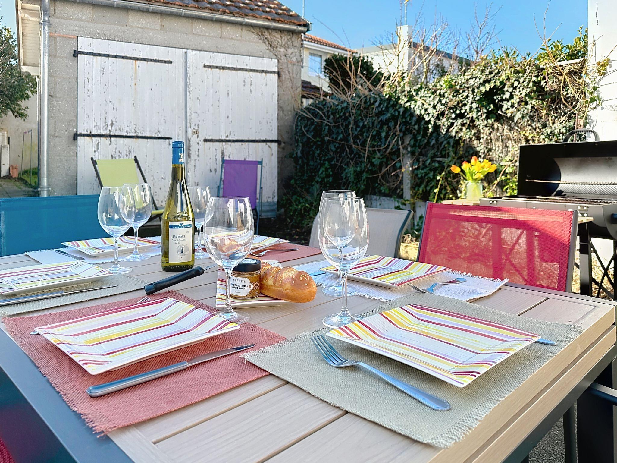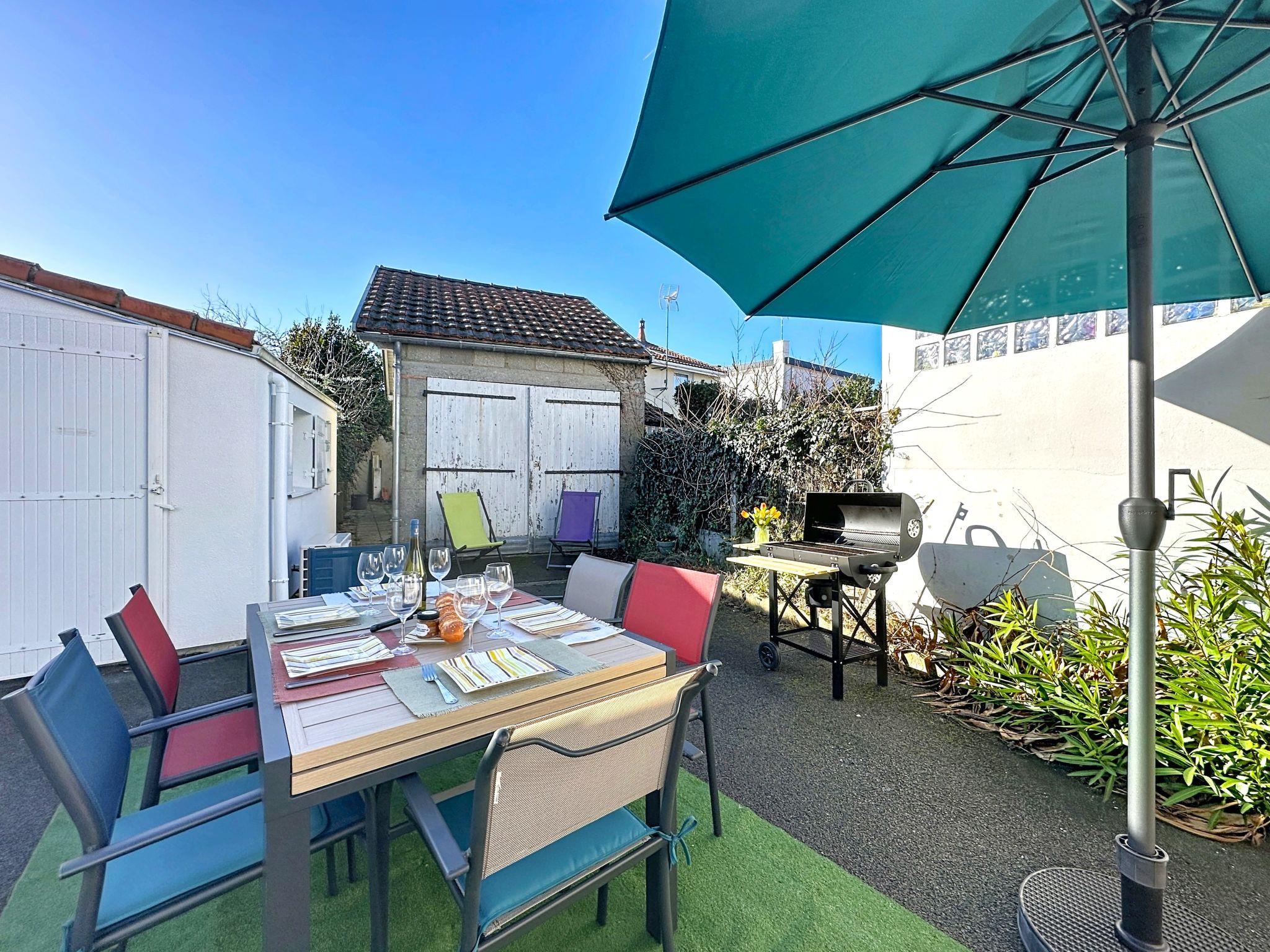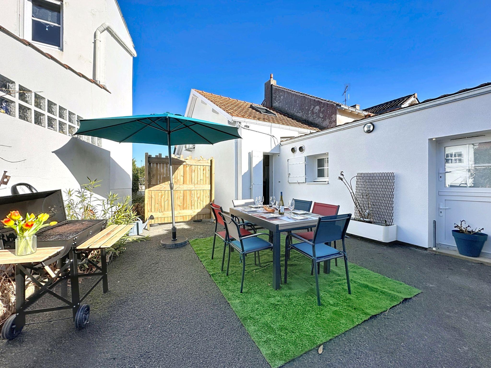 Terraced house "Sanoubott". In the centre of La Bernerie en Retz, in a quiet position, excellent location: right in the centre but still quiet, in the heart of the city, 300 m from the sea, 300 m from the beach, south facing position. Private: property (fenced), small garden (fenced), courtyard. Patio, terrace, garden furniture, barbecue, parking (for 2 cars). Shop, supermarket, restaurant, bakery 500 m, 6 minute walk to the centre, bus stop "Bourg (Navette Estivale)" 650 m, railway station "La Bernerie en Retz" 1 km, sandy beach "Plage des Carrés" 300 m, thermal baths "Alliance Pornic Thalasso & Spa". Golf course (18 hole) 10 km, tennis 650 m, minigolf 10 km. Nearby attractions: Marché de la Bernerie en Retz 450 m, Pornic 6 km, Port du Collet 7 km, Planète Sauvage 24 km, Les Machines de l'Ile de Nantes 44 km, Ile de Noirmoutier 52 km. Well-known lakes can easily be reached: Lac de Saint Viaud 23 km.